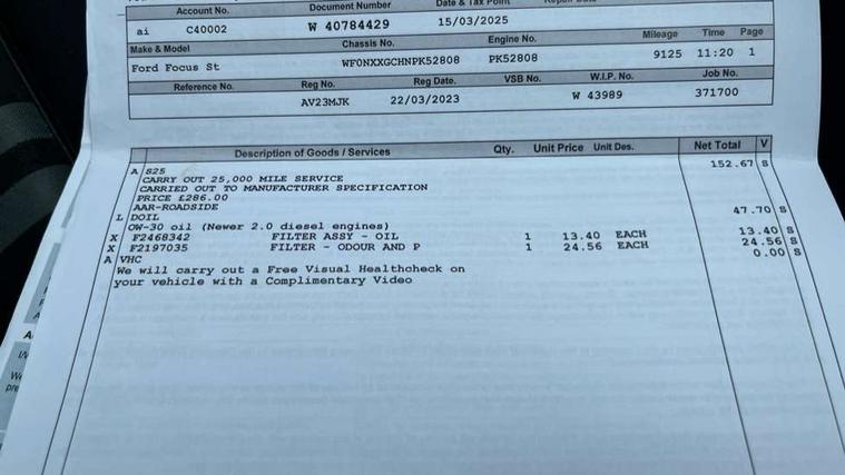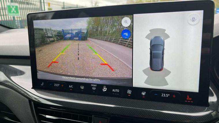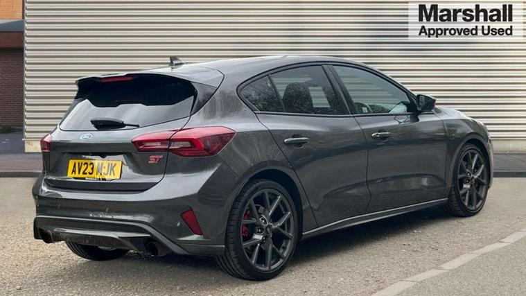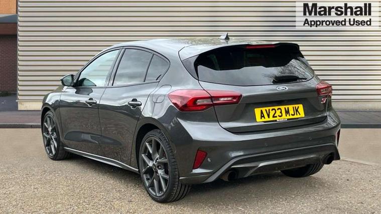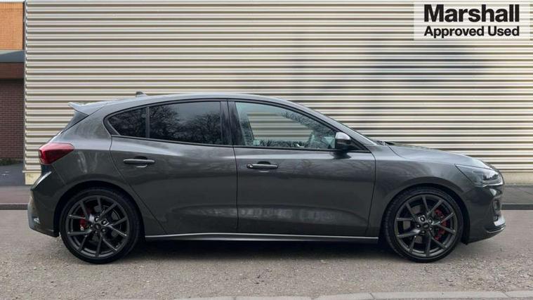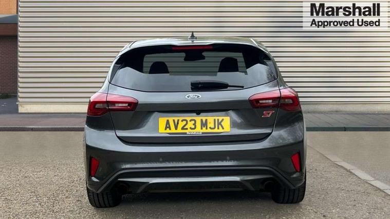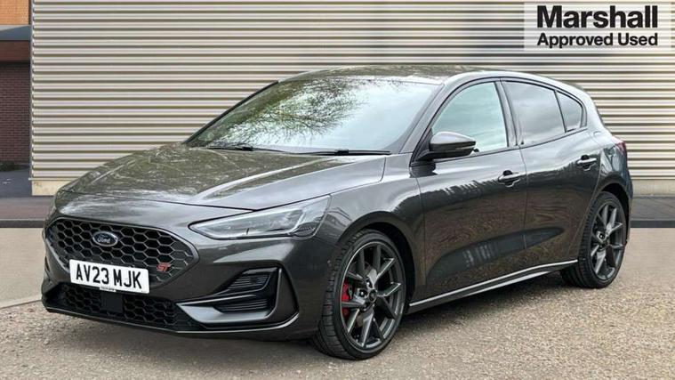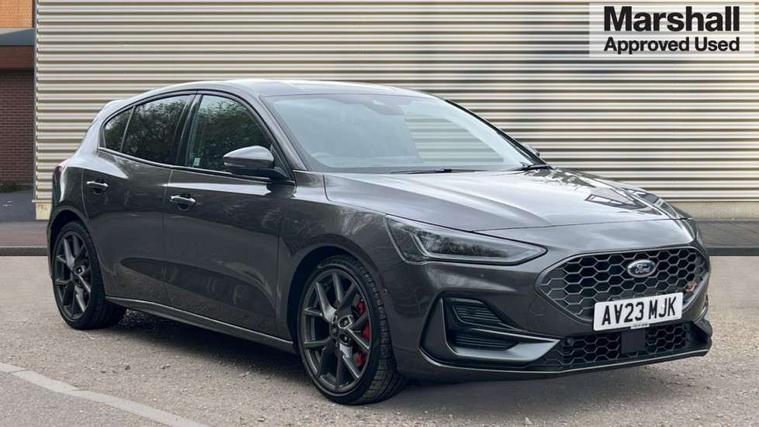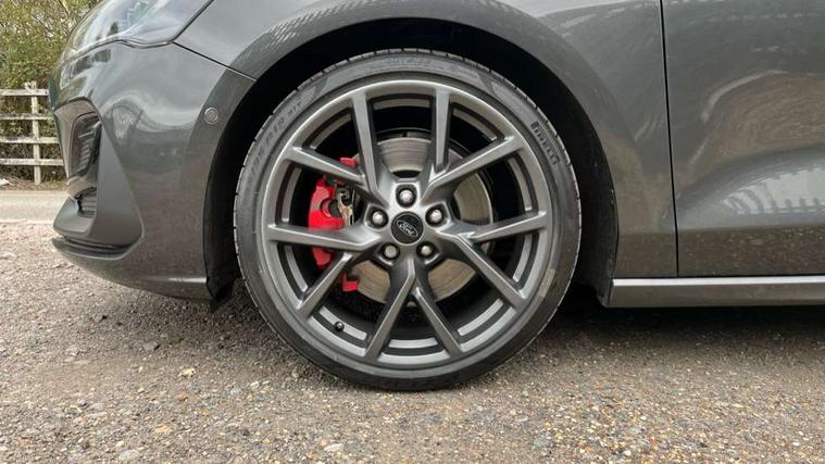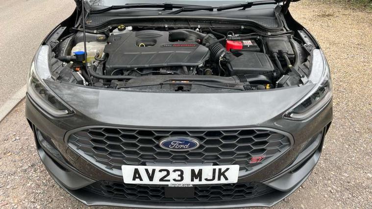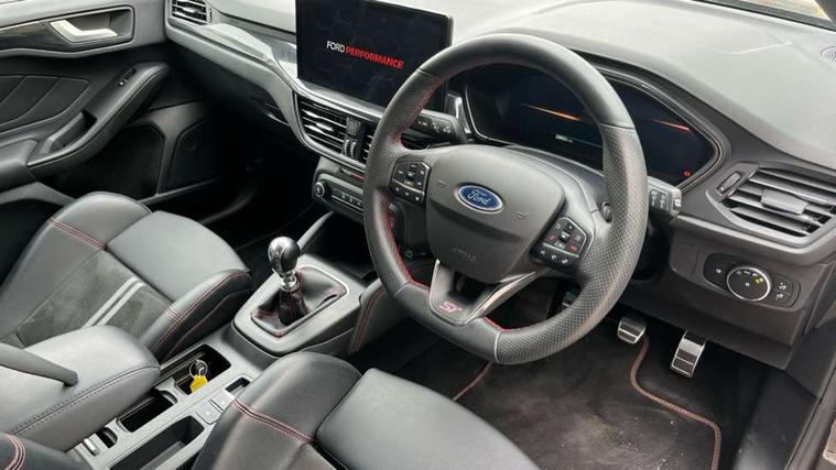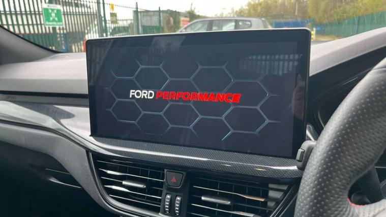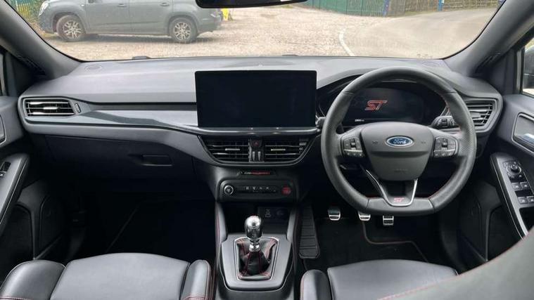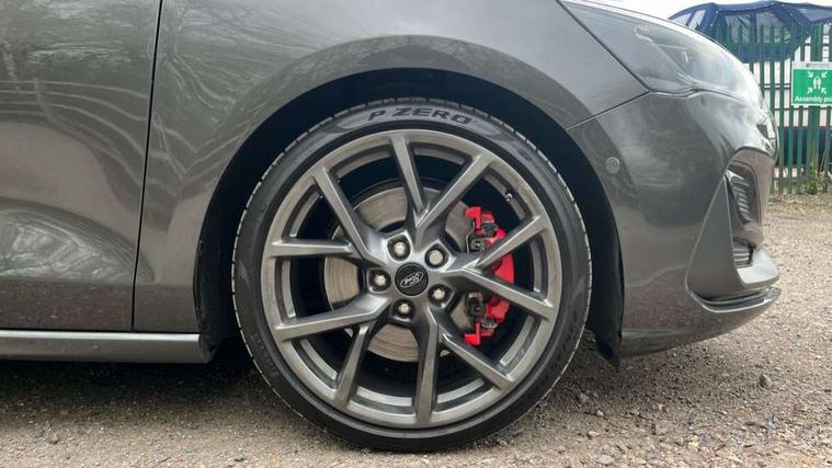 12.3" Digital instrument cluster, Bluetooth system, Digital clock, Easy fuel capless refuelling system, Eco mode, Ford SYNC4 Nav with 13.2'' touchscreen, DAB, Emergency Assistance, Apple Carplay & Android Auto, B&O Premium Audio with 10 speakers, FordPass Connect, Lane keeping system - lane keeping alert and lane keeping aid, PAS, Rev counter, Selectable drive mode, Service interval indicator, Trip computer, Wireless charging pad, Unique ST sport suspension with limited slip differential, 2 USB ports, Auto headlamps (on/off), Auto high beam assist, Body coloured door handles, Daytime running lights, Dynamic matrix LED headlamps including Glare free lighting, Electrically operated front and rear windows with one touch opening and closing, Electrically operated heated power fold door mirrors with puddle lamp with side indicators, Front variable intermittent wipers with electric wash, Heated rear window, LED rear lamps, LED third brake light, Privacy glass, Quickclear heated windscreen, Rain sensor, Rear side wing doors, Tailgate wash/wipe, Unique ST upper & lower grille with full bodystyling kit, 3 rear headrests, 3 seat bench in 2nd row, Dual zone electronic air temperature control, Height adjustable front headrests, Isofix child seat preparation, Load through ski hatch, Partial sensico upholstery with ford performance seat, Power 6-way driver seat adjust, with power lumbar adjust, Power 6-way passenger seat adjust, with power lumbar adjust, Reach + rake adjustable steering column, Single front passenger seat, Winter pack - Focus, 3x3 point rear seatbelts, ABS+Electronic Brake force Distribution, Auto hold function, Driver airbag, EDL traction control, Electronic parking brake, Electronic stability control, Front and rear seatbelt reminder, Front inertia reel height adjustable seatbelts with pre-tensioners, Front passenger airbag, Front side airbags, Passenger airbag deactivate switch, Post collision braking, Pre collision assist with autonomous emergency braking and pedestrian/cyclist detection, Red brake calipers, Remote/power child rear door locks, Side curtain airbags, Three rear inertia reel lap/diagonal seatbelts, Tyre pressure monitoring system, Keyless entry and keyless start, MyKey system, Remote central locking & engine immobiliser, Thatcham alarm with power door dead locks, 19" 5x2 spoke magnetite matte finish alloy wheels with mini spare wheel,