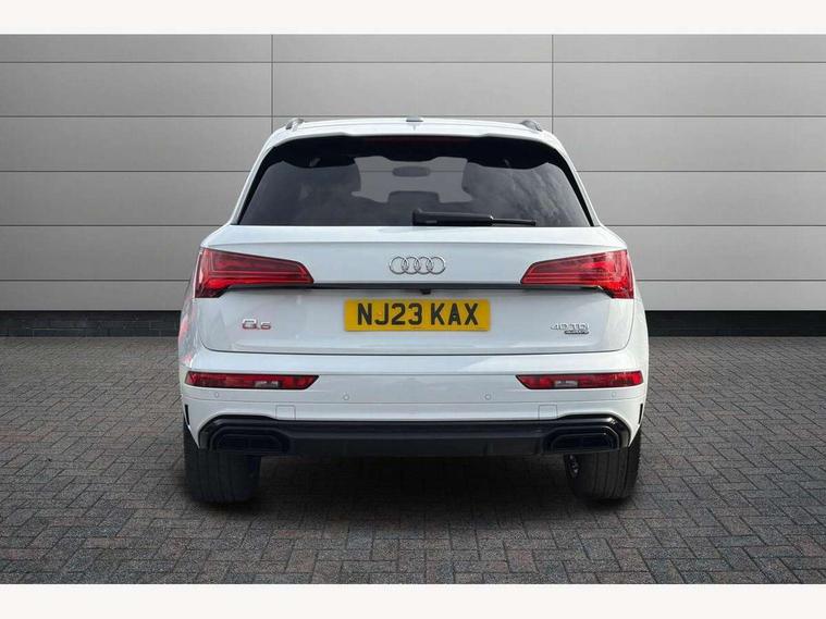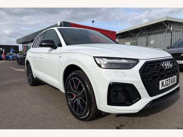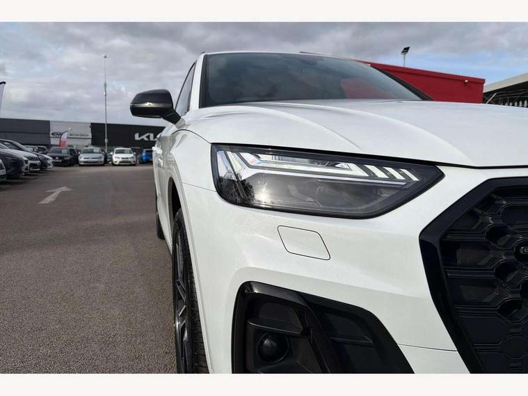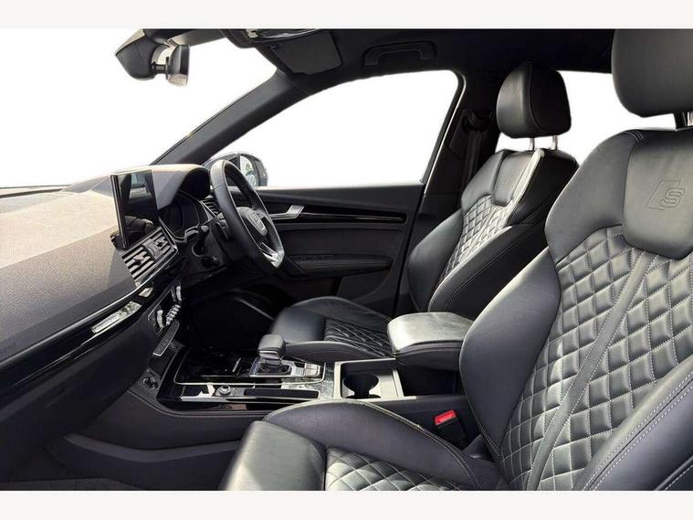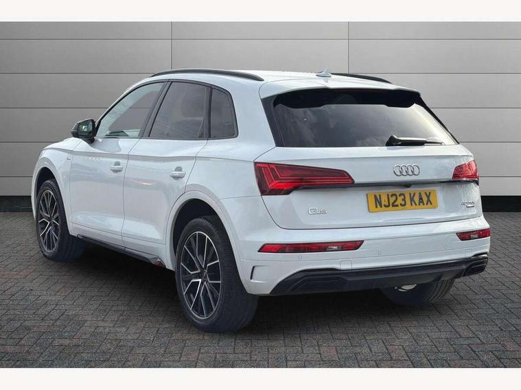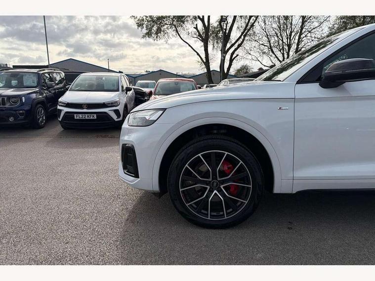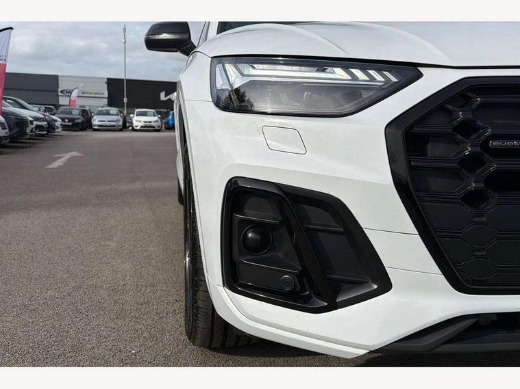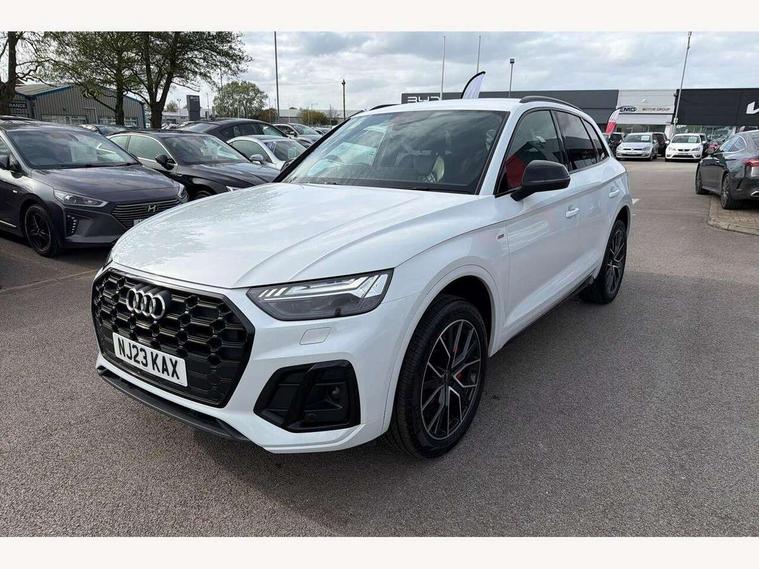 Acoustic front and rear parking sensor, Audi connect safety and service (e-call), Audi connect with Amazon Alexa Integration, Audi drive select, Audi virtual cockpit plus with 12.3" screen and three different layout designs, Audi wireless smartphone interface, Automatic start-stop system with coasting functionality and efficiency programme, Bluetooth interface, Electro - mechanical power assisted steering, MMI navigation plus with 10.1" touch screen, Power tailgate, Reversing camera, Service interval indicator, Voice control system with Audi hotword activation "Hey Audi", Diesel particulate filter, Quattro on demand, S line sports suspension, 8 loudspeakers, DAB Digital radio, Acoustic windscreen, Audi matrix LED headlights with dynamic front and rear indicators, Audi rings at front and rear in black, Audi rings decal on rear doors, Auto dimming door mirrors, Auto dimming frameless rear view mirror, Automatic headlight adjustment, Automatic headlights and windscreen wipers, Black roof rails, Body colour bumpers, Body colour underbody protection, Chrome plated exhaust trims, Daytime running lights, Door sills in Selenite silver, Electric adjustable/heated/folding door mirrors, Front air inlet surrounds in anthracite black, Front and rear electric windows, Headlight washers, High gloss black B pillar trims and triangular rear door trim, High level LED brake light, Rear chrome trim strip below lights, Rear privacy glass and rear side windows, Rear side wing doors, Rear wiper, Roof bars, S Line rear spoiler, 2 x USB charging port with aux input socket, 3 rear headrests, 4 way electric lumbar support for driver and front passenger, 40:20:40 split folding 3 rear bench seat in 2nd row with rear centre armrest, Black cloth headlining, Comfort front centre armrest, Contrast stitching on seats, steering wheel and gear lever gaiter, Deluxe 3 zone electronic climate control, Electrically adjustable front seats, Fine Nappa leather upholstery with diamond pattern contrast stitching + front sport seats with S embossed logo, Front/rear floor mats, Gear lever in black leather, Heated front seats, Height adjustable front head restraints, Height/reach adjustable steering column, Illuminated door sill trims with S logo, Luggage compartment cover, Rear seat bench plus-adjust for forwards/backwards position/backrest angle, cupholders in the armrest, load through hatch and remote backrest release, Removable luggage compartment floor, Single front passenger seat, Stainless steel pedals, Sunvisors with vanity mirrors, Black styling package - Q5 Edition 1, Extended interior upholstery pack - Q5, Extended LED Interior multi coloured Lighting Pack - Q5, 3 point seatbelts on all seats, 6 airbags - Driver, front passenger, curtain and side airbags, Electrically operated child locks on rear doors, Electromechanical parking brake, Electronic stabilisation control including ABS, ASR and EDL, First aid kit with warning triangle and vests, Front and rear brake calipers painted in red, Front passenger airbag deactivation, Hill descent control, Hill hold assist, ISOFIX child seat mounting for front passenger seat and ISOFIX child seat mounting with Top Tether for outer rear seats, Multi collision brake assist, Pop-up bonnet for pedestrian protection, Pre sense city, Seat belt force limiter, Seatbelt monitoring, Tyre pressure warning, Anti theft alarm, Anti-theft wheel bolts, Keyless Go access/ignition system, Remote central locking, Air vents inserts and centre console in gloss black, Piano black finish inlay,