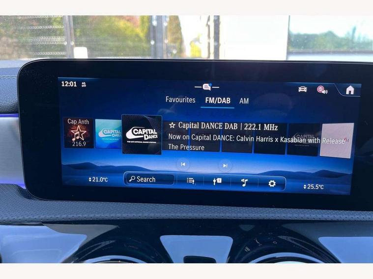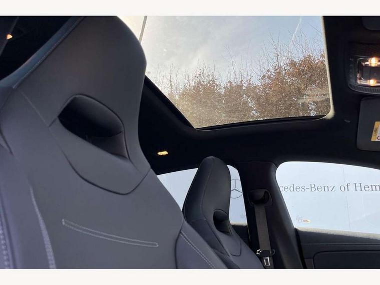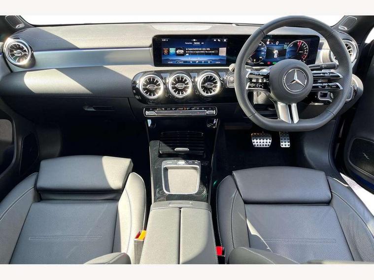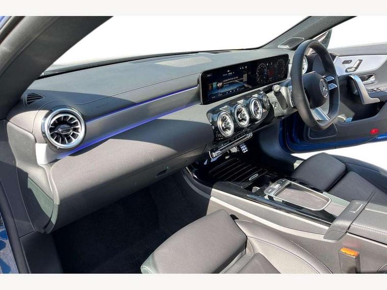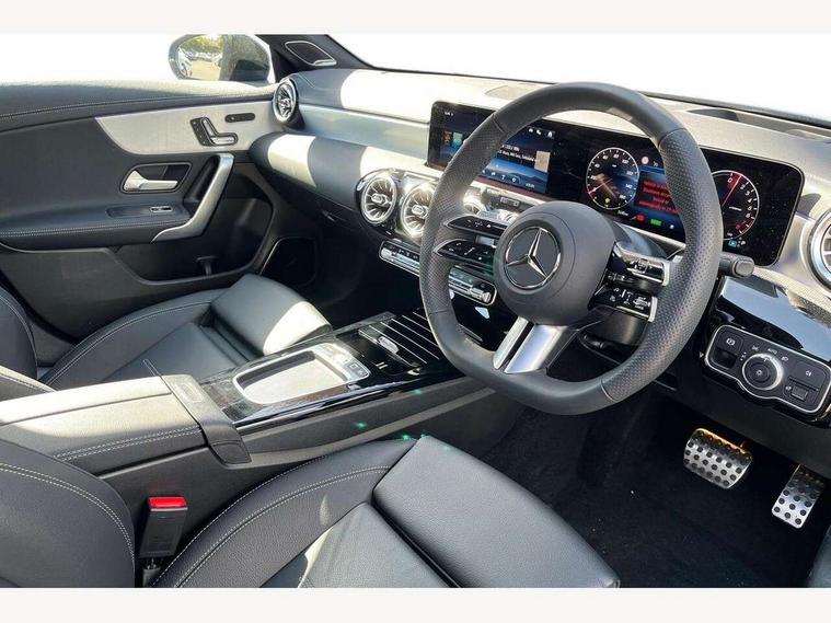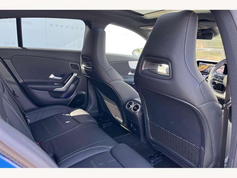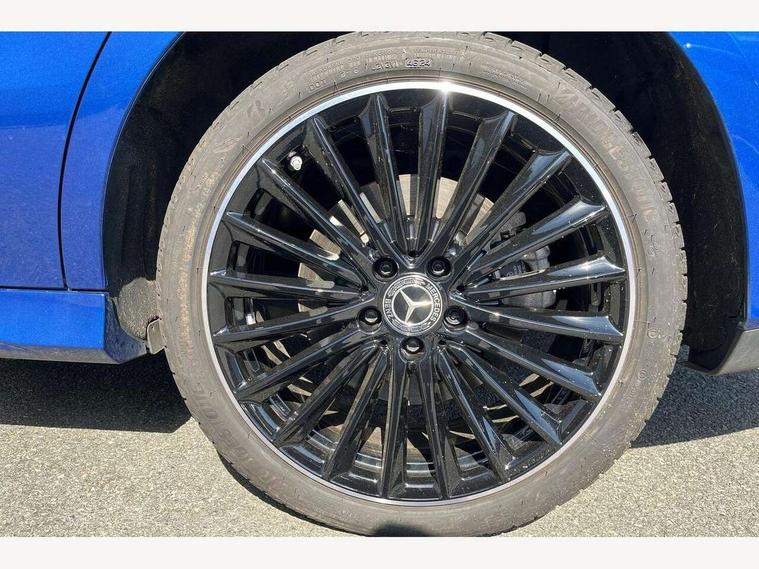 10.25 inch Instrument display with digital cockpit, 10.25 inch touchscreen central media display, Acoustic ambient protection, Active lane keeping assist, Attention assist - Monitors steering behaviour and long journey fatigue, Bluetooth connection, Car wash mode, Cruise control with limiter, Direct steer system, DYNAMIC SELECT with a choice of driving modes (ECO, Comfort, Sport and Individual), ECO start/stop function, Fluid level warning indicator for fuel, oil, coolant and washer fluid, Hard-disk navigation, Head up Display, Hey Mercedes Voice activation, Lamp failure indicator, Mercedes me connect including emergency call system, accident recovery, breakdown and maintenance management, Mercedes me remote and charging services plus, Outside temperature gauge, Owners manual in English, Pre-installation of private car share, Radio aerial integrated into front and rear windshields, Service indicator (ASSYST), Smartphone integration with Apple CarPlay and Android auto, Tailgate, Traffic sign assist, Trip computer in multifunction display with current consumption indicator, Wireless charging in the front centre console, Charging system - AC charging system rated at 11kW, Charging system - DC charging system rated at 22kW, Comfort suspension, Mode 3 charging cable for wallbox and public charging stations with 5m upto 11kW, Rear axle torsion beam, Burmester lettering on the speakers, Burmester surround sound system (710W) with dolby atmos, speakers - 1 central, 1 woofer, 1 tweeter, 1 subwoofer with 60W, 2 in C pillar, DAB digital radio tuner, MBUX multimedia system, Pre installation for Mercedes Benz Link, Adaptive brake lights, AMG body styling with AMG front apron and rear apron and visible exhaust tailpipe in chrome trim elements, Body colour door handles, Electric panoramic sunroof with automatic tilt and convenience closing fuinctions, rain sensor auto closing and electronic roller sunblind, Electric windows, Electrically adjustable and heated door mirrors with integrated LED indicators, Exhaust system with 2 Visible tailpipe trim elements and rear apron with trim in chrome, Hand free access, Headlamp assist automatic headlamp activation, Heated glass rear windscreen + timer control, High level LED third brake light, Integrated LED daytime running lights, Interior mirror with black reading lamps and frameless, LED tail lamp, Multibeam LED headlamps with adaptive highbeam assist plus, Privacy glass with dark tinting on rear side windows and rear window, Radiator grille with Mercedes-Benz pattern in chrome and central Mercedes star, single louvre in high-gloss black with chrome inserts, Rain sensing windscreen wipers with two sensitivity settings, Rear fog lamp, Rear side wing doors, Rear wiper, Variable front intermittent wipers, 3 seat bench in 2nd row, 3 twin spoke flattened multifunction steering wheel in nappa leather - horizontal twin spoke in high gloss black, vertical twin spoke in silver chrome, 40:20:40 split folding rear seat backrests, Air conditioning - Two zone thermotronic luxury automatic climate control with display, Air vents with surround in silver chrome, Artico man-made leather/Microcut microfibre upholstery, Automatic child seat recognition sensor, Black roof lining, Brushed stainless steel sports pedals with rubber studs, Charging socket, Electrically adjustable front memory seats including 4 way lumbar support, Floor mats with stitched AMG lettering, Fluorescent jacket, Front centre armrest with stowage, Galvanished gear shift paddles in silver chrome, Interior lighting - 64 colour Ambient lighting, Luggage net on driver/front passenger seat backrest, Manually height and reach adjustable steering column, Pre-entry climate control, Rear armrest with two integral cup holders for drinks, Rear head restraints, Single front passenger seat, Sport seats with fixed head restraints, Stowage compartment in centre console with retractable cover, Sunvisors with illuminated vanity mirrors, Twin front cupholders, Two outer rear seat isofix and top tether child seat fixing points, Drive parking assist pack with 360 degree camera - CLA, Keyless go comfort pack - CLA with easy pack tailgate, Light and sight pack - CLA, Mirror pack - CLA, Night package - CLA, Seat comfort pack - CLA, USB package plus - CLA, Winter pack - CLA, Active bonnet pedestrain safety measure which detects an impact and raises bonnet by 65mm, Adaptive brake assist with hold function and hill start assist, Anti lock braking system (ABS) with brake assist, Black seat belts, Bonnet with power domes, Brake calipers with Mercedes-Benz lettering, Brake pad wear warning indicator, Childproof locks manually operated for rear doors and electrically operated for rear power windows, Crash responsive emergency lighting, Driver and front passenger head and sidebags, Driver and front passenger windowbags, Drivers knee airbag, Dual stage driver and front passenger airbags, Electric parking brake, Electronic stability programme with acceleration skid control, ESP curve dynamic assist, Exit warning, Front and rear seatbelt reminder, Front passenger seat occupancy sensor, Perforated front brake discs, Radar-based recuperation, Sports braking system, Three point rear seat belts, Tyre pressure monitoring system, Warning triangle and first aid kit, Alarm system with immobiliser and interior protection -Thatcham category 1, Guard 360 deg vehicle protection - tow away protection with visual, acoustic warning, interior monitoring, preinstallation for parking damage, Remote central locking and crash sensor with emergency opening function, Light aluminium with longitudinal grain interior trim, 19" AMG multi-spoke black painted light alloy wheels with high sheen rim flange, Summer tyres, Tirefit tyre sealant kit,