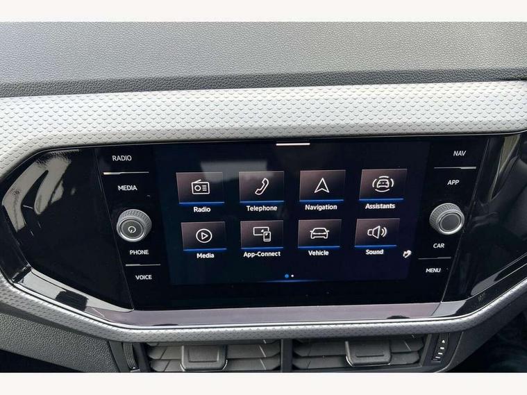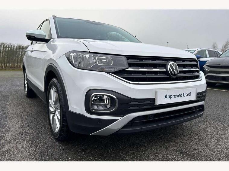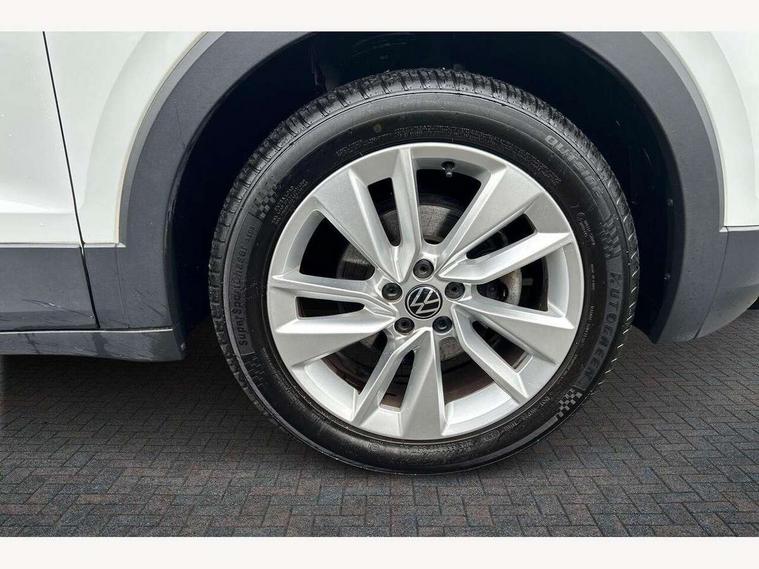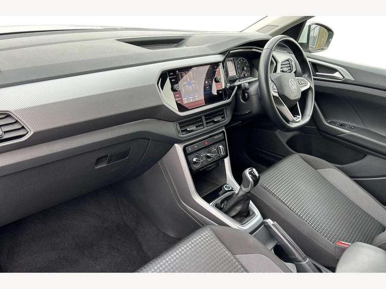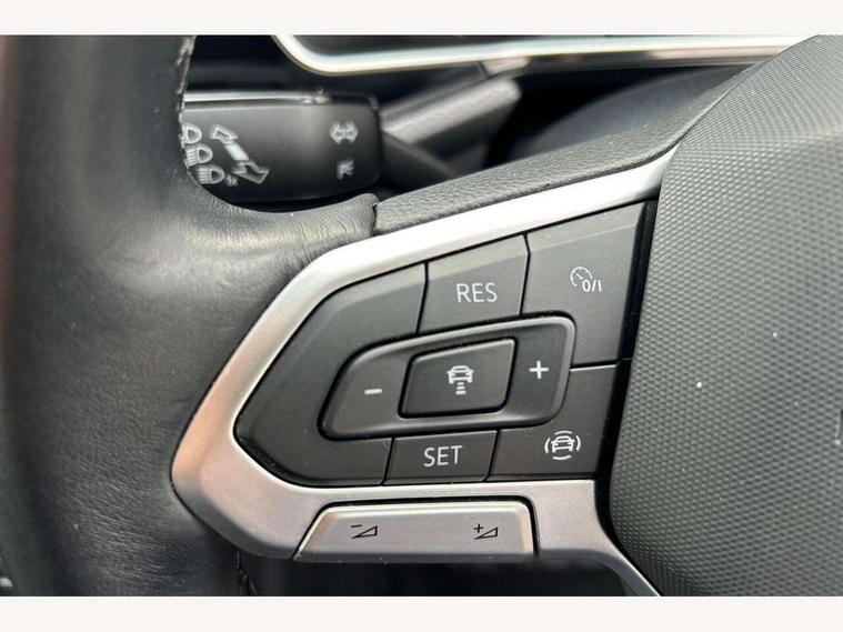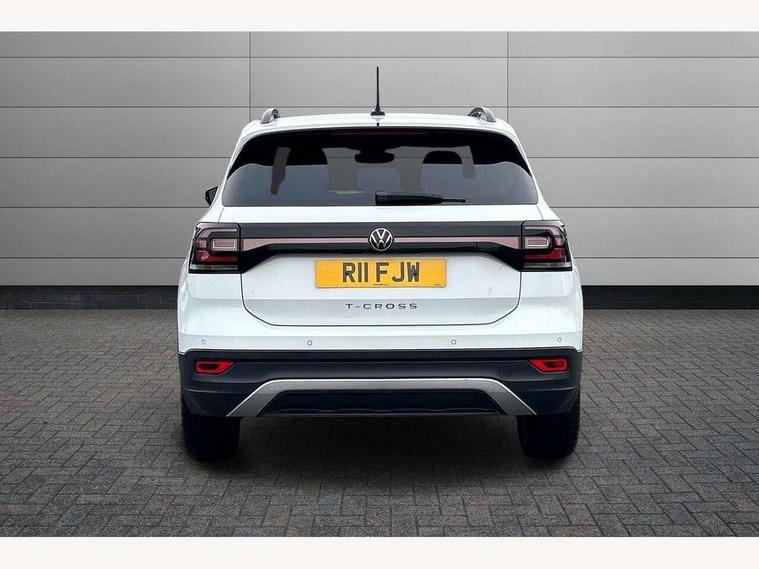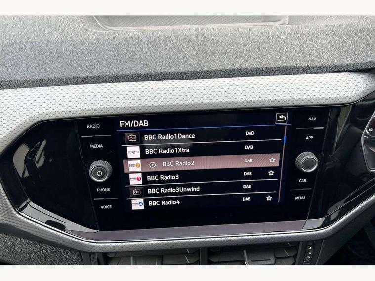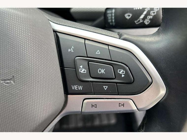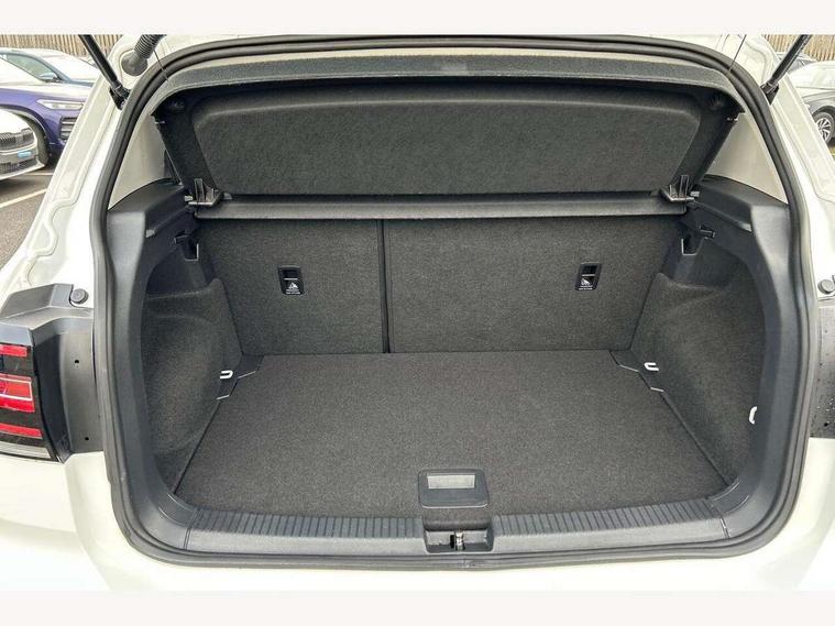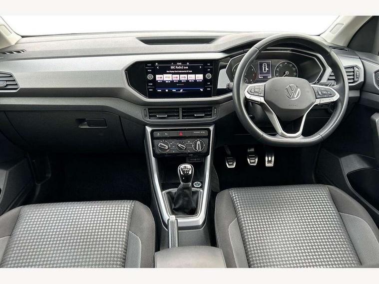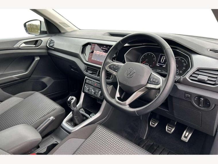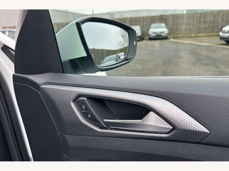 'Lights On' Reminder warning buzzer, Adaptive cruise control including front assist, forward collision warning, autonomous emergency braking, speed limiter, Blind spot monitoring, Bluetooth telephone and audio connection for compatible devices, Car information display, Driver alert system, eCall emergency call system, Lane assist, Low washer fluid warning light, Multifunction computer with visual gear change recommendation for fuel consumption, Operating permit alteration, Power assisted speed sensitive steering, Speedo, rev counter, electronic odometer, trip, service interval display, exterior temperature and fuel gauge, Stop/start system, Warning sound and light for doors and tailgate open, Warning sound and light for front seatbelts unfastened, We Connect Go Dongle, Wireless Car net app connect with Apple CarPlay, combined functionality of Apple CarPlay/Android Auto and MirrorLink, Battery regeneration during braking, Misfuel prevention device, 2x USB connection with USB charging sockets and in rear centre console, DAB Digital radio receiver, Diversity antenna for FM reception, Multi device interface (MDI) with USB connection, Music playback - MP3, WMA and AAC files, Premium USB cable for Apple or Android smartphone compatibility, Simultaneous pairing of 2 compatible mobile devices, Title and cover art display, 3D active badge on B-pillar, Active door sills, Active sill panel trims, Automatic hazard lights activation under emergency braking, Black roof rails, Body colour door handles, Body coloured bumpers, Dusk sensor + automatic driving lights, Electrically foldable, adjustable and heated door mirrors with reverse activated kerb view adjustment on passenger's side, Front and rear electric windows, Front fog lights with static cornering function, Galvanised body, Heated rear window, High level 3rd brake light, Lower door sills and door pillars in black, Radiator grille with high gloss surface and chrome strip, Rear fog light on one side, reversing light on both sides, Rear lights incorporating LED technology, Rear side wing doors, Rear tinted glass 65% approx light absorbing from B pillar backwards, Rear window aerial, Rear windscreen washer and wiper with interval delay, Reflectors in all doors, Tailgate with integrated roof spoiler, Windscreen wipers/ intermittent wipe + 4 position delay, 12V Accessory socket in centre console, 3 rear head restraints and 3 rear three point seat belts with ECE label, 3 seat bench in 2nd row, 60/40 split folding rear seat backrest, Ambient lighting and sourround lighting, Brushed stainless steel pedals, Drawer under drivers seat, Driver and front passenger sunvisor with vanity mirror, Driver's sunvisor with ticket holder, Dust and pollen filter, Front + rear carpet mats, Front and rear reading lights X 2, Front centre armrest with storage compartment, Front seat back storage pockets, Front seats with adj lumbar support, Glovebox, Heating and fresh air system with 4 stage blower, Height/reach adjust steering wheel, Instrument lighting white adjustable panel illumination, Interior light with delay, Isofix child seat preparation for 2 rear child seats, Luggage compartment cover, Luggage compartment lighting, Moveable and foldable Rear bench seat, Single front passenger seat, Storage compartment in drivers and front passengers door, Three spoke multi-function leather trimmed steering wheel and gearknob, Trapeze cloth upholstery, Variable boot floor, Winter pack - T-cross, Anti-lock Braking System (ABS) with Hydraulic Brake Assist (HBA), Automatic post collision braking system, Driver and front passenger safety-optimised head restraints, Drivers and Front Passengers airbags with front passengers airbag deactivation switch, ESC with EDL, ASR, EDTC and trailer stabilisation function, Extended and proactive pedestrian protection, Front and rear curtain airbags, Front seat side impact airbags, Height adjustable 3 point automatic front seatbelts with pretensioners, Hill start assist, Pre crash preventive occupant protection, Rear door child safety locks, Rigid safety cell with front and rear crumple zones, Single torn horn, Tyre pressure loss indicator, Volkswagen roadside assistance, Alarm with interior protection and deactivation via infotainment system, Child security locks in rear doors, Electronic engine immobiliser, Remote tailgate unlocking using key fob, Decorative strips in doors in matt silver/ center console, 17" Clayton alloy wheels + anti theft wheel bolts, Breakdown kit,