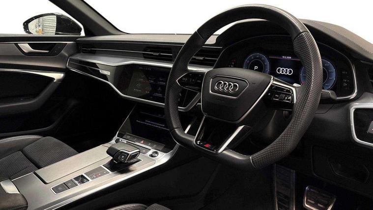 7" high resolution colour driver information display system, Audi connect safety and service (e-call), Audi connect with Amazon Alexa Integration, Audi drive select, Audi parking system plus - acoustic and visual park assist system for front and rear, Automatic start/stop system with coasting functionality, Bluetooth interface, Electric boot lid release, Lane departure warning system, Progressive steering, Rear view camera, Service interval indicator, Smartphone interface includes wireless Apple carplay/Android Auto, Voice control system, Sports suspension, Audi front music interface, Audi sound system, Auxiliary input socket, DAB Digital radio, USB connection, All weather LED headlights, Body coloured door mirrors, Electric front/rear windows, Frameless auto dimming interior rear view mirror, Front intermittent wipers, Headlight washers, Heat insulating darkened glass in side and rear windows, Heat insulating glass in windshield, LED rear lights, LED signature front daytime running light, LED third brake light, Matt black side air intake grille with inlay in matt aluminium, Privacy glass, Radiator grille in titanium black matt, single frame in chrome and horizontal struts in matt aluminium silver, Rain and light sensors, Rear boot, Rear side wing doors, S line air inlet design with inlay in matt aluminium, S Line badge on front fender, S Line front and rear bumpers, S line rear diffuser and grille in matt black with matt aluminium tailpipes, S Line side skirts, 2 zone deluxe electronic climate control, 4 way electric lumbar support for driver and front passenger, 40/20/40 split folding 3 rear seat bench in 3 parts with rear centre armrest, Black cloth headlining, Black steering wheel insert, Electrically adjustable front seats with driver memory, Front centre armrest, Front head restraints, Heated front seats, Height/reach adjust steering wheel, Illuminated door sill trims with S logo, Illuminated sun visors with vanity mirrors, ISOFIX child seat mounting and Top Tether with front passenger airbag deactivation, Leather gear knob, Rear headrests, S line front and rear black carpet floor mats with contrast stitching, Single front passenger seat, Stainless steel pedals and foot rest, LED Interior Ambient Lighting Pack - A6, Non smoking pack - A6, Technology pack - A6, 3 point seatbelts on all seats, Airbags - Front side, front and rear including head, Audi pre-sense front, EBD - Electronic brakeforce distribution, Electromechanical parking brake, Electronic Stability Control (ESC) including ABS, ASR and EDL, Extended pedestrian protection measures, Manual child proof rear door locks, Seatbelt monitoring, Tyre pressure warning light, Warning triangle and first aid kit, Anti theft alarm with tow away protection, Anti-theft wheel bolts and wheel loosening detection, Immobiliser, Keyless Go, Remote central locking, Black seatbelts, Matt brushed aluminium dark inlays,