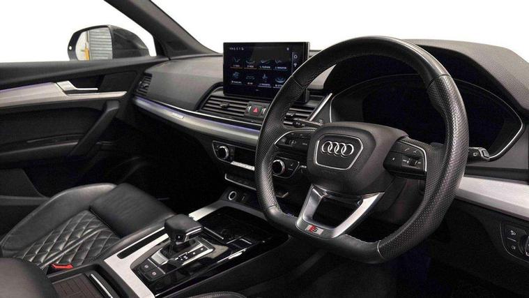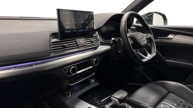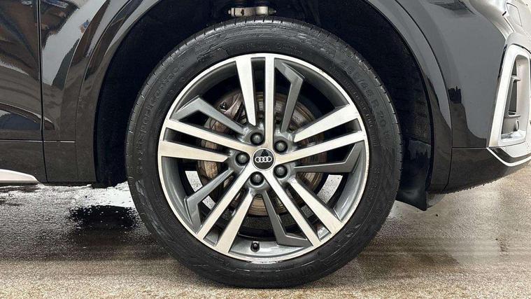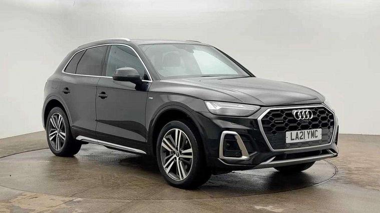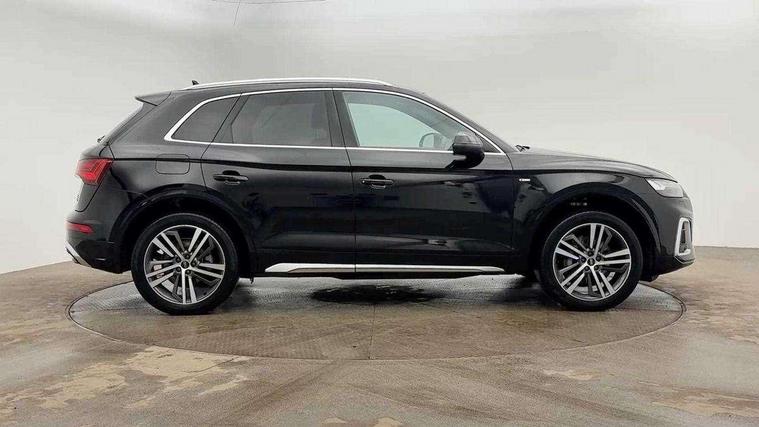 Audi connect safety and service (e-call), Audi connect with Amazon Alexa Integration, Audi drive select, Audi virtual cockpit plus with 12.3" screen and three different layout designs, Audi wireless smartphone interface, Automatic start-stop system with coasting functionality and efficiency programme, Bluetooth interface, Electro - mechanical power assisted steering, MMI navigation plus with 10.1" touch screen, Power tailgate, Reversing camera, Service interval indicator, Voice control system with Audi hotword activation "Hey Audi", 3 pin 10 amp domestic charging cable, Dynamic suspension, Quattro on demand, Type 2 mode 3 22kW 32 amp charging cable, Type 2 socket for AC charging, 2 x USB charging port with aux input socket, DAB Digital radio, Acoustic windscreen, Aluminium roof rails, Audi matrix LED headlights with dynamic front and rear indicators, Auto dimming rear view mirror, Automatic headlights and windscreen wipers, Body colour bumpers, Body colour door mirrors, Body colour rear diffuser with matt aluminium silver surrounds, Body colour underbody protection, Chrome plated exhaust trims, Door sills in Selenite silver, Electric adjustable/heated/folding door mirrors, Front air inlet surrounds in aluminium, Front and rear electric windows, Front radiator grille in honeycomb design, Headlight washers, Lower bumpers painted in contrast Manhattan grey, Rear chrome trim strip below lights, Rear privacy glass and rear side windows, Rear spoiler, Rear wiper, Roof bars, S Line badges on the front wings, S Line front and rear bumpers, S Line side skirts, 3 rear headrests, 40:20:40 split folding rear seat with rear centre armrest, Black cloth headlining, Comfort front centre armrest, Contrast stitching on seats, steering wheel and gear lever gaiter, Deluxe 3 zone electronic climate control, Front/rear floor mats, Gear lever in black leather, Heated front seats, Height adjustable front head restraints, Height/reach adjustable steering column, Illuminated door sill trims with S logo, ISOFIX child seat mounting and top tether, Manual seat adjustment with 4-way electric lumbar support, Rear seat bench plus, Sunvisors with vanity mirrors, Trunk roller cover, High gloss pack - Q5, LED interior light pack - Q5, 3 point seatbelts on all seats, 6 airbags - Driver, front passenger, curtain and side airbags, Electrically operated child locks on rear doors, Electromechanical parking brake, Electronic stabilisation control including ABS, ASR and EDL, Front passenger airbag deactivation, Hill descent control, Hill hold assist, Multi collision brake assist, Pop-up bonnet for pedestrian protection, Pre sense city, Seat belt force limiter, Seatbelt monitoring, Tyre pressure warning, Warning triangle and first aid kit, Anti theft alarm, Anti-theft wheel bolts, Keyless Go access/ignition system, Matt brushed aluminium inlays, Tool kit, Tyre repair kit,