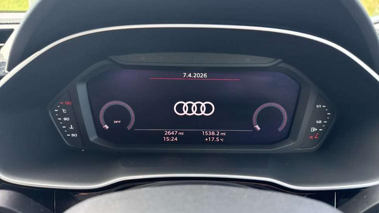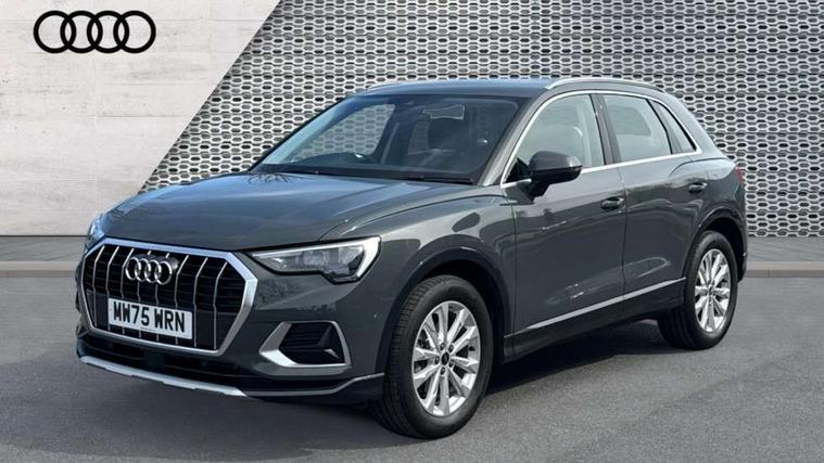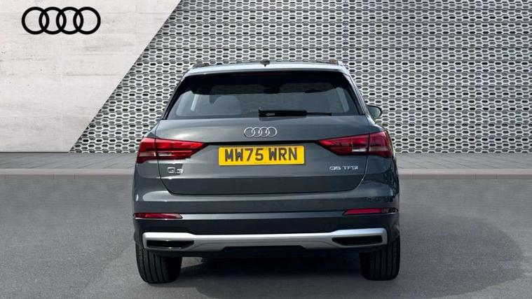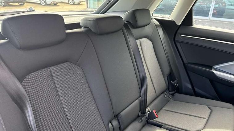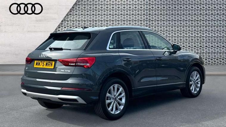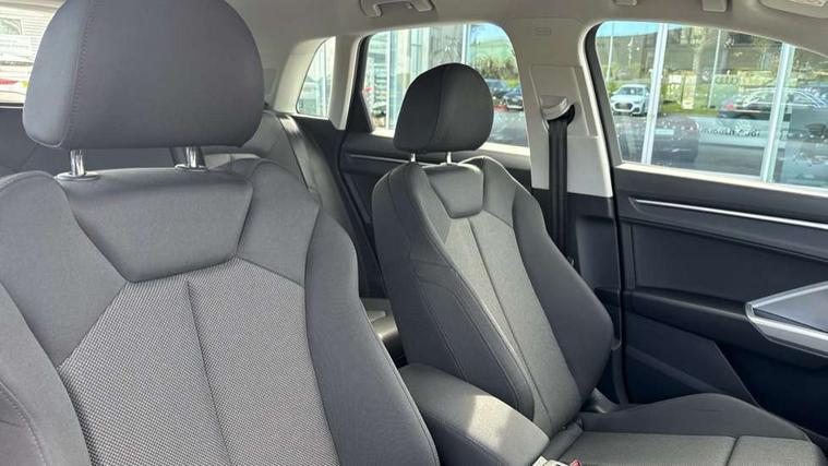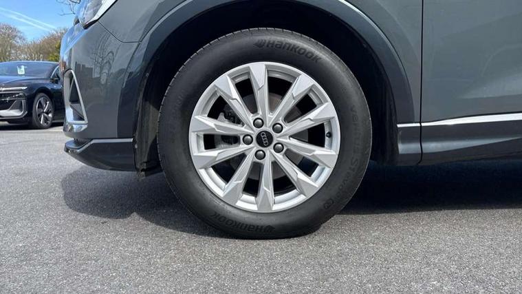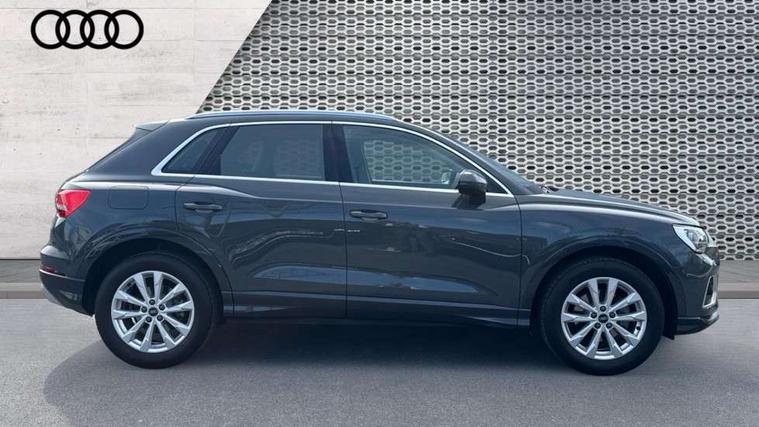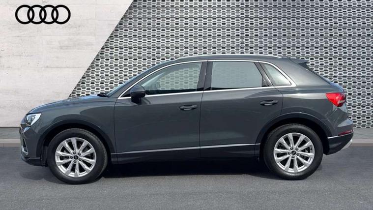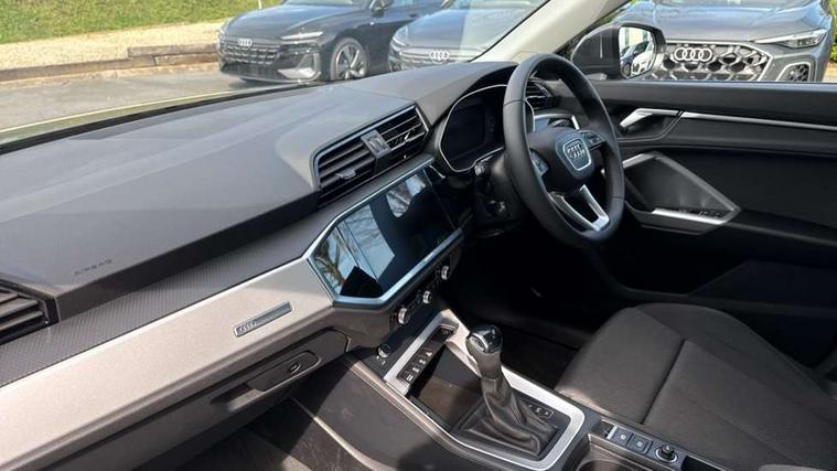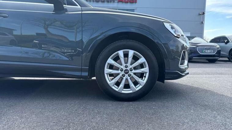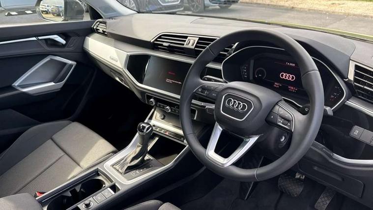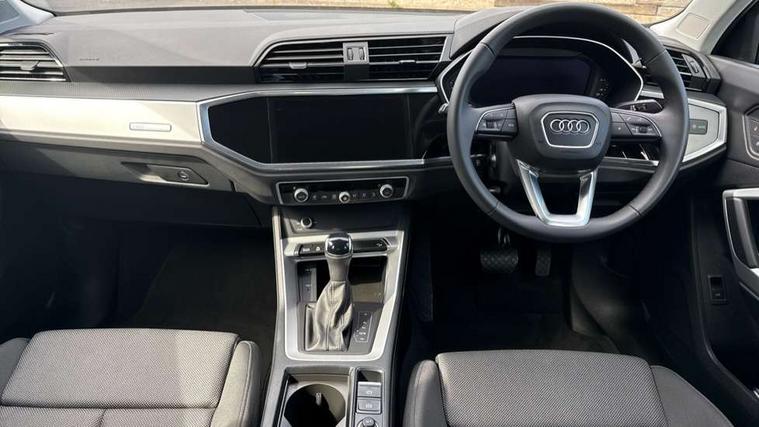 Amazon alexa Integration, Audi connect safety and service, Audi drive select, Audi lane departure warning, Audi Virtual Cockpit - 10.25" display, Bluetooth interface, Camera based traffic sign recognition, Distraction and Fatigue warning, Legal emergency call, MMI Navigation Plus with high resolution 10.1 inch touchscreen colour display, Power operated tailgate, Progressive steering, Service interval indicator, Smartphone interface includes wireless Apple carplay/Android Auto, Start stop system with recuperation, Voice control system with natural language interaction, Standard suspension, 2 USB-C ports with charge and data functions, 6 passive loudspeakers, DAB digital radio module, Acoustic windscreen, Aluminium roof rails, Aluminium window trim, Anthracite black radiator grille, Auto dimming door mirrors, Auto dimming frameless rear view mirror, Electrically folding, adjustable and heated door mirrors with integrated LED side indicators and kerb view function for passenger side, Front and rear bumpers, wheel arch trims and side sill trims in contrasting Manhattan grey paint finish, Front and rear electric windows, Front fog lights, Front side air inlets in matt selenite silver, Front spoiler in matt selenite silver, Grille vertical bars in aluminium silver/Matt, High gloss black finish B and C pillars, LED headlights with LED daytime running lights, LED third brake light, Rain and light sensors, Rear diffuser strip in matt selenite silver, Rear side wing doors, Rear wiper, Variable front intermittent wipers, 12V socket in rear centre console, 3 seat bench in 2nd row, 3 spoke multi-function leather steering wheel, 40:20:40 folding with manual adjustment for 60:40 forwards/backwards position and backrest angle, Black carpet mats, Door sill trims with aluminium inlay, Dual zone electronic climate control, Electric lumbar support, Front and rear floor mats, Front and rear headrests, Front centre armrest, Height and reach adjustable steering wheel, ISOFIX child seat mounting for front passenger with airbag deactivation and outer rear seat including top tether attachment point for outer rear seats, Luggage compartment sill protection in stainless steel, Lunar silver cloth headlining, Manual front seats with height adjustment, Single front passenger seat, Non smoking pack - Q3, 3x3 point rear seatbelts, 6 airbags - Driver, front passenger, curtain and side windows, Audi pre-sense front with pedestrain and cyclist recognition, Electrically operated child locks on rear doors, Electromechanical parking brake, Electronic stabilisation control including ABS, ASR and EDL, Front seatbelt reminder, Hill descent control, Hill hold assist, Pre sense basic, Seatbelt monitoring, Tyre pressure warning, Warning triangle and first aid kit, Anti theft wheel bolts, Immobiliser, Remote central locking, Thatcham approved category 1 anti theft alarm, Aluminium look interior elements, Detail dashboard around MMI touch colour display in glass look, black with surround in aluminium look, Micrometallic silver inlay,