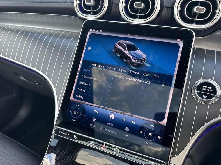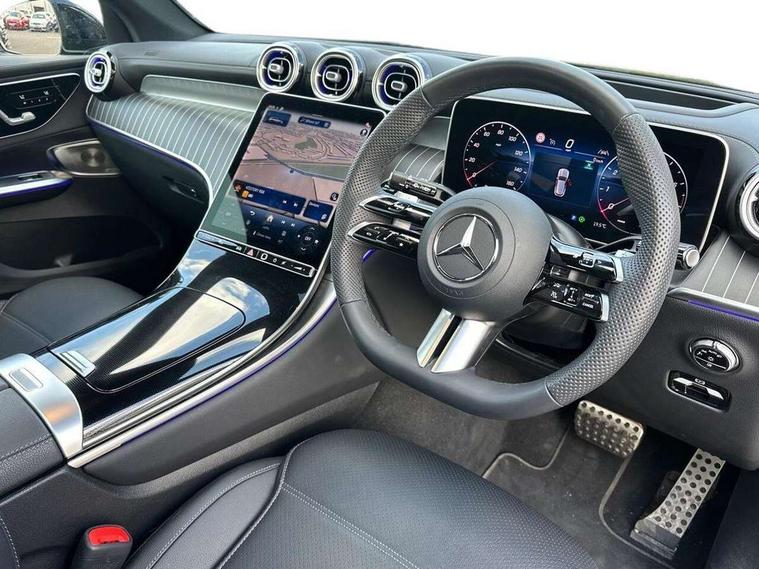 11.9" high resolution multimedia colour display, 12.3" Digital individually configurable instrument display, Acoustic presence indicator, Active lane keeping assist, Attention assist, Blind spot assist, Bluetooth interface for hands free telephone, Collision prevention assist plus, Direct steer speed sensitive steering, DYNAMIC SELECT with a choice of driving modes (ECO, Comfort, Sport and Individual), eCall emergency call system, ECO start/stop function, Fingerprint scanner, Fluorescent jacket for driver, Hard disc navigation, Head up Display, Instrument display in miles with English lettering, MBUX augmented reality for navigation, MBUX navigation premium, MBUX voice control activated by keywords "Hey Mercedes", Mercedes me connect, Multi function trip computer, Outside temperature display, Remote boot release, Remote services plus, Road sign recognition system, Service indicator (ASSYST), Smartphone integration, Status display for rear seat belts in instrument cluster, Tailgate, Traffic sign assist, Wireless charging system for mobile devices in the front, 48V Mild hybrid technology, 4MATIC permanent four wheel drive, 62 litre fuel tank, 9G TRONIC plus automatic transmission, Petrol Particulate Filter (PPF), Residual engine heat utilisation, Burmester 3D surround sound system, DAB digital radio tuner, MBUX extended functions, Pre installation for Mercedes Benz Link, Sound personalisation, Adaptive brake lights, Adaptive high beam assist plus, Aluminium look running boards with rubber studs, AMG bodystyling front apron, rear apron and side skirts, AMG Line exterior, Auto headlights, Black roof rails, Body colour bumpers, Body colour door mirrors, Digital light LED headlights, Electric panoramic glass sunroof, Electrically adjustable door mirrors, Front and rear electric windows, Headlight washers, Heat and noise insulating acoustic glass, Heat insulating dark tinted glass, Heated rear window, High level LED brake light, Integrated LED daytime running lights, LED indicator lights, LED rear fog lights, LED tail lamp, Motor way mode function and locator lighting, Radiator grille with Mercedes Benz pattern and integreated Mercedes star and louvre in dark grey matt with chrome inlay and black frame, Rain sensor windscreen wipers, Range adjustable headlights, Rear side wing doors, Rear wiper, Transparent Bonnet, Two chrome plated tailpipe trim elements, Variable front intermittent wipers, Welcome and follow-me home light functionality, Wheel arch liners in the vehicle colour, 3 seat bench in 2nd row, 40:20:40 split folding rear seats, Ambient lighting premium with projection of brand logo, AMG floor mats, AMG line interior, Artico man-made leather upholstery, Audio and onboard settings control on multifunction steering wheel, Automatic child seat recognition sensor, Black fabric roof lining, Comfort seats, Double cup holder in centre console, Easy-pack removable load compartment cover, Electrically height/reach adjustable steering column, Front centre armrest with stowage compartment, Front head restraints, Galvanised steering wheel gearshift paddles, Heated front seats, Heated steering wheel, Illuminated door sill panels with Mercedes Benz lettering, Illuminated glove compartment, Instrument panel and beltlines in ARTICO manmade leather in nappa look, Multicontour and climatised front seats, Multifunction sports steering wheel in nappa leather, Partition net, Rear centre headrest, Rear head restraints, Rear top tether child seat ISOFIX attachment, Single front passenger seat, Sports pedals with stainless steel surfaces and rubber studs, Sun visors, THERMATIC automatic climate control, Anti theft protection package - GLC, Boot comfort package - GLC, Easy tailgate pack - GLC, Exterior chrome package - GLC, Interior chrome package - GLC, Interior lighting pack - GLC, Keyless-Go comfort package - GLC, Memory pack - GLC, Mirror pack - GLC, Night package - GLC Urban Edition, Parking package with 360 degree camera - GLC, Stowage space package - GLC, USB Plus Pack - GLC, 3 rear 3 point seatbelts, Anti-lock braking system (ABS), ASR traction control, Automatic front passenger airbag deactivation, Black seat belts, Brake calipers with Mercedes-Benz lettering + perforated brake discs, Braking system with larger brake discs on the front axle, Child proof door locks, Dual-stage airbags - driver and front passenger, driver knee bag and window bags for driver, front passenger and rear passengers, Electronic parking brake, Electronic stability programme (ESP) with curve dynamic assist and cross wind assist, Front and rear seatbelt reminder, Front passenger seat occupancy sensor, Front seatbelt pretensioners, Hill start assist, Tyre pressure monitoring system, Warning triangle and first aid kit, Automatic door locking, Guard 360 degree vehicle protection plus, Interior protection/immobiliser, Remote central locking, Black open pore aluminium lines wood trim with centre console in black fine structure, 20" AMG multi spoke light alloy wheels in painted black with high sheen finish, Summer tyres, TIREFIT with tyre inflation compressor,