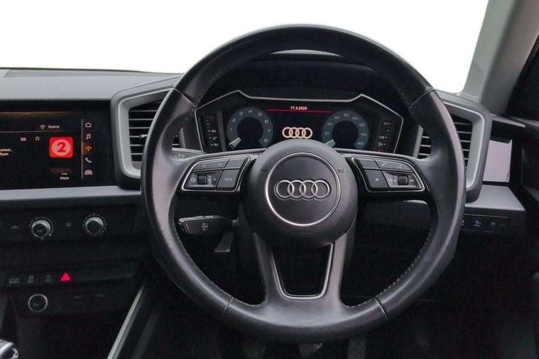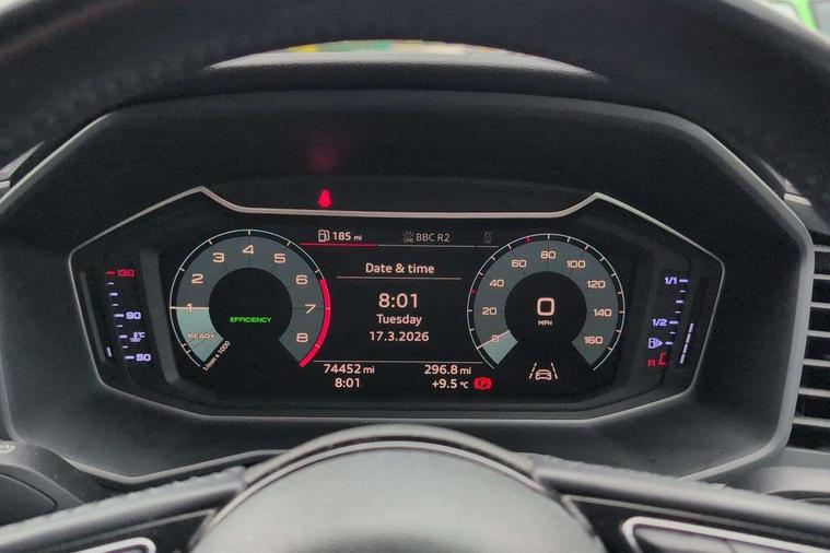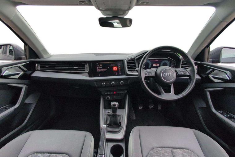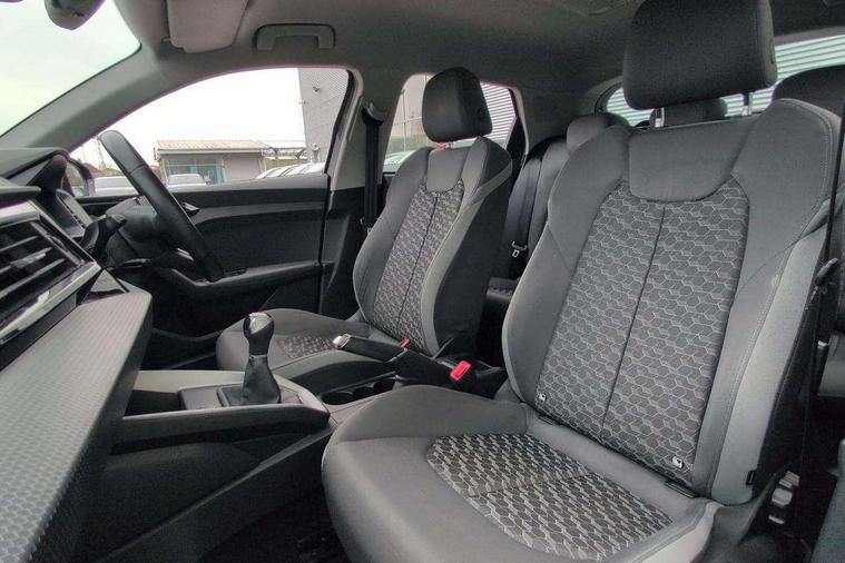 10.25" Digital instrument cluster display screen, Audi connect safety emergency and service including E-call, Audi drive select, Audi smartphone interface, Automatic start/stop system, Bluetooth interface, Driver's information system, Electromechanical power steering, Lane departure warning system, Service interval indicator, Speed limiter, Voice control system, Washer fluid level indicator, Dynamic suspension, 1 x SDXC card reader, 1 x USB type C and 1 USB type A charging points, Audi music interface, Bluetooth audio streaming, DAB Digital radio, MMI radio plus with 8.8" colour MMI display screen and MMI touch, Auto dimming rear view mirror, Body coloured bumpers, Body coloured door mirrors, Electric front and rear windows, Front side air inlets in grained matt black and C frame in titanium black, Heat insulating glass windscreen and side windows, Heated rear windscreen, LED headlights with LED rear lights + dynamic rear indicators, Radiator grille in matt titanium black, Radiator protective grille frame in matt aluminium silver, Rain and light sensors, Rear fog lights, Rear wiper, Side front spoiler lips in grained matt black, Titanium black matt diffuser, 12V socket in centre console with two cup holders, 3 rear seats, Door sills trims with aluminium inlays, Driver and passenger seat with manual height adjust with forward and backwards adjustment, Front head restraints, Front/rear floor mats, Height and reach adjustable steering wheel, Illuminated glovebox, ISOFIX child seat mounting in front passenger and rear outer seats, Leather gear knob with aluminium trim, Leatherette handbrake grip, Luggage compartment light with front and rear reading lights, Lumbar adjustment for front seats, Novum cloth upholstery with front sport seats, Rear head restraints, Split folding rear seats, Titanium grey cloth headlining, 3x3 point rear seatbelts, Audi pre-sense front with pedestrain and cyclist recognition, Brake assist function, Driver and front passenger airbag with front side and head airbags, Electronic Stability Control including ABS, EBD, ASR and EDL, Front and rear seatbelt reminder, Front passenger airbag deactivation switch, Hill hold assist, Seatbelt height adjustment for front seats, Seatbelt monitoring, Tyre pressure warning light, Warning triangle and first aid kit, Anti theft alarm, Anti theft wheel bolts and loose wheel warning, Immobiliser, Remote central locking with 2 remote folding keys, Aluminium trim for control switches, air vents and digital instrument cluster, Silver grey accent areas including air vents, door handle recesses and centre console in diamond paint finish, Slate grey inlays polygon structure in fine paint finish,