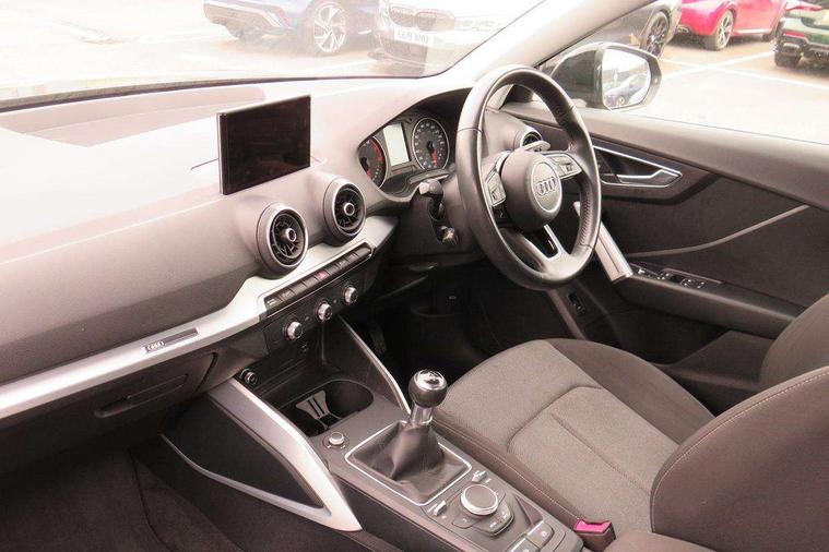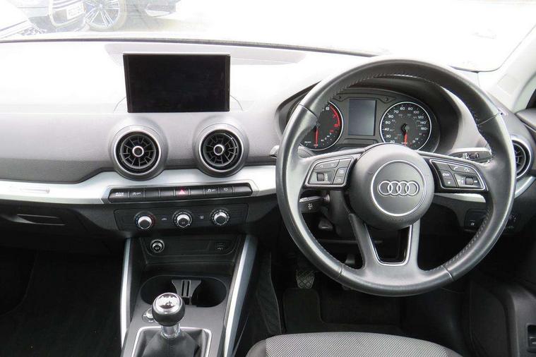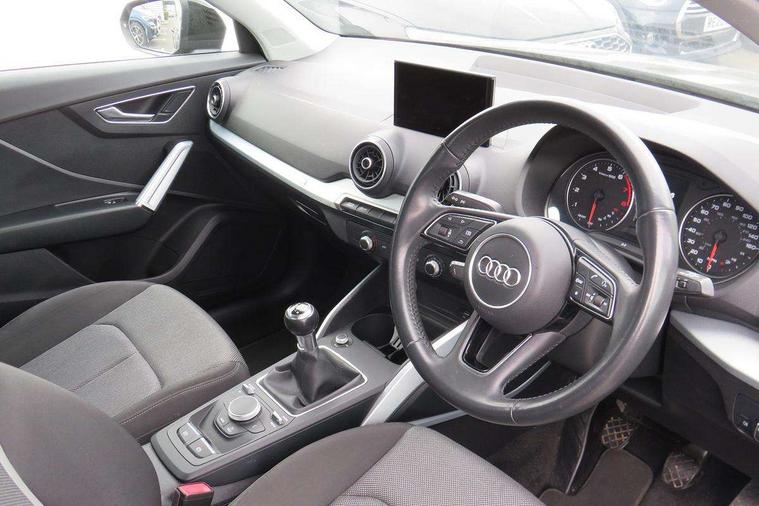 Audi drive select, Audi smartphone interface, Automatic start/stop system with recuperation, Bluetooth interface includes bluetooth audio streaming, Cruise control, MMI - Multi Media Interface control system, MMI SD card integrated nav with 3D map display, dynamic route guidance with TMC, MMI search, natural voice recognition and myAudi special destinations, Power operated tailgate, Progressive steering, Service interval indicator, Dynamic suspension, 2 x SDXC card reader, Audi music interface - apple iPod, apple iPhone, USB storage media, compatible MP3 players, 2 x USB charging points and 1 x Aux-in, CD Drive, DAB digital radio and AM/FM radio, MMI radio plus with 7" colour MMI screen and MMI controller, Air inlet in manhattan grey metallic, Black window trims, Body colour door mirrors, Chrome exhaust tailpipe, Electrically adjustable and heated door mirrors with integrated LED side indicators, Front and rear electric windows, Front underbody guard and rear diffuser trim in selenite silver, Front windscreen with grey tinted sunband, Halogen headlights including headlight range adjustment, High gloss black radiator grille, Interior mirror, LED indicator lights, Manual folding door mirrors, Rain and light sensors, Rear wiper, Side skirts in manhattan grey, Wheel arch trims in manhattan grey, 60/40 split folding rear seat bench, Door sill trims with aluminium inlay, Electronically operated child locks, Front centre armrest, Front headrests, Front sports seats, Front/rear floor mats, Height/reach adjust steering wheel, ISOFIX child seat mounting for front passenger with airbag deactivation and outer rear seat including top tether attachment point for outer rear seats, Manual seat adjustment including seat height adjustment for front seats, Storage compartments - Glovebox, cupholder compartment in centre console, storage compartment in rear centre console, front and rear door pockets, Three rear headrests, Titanium grey cloth headlining, Non smoking pack - Q2, 3x3 point rear seatbelts, 6 airbags - Front, curtain and front side airbags, Electromechanical parking brake, Electronic stabilisation control including ABS, ASR and EDL, Extended and proactive pedestrian protection, Hill hold assist, Multi collision brake assist, Pre-sense front with pedestrian recognition, Seatbelt monitoring, Tyre pressure warning light, Warning triangle and first aid kit, Anti theft alarm, Anti theft wheel bolts, Central locking system with remote control key, Aluminium interior element,