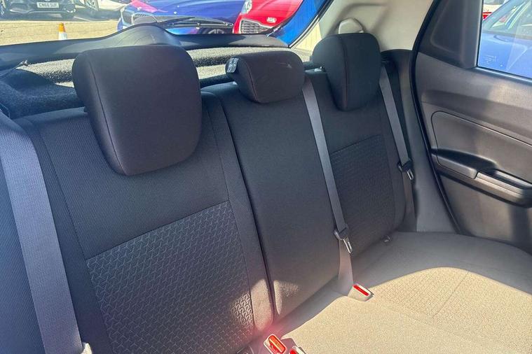 Bluetooth hands free telephone connection, Digital clock, Fuel consumption screen, Lights on warning, Low fuel level warning light, Outside temperature display, PAS, Rear parking camera, Smartphone connectivity, Tachometer, Trip computer, 4 speakers, Auxiliary input socket, Bluetooth audio streaming, DAB Digital radio, USB interface, 'Guide me home' headlamps, 2 speed wipers+intermittent wipe, Automatic headlights, Black coloured A & B pillars, Body colour door mirrors and handles, Body coloured bumpers, Electric door mirrors, Electric front windows + drivers one touch, Front fog lights, Front, side and rear carbon effect skirts, Headlamp levelling, Heated door mirrors, LED daytime running lights, Mesh front grille, Rear privacy glass, Rear spoiler, Rear wiper, Tinted glass, 3 cupholders, 3 spoke leather covered steering wheel, 60/40 split rear seats, Accessory socket, Air conditioning, Centre console storage, Chrome handbrake release button, Chrome inside door opener, Cloth seat trim, Door pockets with bottle holder, Driver/passenger sunvisors with ticket holders + vanity mirrors, Front head restraints, Front map light, Front passenger side assist grip, Glovebox, Height adjustable driver's seat, Isofix, Luggage area lamp, Neck rests to rear seats, Passenger seat back pocket, Pollen filter, Steering wheel audio controls, Storage area with lid, Tilt adjustable steering wheel, Top tether anchor plate for isofix child seat, 3 point ELR seatbelts front and rear, ABS+EBD+Brake assist, Curtain airbags, Driver airbag, ESP + traction control, Front passenger airbag deactivation, Front seatbelt pretensioners with force limiters, Height adjustable front seatbelts, Passenger airbag, Rear child proof door locks, Seatbelt warning lamp and buzzer, Side airbags, Side impact protection beams, Tyre pressure monitor, Deadlocks, Freewheeling key cylinders, Immobiliser, Light - on and Key in reminder, Locking wheel nuts, Remote central locking, Chrome trim, White instrument panel and front door trim, 16" Polished alloy wheels, Tyre repair kit,