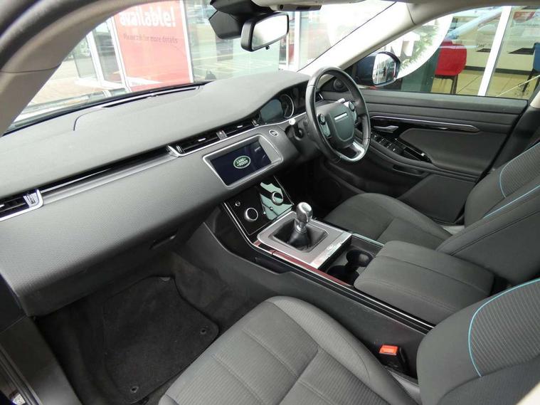 10" touch screen pro, Android Auto, Apple car play, Bluetooth connectivity, Brake pad wear indicator warning light, Cruise control + speed limiter, Driver condition monitor, Electronic power assisted steering (EPAS), InControl remote, Land Rover InControl apps, Lane keep assist, Push button starter, Voice control system, Passive suspension, Digital Audio Broadcast radio-DAB, Steering wheel mounted controls, Electric windows with one touch open/close and anti trap, Evoque badge, Flush deployable exterior door handles, Heated rear window with timer, Heated washer jets, Heated windscreen, Rain sensing windscreen wipers, Rear fog lights, Rear wing door, Tailgate spoiler, Third brake light, 40:20:40 split folding rear seats, Isofix system on outer rear seats, Overhead lighting console, Overhead stowage for sunglasses, Passive front head restraints, Rear air vents, Rear centre headrest, Sunvisors with illuminated vanity mirrors, Twin front cupholders with cover, Twin sliding front centre armrest, 3 rear 3 point seatbelts, Anti-lock braking system (ABS), Customer configurable autolock, DSC - Dynamic Stability Control, Electronic brake force distribution, Electronic parking brake, Electronic traction control, Emergency braking, Front and rear seatbelt reminder, Hill launch assist, Power operated child locks, Roll stability control, Six airbags - Driver and passenger airbags/driver knee airbag/front side airbag and curtain airbags, Tyre pressure monitoring system, Alarm, Immobiliser, Intrusion sensor, Locking wheel nuts,