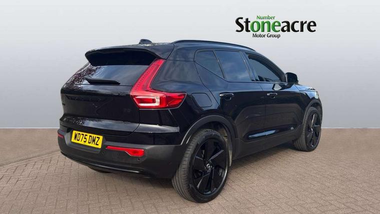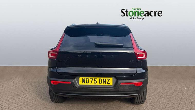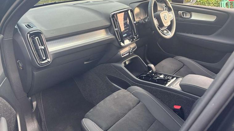 12.3" Progressive Driver Display, 9" centre console portrait touch screen, Adjustable steering wheel force, Android auto (Wired), Apple carplay (wired), Bluetooth handsfree system, Driver alert control, Driver assistance (pilot assist and adaptive cruise control), Driver awareness - Blind spot information system with steer assist, cross traffic alert with autobrake and rear collision warning and mitigation, E-call, Front and rear parking sensors, Front park assist, Google automotive services - Enabled entertainment apps, navigation with google maps, voice recognition with google assistant, Hands free power tailgate, Intelligent speed assistance, Lane keeping aid, Oncoming Lane Mitigation, Speed sensitive steering, Volvo cars services with app - Driving journal, engine remote start, remote door locking/unlocking and vehicle dashboard, Wireless/Inductive Mobile Phone Charging, Automatic transmission with start/stop and manual change functions, Dynamic chassis, DAB Digital radio, Steering wheel mounted remote controls, Adaptive brake lights with high level LED brake lights, Auto dimming feature for exterior door mirrors, Auto dimming interior mirror, Auto folding and heated power door mirrors, Automatic headlamp levelling, Automatic LED Headlights + Active high beam incorporating daytime running lights, Dark tinted windows - rear side windows and rear screen, Front aluminium tread plates, Front and rear electric windows, High gloss black front and rear skid plate, High gloss black front bumper deco, High gloss black front grille strikethrough and ironmark, High gloss black rear model, engine and volvo logo badges, High gloss black window trim, Home safe and approach lighting, Integrated roof rails in high gloss black, LED front fog lights, Puddle lights, Rain sensor with automatic windscreen wiper activation, Rear side wing doors, Rear wiper, Roof antenna, Roof spoiler, Visible VIN plate, 12V socket in front tunnel console and luggage compartment, 2-Zone electronic climate control with CleanZone air quality system and pollen filter, 3 seat bench in 2nd row, 3 Spoke tailored steering wheel with chrome trim, 60/40 versatile split folding rear seat, Centre console cupholders and storage, Charcoal carpet and floor mats, Charcoal headlining, Connect suede textile/microtech upholstery, Flexible load floor and grocery bag holder, Front headrests, Front seat cushion extensions, Glovebox bag hook, Heated front seats, Height adjustable passenger seat, Height/reach adjustable steering column, High gloss centre tunnel deco, High level illumination - Front door pocket, front side step (under door), tailgate, instrument panel, front door inlay, rear courtesy&reading lights, Integrated waste bin, Isofix attachments on outer rear seats, Load cover, Load protection net, Mid level illumination - Front footwell, luggage & glovebox compartment, front cabin courtesy & reading lights, illuminated vanity mirrors+ticket holder, Multi directional lumbar support for driver and passenger seat, Power driver seat with memory + exterior mirrors memory, Rear armrest with cupholders, Rear headrests, Single front passenger seat, Underfloor luggage compartment storage, Climate pack without heated front seats - XC40, 3x3 point rear seatbelts, City safety with steering support with Pedestrian + cyclist + front collision warning with full auto brake and rear auto brake, Driver and passenger airbags, Drivers knee airbag, Electronic parking brake with auto hold, First aid kit, Front and outer rear seatbelt reminder and pretensioners, Front seats SIPS airbags, Hill descent control - Off-road drive mode, Hill start assist, IC (Inflatable Curtains) - Full Length, Passenger airbag cut-off device, Power child locks on rear doors, Road sign information display, Run off Road Protection, SIPS (Side Impact Protection System), Slippery road and hazard light alert, Stability and Traction Control with Spin control, Engine Drag Control and Corner Traction Control, Tyre pressure monitoring system, Vehicle deceleration control with Anti-lock Brake System, Electronic Brake Distribution and Emergency Brake Assist, Warning triangle, WHIPS whiplash protection system - front, 2 x Key integrated remote control central locking including with deadlocking system and auto open/close windows, Anti-theft alarm including immobiliser/volume sensor + level sensor, Keyless drive includes keyless entry and keyless start, Locking wheel nuts, 20" 5 spoke high gloss black alloy wheels,