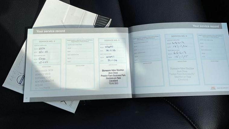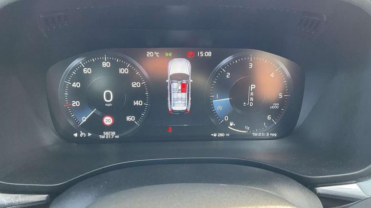 12.3" Active TFT crystal driver's instrument display, 9" Touch screen, Adjustable steering wheel force, Bluetooth hands free telephone kit, Drive mode selector, Front collision warning with full auto brake, Intelligent driver information system (IDIS), Lane keep assist with driver alert control, Oncoming Lane Mitigation, Power tailgate, Remote fuel flap release, Road Edge Detection, Service interval indicator, Speed limiter, Speed sensitive steering, Trip computer, Voice control system, Volvo on call, Diesel particulate filter, DAB Digital radio, Steering wheel mounted remote controls, Adaptive brake lights, Aluminium tread plates, Auto dimming interior + exterior mirrors, Body colour bumpers, Body colour door mirrors, Electric folding door mirrors, Electric front+rear windows, Electrically adjustable and heated door mirrors, Headlamp levelling, Home safe and approach lighting, Illuminated side steps, LED Headlights + Active high beam incorporating daytime running lights, Piano black front grille with chrome surround, Rain sensor windscreen wipers, Rear wiper, Roof antenna, Roof spoiler, Silver roof rails, Tinted windscreen, Twin exhaust tailpipes with chrome finishers, Visible VIN plate, 12V power point in luggage area, 12V socket in front + rear tunnel console, 3 spoke leather steering wheel with chrome trim, 60/40 split folding rear seat, A-pillar parking ticket holder, B Pillar ventilation, Bright metal luggage threshold, Centre armrest storage illumination, Centre console cupholders and storage, Floor mats, Front footwell illumination, Front/rear reading lights, Glovebox illumination, Head restraints for all seats, Heated front seats, Height/reach adjustable steering column, Illuminated driver/passenger vanity mirrors, Illuminated luggage compartment, ISOFIX attachment on outer rear seats, Leather upholstery, Load cover, Pollen filter, Rear armrest / integral cup holders / storage tray, Rear seat concealed storage, Theatre dimming interior lights, Ticket holder, Underfloor stowage compartment, Vanity mirror with ticket holder, WHIPS - Whiplash Protection System, 5 three point seatbelts, ABS/EBD, City safety with steering support with Pedestrian + cyclist + large animal detection + front collision warning with full auto brake, Curtain airbags, Drivers knee airbag, DSTC-Dynamic Stability and Traction Control, Dual stage driver/passenger airbags, EBA, Electronic parking brake with auto hold, Fasten seatbelt reminder, First aid kit, Hill descent control, Hill start assist, Hydraulic Brake Assist (HBA), Passenger airbag deactivate switch, Road sign information display, Run off Road Protection, Seatbelt pre-tensioners, SIPS airbags, Tyre pressure monitor, Warning triangle, Anti-theft alarm including immobiliser/volume sensor + level sensor, Key integrated remote control central locking + fuel flap with deadlocking system and auto open/close power windows, Locking wheel nuts, Private locking for tailgate, Iron ore inlays,