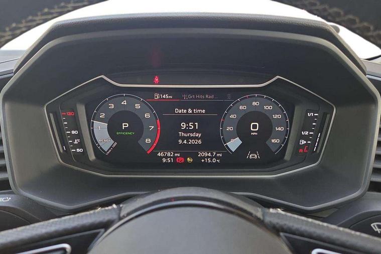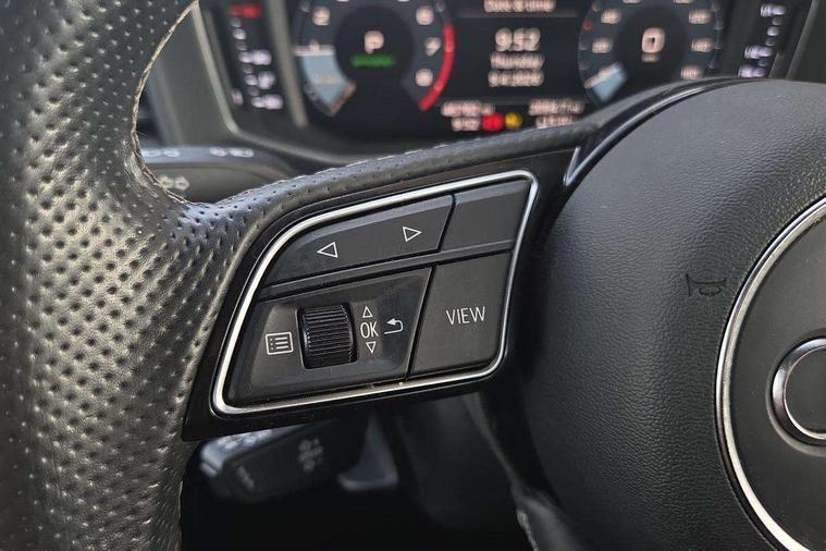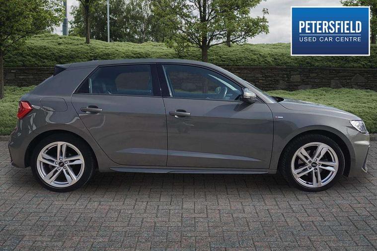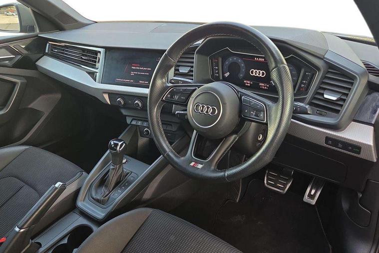 10.25" Digital instrument cluster display classis style instrument dials + speed, odometer, time, outside temperature, telephone menu + fuel level warning, Audi connect safety emergency and service including E-call, Audi drive select - power steering assistance + engine + gear shift 3 preset modes (auto, dynamic, efficiency and an Individual mode), Audi smartphone interface with connect compatible smartphone via USB directly MMI display + Nav, music, third party apps controlled via MMI controller, Automatic start/stop system, Bluetooth interface, Cruise control, Driver's information system, Electromechanical power steering, Lane departure warning system, Service interval indicator, Speed limiter, Voice control system, Washer fluid level indicator, Sports suspension, 1 x SDXC card reader, 2 x USB type C connection points, DAB Digital radio, MMI radio plus with 8.8" colour MMI display screen and MMI touch, Auto dimming rear view mirror, Body coloured door mirrors, Door sills with aluminium inlays and S Line logo, Electric front and rear windows, Electrically adjustable, heated, folding door mirrors with integrated LED side indicator, Front side air inlets in grained matt black and C frame in titanium black, Heat insulating glass windscreen and side windows, Heated rear windscreen, LED headlights with LED rear lights + dynamic rear indicators + headlight adjustment and high beam, turning light + LED daytime running lights, Radiator grille and rear diffuser in matt titanium black, Radiator protective grille frame in matt aluminium silver, Rain and light sensors, Rear fog lights, Rear wiper, S line badges on front wings, Side front spoiler lips in grained matt black, 12V socket in centre console with two cup holders, 3 rear seats with headrests, 40:60 Split folding rear seat or folded fully, Black cloth headlining, Driver and passenger seat with manual height adjust with forward and backwards adjustment, Front and rear black floor mats with contrast stitching in fine silver, Front head restraints, Height and reach adjustable steering wheel, ISOFIX child seat mounting for front passenger and outer rear seats including top tether attachment point of outer rear seats, Leather gear knob with aluminium trim, Luggage compartment light with front and rear reading lights, Manually adjustable lumbar support in front seats, Stainless steel pedals, LED interior lighting pack - A1, Luggage compartment pack - A1, S line exterior styling pack - A1 Sportback, 3x3 point rear seatbelts, Brake assist function, Driver and front passenger airbag with front side and head airbags, Electronic Stability Control including ABS, EBD, ASR and EDL, Front passenger airbag deactivation switch, Hill hold assist, Seatbelt height adjustment for front seats, Seatbelt monitoring, Tyre pressure warning light, Warning triangle and first aid kit, Anti theft alarm, Anti theft wheel bolts and loose wheel warning, Audi pre-sense front with pedestrain and cyclist recognition, Immobiliser, Remote central locking with 2 foldaway keys, Aluminium trim for control switches, air vents and digital instrument cluster, Silver grey inlays polygon structure in diamond paint finish, Structured grey accent areas including air vents, door handle recesses and centre console in quartz paint finish,