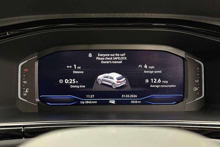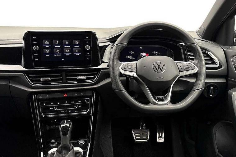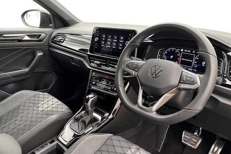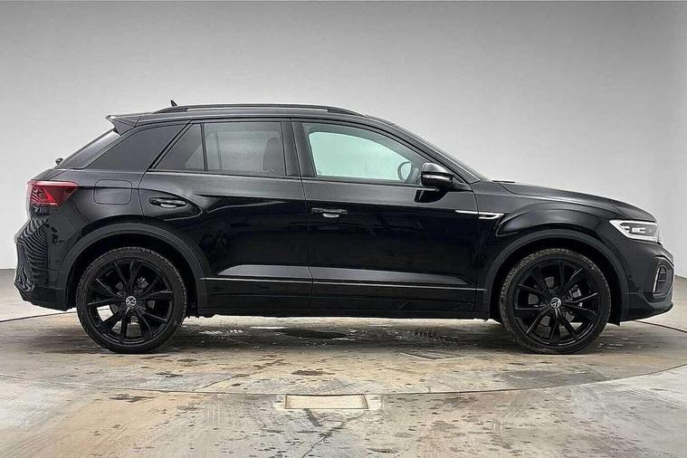 10.25" Digital cockpit pro, Advanced driver attention and drowsiness monitor, Emergency call service, Lane keeping system Lane Assist, Mobile phone interface, Modified key software - reduce switch off time for key status change to Long no motion, Online services, Park assist including front and rear parking sensors, Power assisted speed sensitive steering, Rear view camera, Service interval indicator, Tailgate/trunk lid release from outside, Think blue trainer driver tips and journey analysis, Warning sound and light for front seatbelts unfastened, Wireless app connect, Battery regeneration during braking, Rear shock absorption chassis with increased ride height, Start/stop function with battery regeneration, DAB Digital radio, Diversity antenna for FM reception, Music playback - MP3, WMA and AAC files, SD card slot, Simultaneous pairing of 2 compatible mobile devices, Title and cover art display, We Connect and We Connect Plus functionality, Advanced dynamic light assist for LED matrix headlights, Auto dimming interior rear view mirror, Automatic hazard lights activation under emergency braking, Black roof rails, Dynamic cornering light, Dynamic headlight range control with self adjusting whilst driving, Electrically adjustable and heated door mirrors, Extended roof spoiler, Exterior ambient lighting, Exterior mirrors aspherical on driver side, convex on front passenger side, External USB type C socket and charging sockets, Front windscreen wiper with intermittent wipe and 4 position delay, Heated rear window, Illuminated front grille, IQ LED matrix headlights, LED 3rd brake light, LED rear number plate lights, LED rear tail lights with dynamic turn signal, LED separate daytime running light, Light mode for poor weather, rain, fog or snow, Power windows with comfort operation and circuit breaker, Privacy glass for rear side windows and rear window, R-Line design body coloured bumpers, Rain sensor, Rear exhaust tailpipe, Rear fog light on one side and reversing lights on both sides, Rear side wing doors, Rear wash/wipe with intermittent wipe setting, Remote electrically foldable door mirrors, puddle lights and reverse activated passenger's door mirror, Tilting and sliding panoramic sunroof with rear panoramic sunroof, 12V power socket in centre console, 3 rear head restraints, 3 seat bench in 2nd row, 4 load lashing points in luggage compartment, Air care climatronic air conditoning system with active combination filter and 2-zone temperature control, Chrome plated radiator grille inserts, air vent surrounds and light switch surrounds, Door and side trim panel with leatherette insert, Drawer under drivers seat, Front + rear carpet mats, Front centre armrest, Front comfort sports seats, Front cupholders x 2, Front footwell illumination, Front reading light, Front scuff plates with R Line logo, Front seat back storage pockets, Glove compartment door with light, Instrument lighting, white adjustable panel illumination, Interior ambient lighting and surround lighting, Interior light delay, Isofix child seat preparation, Leather gearshift handle, Load-through provision with cup holder when folded down ('Unsplit rear seat bench, split folding backrest, with centre armrest), Luggage compartment lighting, Non-folding front passenger seat backrest, Single front passenger seat, Stainless steel pedals, Storage compartment in left and right luggage area, Storage compartment in rear doors, Storage compartments in driver and front passenger doors, Sunvisors with illuminated vanity mirrors, Variable boot floor, height adjustable and removable, Black design pack - T-Roc black edition plus, Easy open package with safelock - T-Roc, Sport pack with sports suspension - T-Roc, 3 point height adj front seatbelts + pretensioners, 3 point seatbelts in outer rear with ECE label, ABS, Child locks on rear doors, City emergency braking and pedestrian monitoring, Driver and front passenger airbag with front passenger airbag deactivation, Driver and front passenger safety-optimised head restraints, Drivers seatbelt reminder, Electronic parking brake, Electronic Stability Control (ESC) inc EDL (Electronic Differential Lock) and ASR (Traction Control), Front and rear passengers curtain airbag system including front side airbags, Front disc brakes, Hill start assist, Predictive pedestrian protection, Rear disc brakes, Two tone horn, Tyre pressure loss indicator, Volkswagen roadside assistance, Keyless locking and starting system keyless access with safelock, Gloss deep iron dash trim, 19" Misano black diamond turned alloy wheels with low rolling resistance and anti theft wheel bolts, Tool kit, Trims for alloy wheels, Tyre mobility kit including compressor and sealing foam,