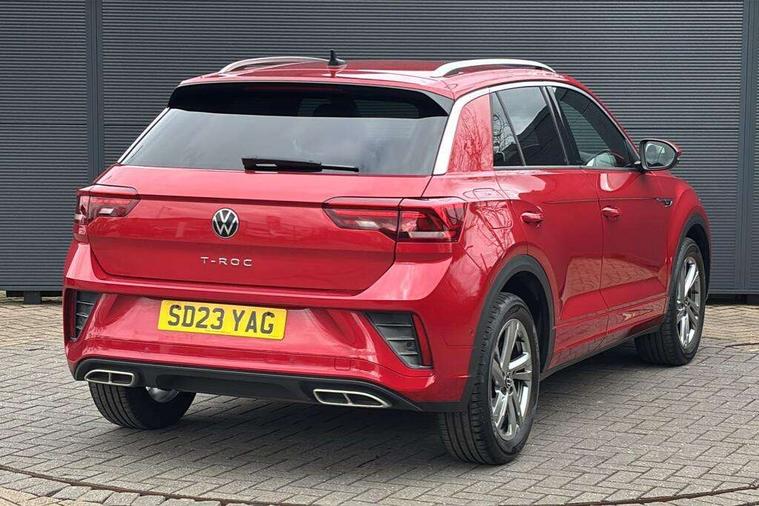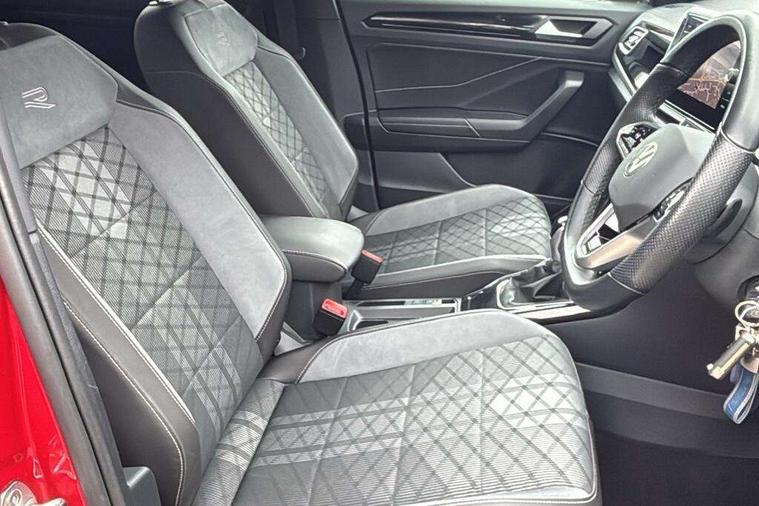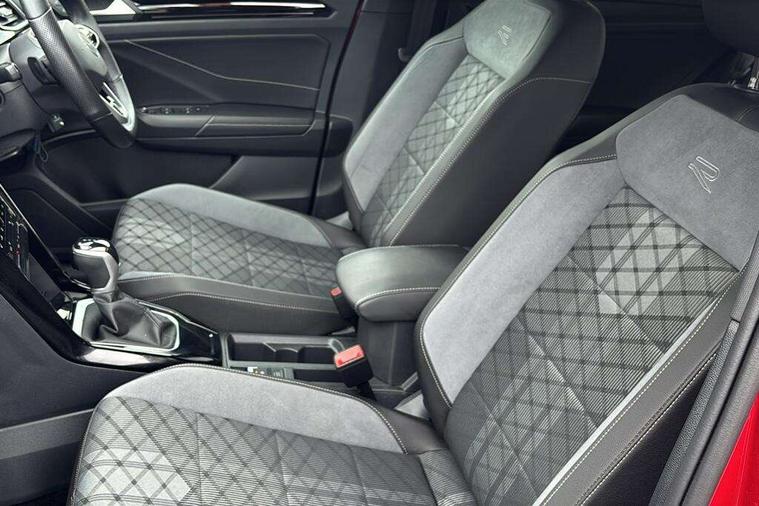 10.25" Digital cockpit pro, Bluetooth mobile phone interface, Driver alert system with fatigue detection, Driver tips and journey analysis, Emergency call service, Lane keeping system Lane Assist, Modified key software - reduce switch off time for key status change to Long no motion, Online services, Park assist including front and rear parking sensors, Service interval indicator, Tailgate/trunk lid release from outside, Think blue trainer driver tips and journey analysis, Warning sound and light for front seatbelts unfastened, Wireless app connect, Battery regeneration during braking, Start/stop function with battery regeneration, Diversity antenna for FM reception, Front and rear 6 speakers, Music playback - MP3, WMA and AAC files, Premium USB cable in choice of either Apple or Android smartphone compatibility, SD card slot, Simultaneous pairing of 2 compatible mobile devices, Title and cover art display, We Connect and We Connect Plus functionality, 3rd brake light, Auto dimming interior rear view mirror, Automatic hazard lights activation under emergency braking, Automatic headlight control with LED separate daytime running lights with coming/leaving home function, Extended roof spoiler, Exterior mirrors aspherical on driver side, convex on front passenger side, External USB type C socket and charging sockets, Front windscreen wiper with intermittent wipe and 4 position delay, Heated rear window, LED Plus headlamps, LED rear combination lamps, LED rear number plate lights, LED tail lamp rear comination lamps, Power windows with comfort operation and circuit breaker, R-Line design body coloured bumpers, Rain sensor, Rear exhaust tailpipe, Rear fog light on one side and reversing lights on both sides, Rear side wing doors, Rear wash/wipe with intermittent wipe setting, Remote electrically foldable door mirrors, puddle lights and reverse activated passenger's door mirror, 12V power socket in centre console, 3 rear head restraints, 3 seat bench in 2nd row, 4 load lashing points in luggage compartment, Air care climatronic air conditoning system with active combination filter and 2-zone temperature control, Black roof lining, Chrome plated radiator grille inserts, air vent surrounds and light switch surrounds, Door and side trim panel with leatherette insert, Drawer under drivers seat, Front + rear carpet mats, Front centre armrest, Front cupholders x 2, Front footwell illumination, Front reading light, Front scuff plates with R logo, Instrument lighting, white adjustable panel illumination, Interior ambient lighting and surround lighting, Interior light delay, Isofix child seat preparation, Leather gearshift handle, Load-through provision with cup holder when folded down ('Unsplit rear seat bench, split folding backrest, with centre armrest), Luggage compartment lighting, Single front passenger seat, Stainless steel pedals, Storage compartment in left and right luggage area, Storage compartment in rear doors, Storage compartments in driver and front passenger doors, Sunvisors with illuminated vanity mirrors, Variable boot floor, height adjustable and removable, Driver assistance pack without proactive passenger protection - T-Roc, 3 point height adj front seatbelts + pretensioners, 3 point seatbelts in outer rear with ECE label, ABS, Child locks on rear doors, Driver and front passenger airbag with front passenger airbag deactivation, Driver and front passenger safety-optimised head restraints, Drivers seatbelt reminder, Electronic parking brake, Electronic Stability Control (ESC) inc EDL (Electronic Differential Lock) and ASR (Traction Control), Front and rear passengers curtain airbag system including front side airbags, Front assist with city emergency braking and pedestrian monitoring, Front seat side impact airbags, Hill start assist, Predictive pedestrian protection, Rear disc brakes, Single tone horn, Tyre pressure loss indicator, Volkswagen roadside assistance, Alarm with interior protection, Anti-theft alarm system with interior monitoring, backup horn, and towing protection, Remote central locking with SAFELOCK, radio remote control with 2 remote control folding keys, Trims for alloy wheels,
