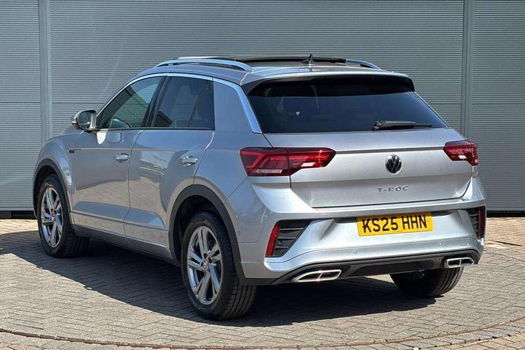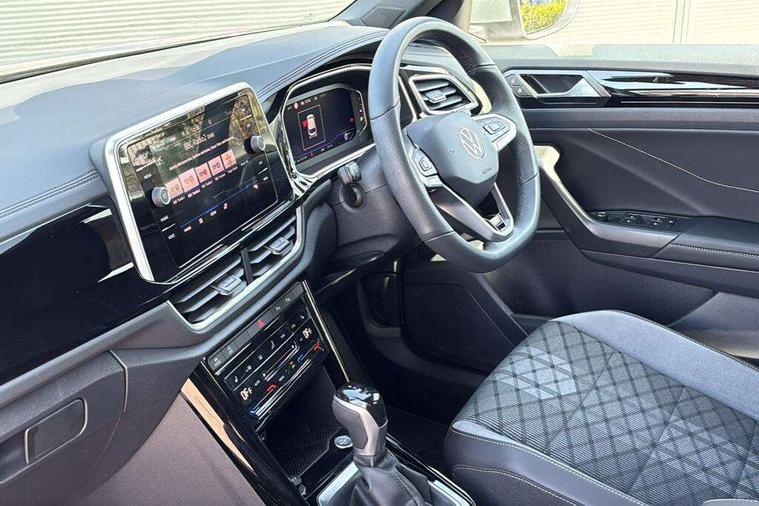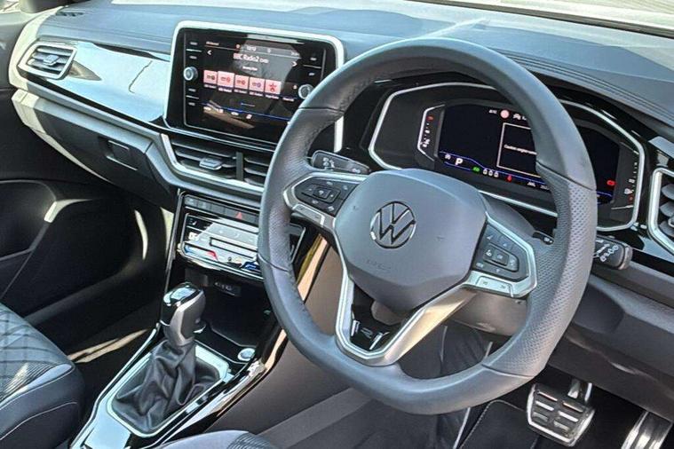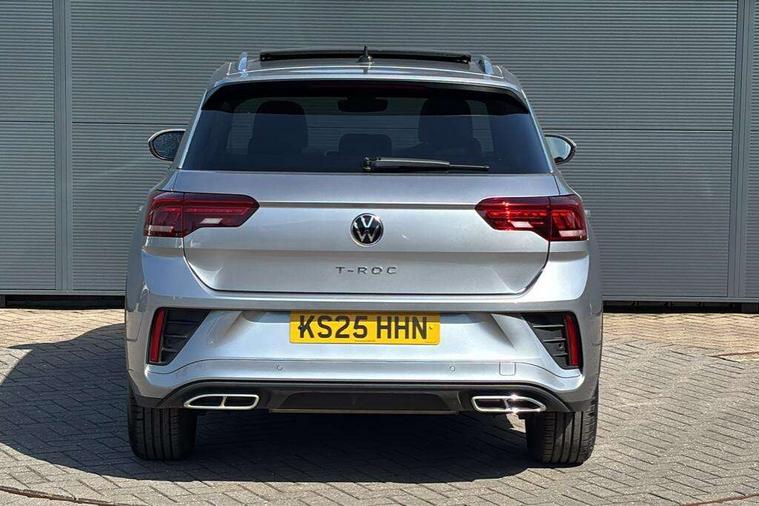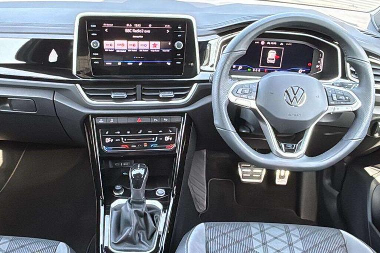 10.25" Digital cockpit pro, Advanced driver attention and drowsiness monitor, Dynamic road sign display, Emergency call service, Lane keeping system Lane Assist, Mobile phone interface, Modified key software - reduce switch off time for key status change to Long no motion, Online services, Park assist including front and rear parking sensors, Service interval indicator, Tailgate/trunk lid release from outside, Think blue trainer driver tips and journey analysis, Warning sound and light for front seatbelts unfastened, Wireless app connect, Battery regeneration during braking, Start/stop function with battery regeneration, DAB Digital radio, Diversity antenna for FM reception, Front and rear 6 speakers, Music playback - MP3, WMA and AAC files, Premium USB cable in choice of either Apple or Android smartphone compatibility, SD card slot, Simultaneous pairing of 2 compatible mobile devices, Title and cover art display, We Connect and We Connect Plus functionality, Auto dimming interior rear view mirror, Automatic hazard lights activation under emergency braking, Automatic headlight control with LED separate daytime running lights with coming/leaving home function, Body coloured exterior mirror housings and door handles, Electrically adjustable and heated door mirrors, Extended roof spoiler, Exterior mirrors aspherical on driver side, convex on front passenger side, External USB type C socket and charging sockets, Front windscreen wiper with intermittent wipe and 4 position delay, Heated rear window, LED 3rd brake light, LED rear combination lamps, LED rear number plate lights, Power windows with comfort operation and circuit breaker, Privacy glass for rear side windows and rear window, R-Line design body coloured bumpers, Rain sensor, Rear exhaust tailpipe, Rear fog light on one side and reversing lights on both sides, Rear side wing doors, Rear wash/wipe with intermittent wipe setting, Remote electrically foldable door mirrors, puddle lights and reverse activated passenger's door mirror, 12V power socket in centre console, 3 rear head restraints, 3 seat bench in 2nd row, 4 load lashing points in luggage compartment, Air care climatronic air conditoning system with active combination filter and 2-zone temperature control, Black roof lining, Chrome plated decorative trims, Chrome plated radiator grille inserts, air vent surrounds and light switch surrounds, Door and side trim panel with leatherette insert, Front + rear carpet mats, Front centre armrest, Front cupholders x 2, Front footwell illumination, Front reading light, Front scuff plates with R Line logo, Front seat back storage pockets, Glove compartment door with light, Instrument lighting, white adjustable panel illumination, Interior ambient lighting and surround lighting, Interior light delay, Isofix child seat preparation, Leather gearshift handle, Load-through provision with cup holder when folded down ('Unsplit rear seat bench, split folding backrest, with centre armrest), Luggage compartment lighting, Single front passenger seat, Stainless steel pedals, Storage compartment in left and right luggage area, Storage compartment in rear doors, Storage compartments in driver and front passenger doors, Sunvisors with illuminated vanity mirrors, Variable boot floor, height adjustable and removable, Driver assistance pack without proactive passenger protection - T-Roc, 3 point height adj front seatbelts + pretensioners, 3 point seatbelts in outer rear with ECE label, ABS, Child locks on rear doors, City emergency braking and pedestrian monitoring, Driver and front passenger airbag with front passenger airbag deactivation, Driver and front passenger safety-optimised head restraints, Drivers seatbelt reminder, Electronic parking brake, Electronic Stability Control (ESC) inc EDL (Electronic Differential Lock) and ASR (Traction Control), Front and rear passengers curtain airbag system including front side airbags, Hill start assist, Predictive pedestrian protection, Rear disc brakes, Two tone horn, Tyre pressure loss indicator, Volkswagen roadside assistance, Piano black decorative inserts in dashboard and front door trim panels, Trims for alloy wheels,