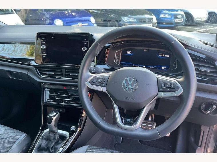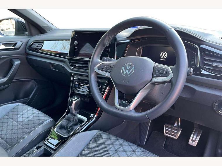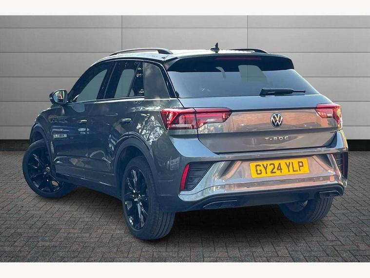 10.25" Digital cockpit pro, Advanced driver attention and drowsiness monitor, Bluetooth mobile phone interface, Emergency call service, Lane keeping system Lane Assist, Modified key software - reduce switch off time for key status change to Long no motion, Online services, Park assist including front and rear parking sensors, Service interval indicator, Tailgate/trunk lid release from outside, Think blue trainer driver tips and journey analysis, Warning sound and light for front seatbelts unfastened, Wireless app connect, Battery regeneration during braking, Start/stop function with battery regeneration, Diversity antenna for FM reception, Music playback - MP3, WMA and AAC files, Premium USB cable in choice of either Apple or Android smartphone compatibility, SD card slot, Simultaneous pairing of 2 compatible mobile devices, Title and cover art display, We Connect and We Connect Plus functionality, 3rd brake light, Auto dimming interior rear view mirror, Automatic hazard lights activation under emergency braking, Automatic headlight control with LED separate daytime running lights with coming/leaving home function, Electrically adjustable and heated door mirrors, Extended roof spoiler, Exterior mirrors aspherical on driver side, convex on front passenger side, External USB type C socket and charging sockets, Front windscreen wiper with intermittent wipe and 4 position delay, Heated rear window, LED rear combination lamps, LED rear number plate lights, Power windows with comfort operation and circuit breaker, R-Line design body coloured bumpers, Rain sensor, Rear exhaust tailpipe, Rear fog light on one side and reversing lights on both sides, Rear side wing doors, Rear wash/wipe with intermittent wipe setting, Remote electrically foldable door mirrors, puddle lights and reverse activated passenger's door mirror, 12V power socket in centre console, 3 rear head restraints, 3 seat bench in 2nd row, 4 load lashing points in luggage compartment, Air care climatronic air conditoning system with active combination filter and 2-zone temperature control, Black roof lining, Chrome plated radiator grille inserts, air vent surrounds and light switch surrounds, Door and side trim panel with leatherette insert, Front + rear carpet mats, Front centre armrest, Front cupholders x 2, Front footwell illumination, Front reading light, Front scuff plates with R Line logo, Front seat back storage pockets, Glove compartment door with light, Instrument lighting, white adjustable panel illumination, Interior ambient lighting and surround lighting, Interior light delay, Isofix child seat preparation, Leather gearshift handle, Load-through provision with cup holder when folded down ('Unsplit rear seat bench, split folding backrest, with centre armrest), Luggage compartment lighting, Single front passenger seat, Stainless steel pedals, Storage compartment in left and right luggage area, Storage compartment in rear doors, Storage compartments in driver and front passenger doors, Sunvisors with illuminated vanity mirrors, Variable boot floor, height adjustable and removable, Driver assistance pack without proactive passenger protection - T-Roc, 3 point height adj front seatbelts + pretensioners, 3 point seatbelts in outer rear with ECE label, ABS, Child locks on rear doors, City emergency braking and pedestrian monitoring, Driver and front passenger airbag with front passenger airbag deactivation, Driver and front passenger safety-optimised head restraints, Drivers seatbelt reminder, Electronic parking brake, Electronic Stability Control (ESC) inc EDL (Electronic Differential Lock) and ASR (Traction Control), Front and rear passengers curtain airbag system including front side airbags, Hill start assist, Predictive pedestrian protection, Rear disc brakes, Two tone horn, Tyre pressure loss indicator, Volkswagen roadside assistance, Anti-theft alarm system with interior monitoring, backup horn, and towing protection, Remote central locking with SAFELOCK, radio remote control with 2 remote control folding keys, Trims for alloy wheels,