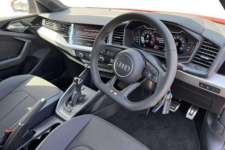 10.25" Digital instrument cluster display classis style instrument dials + speed, odometer, time, outside temperature, telephone menu + fuel level warning, Advanced driver attention and drowsiness monitor, Audi connect emergency call and service, Audi drive select, Audi remote connect and control, Bluetooth interface, Camera based traffic sign recognition, Cruise control, Driver's information system, Electromechanical power steering, Lane departure warning system, Rear parking sensor, Service interval indicator, Smartphone interface, Speed limiter, Start stop system with recuperation, Voice control system, Washer fluid level indicator, Sports suspension, 2 x USB type C connection points, 6 loudspeakers, DAB Digital radio, MMI radio plus with 10.1" colour MMI display screen and MMI touch, Auto dimming rear view mirror, Black door mirror housings, Black side skirts, Body coloured bumpers, Door sill trims with aluminium inlays and logo, Electric front and rear windows, Electrically adjustable, heated, folding door mirrors with integrated LED side indicator, Front side air inlets in grained matt black and C frame in anthracite black, Front wing badges, Headlight cleaning system, Heat insulating glass windscreen and side windows, Heated rear windscreen, High level LED brake light, LED daytime running lights, LED headlights with range control LED rear lights + dynamic rear indicators, Light and rain sensors, Privacy glass, Radiator grille and rear diffuser in matt anthracite black, Radiator protective grille frame in matt aluminium silver, Rear fog lights, Rear side wing doors, Rear wiper, Side front spoiler lips in grained matt black, 12V socket in centre console with two cup holders, 3 rear seats with headrests, 3 seat bench in 2nd row, 3 spoke flat bottomed multi-function plus leather steering wheel with S badging, grips in preforated leather, contrast stitching and paddle shift, 40:60 Split folding rear seat or fully collapsed, Black carpets, Black cloth headlining, Front and rear velour black floor mats with contrast stitching in fine silver, Front head restraints, Front passenger seat, Height and reach adjustable steering wheel, Interior lighting includes roof module, front and rear reading lights and right luggage compartment lighting, ISOFIX child seat mounting for front passenger and outer rear seats including top tether attachment point of outer rear seats, Leather gear knob with aluminium trim, Leather handbrake grip, Manual air conditioning, Manual height adjustable for driver and front passenger seat, Manually adjustable lumbar support in front seats, Stainless steel pedals, Ambient lighting package - A1, Black styling pack - A1 Sportback Black Edition, Luggage compartment pack - A1, 3x3 point rear seatbelts, Audi pre-sense front with pedestrain and cyclist recognition, Brake assist function, Driver and front passenger airbag with front side and head airbags, Electronic Stability Control including ABS, EBD, ASR and EDL, Front passenger airbag deactivation switch, Hill hold assist, Manual rear child locks, Seatbelt height adjustment for front seats, Seatbelt monitoring, Tyre pressure loss indicator, Warning triangle and first aid kit, Anti theft alarm, Anti theft wheel bolts, Immobiliser, Remote control key with safelock, Aluminium trim for control switches, air vents and digital instrument cluster, Black dashboard, Silver grey inlays polygon structure in diamond paint finish, Structured grey accent surfaces insert of air vents, interior door handle recesses and centre console in quartz paint finish,