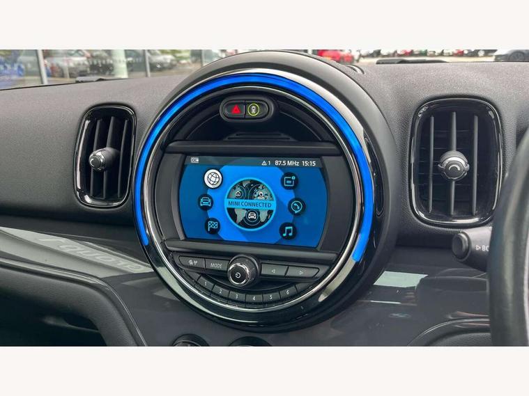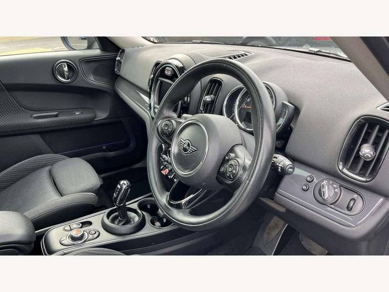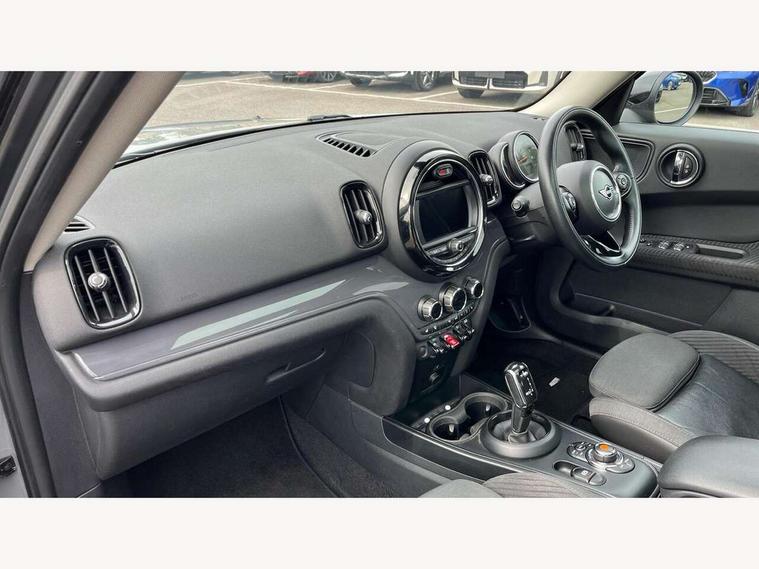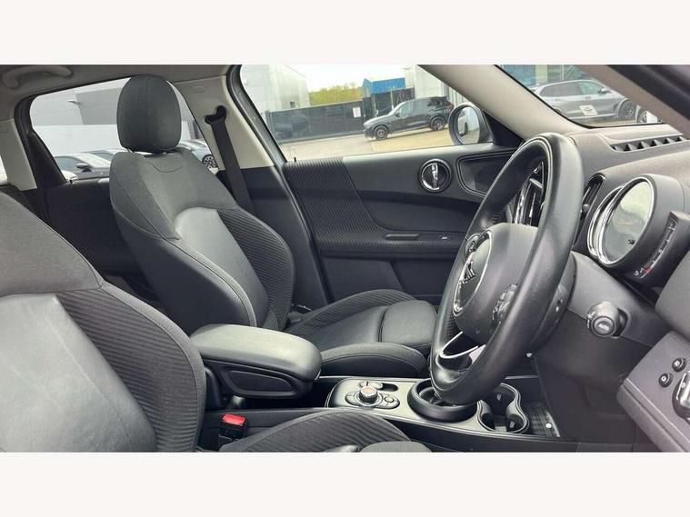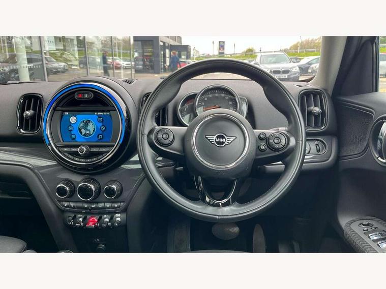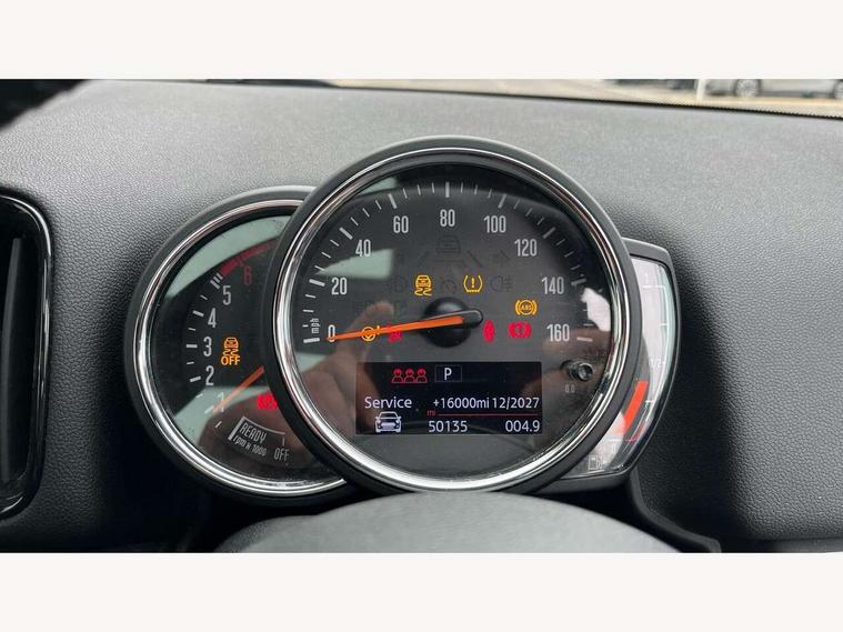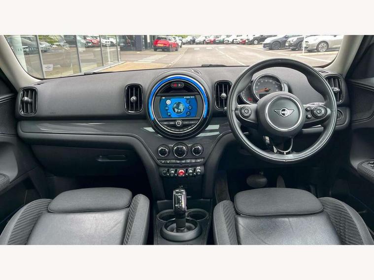 Apple CarPlay preparation, Brake pad wear indicator warning light, Central display with LED ring and 6.5" colour touch screen, Connected driver, DTC - Dynamic traction control, Exterior temperature gauge, Intelligent emergency call, MINI remote services, MINI TeleServices, Navigation system, On board computer, Personal Profile, Real time traffic information, Service interval indicator, Servotronic speed sensitive power steering, Diesel particulate filter, Electronic differential lock, Auxiliary input socket, DAB digital radio module, MP3 compatible radio/single CD player, Radio visual boost, Anti dazzle rear view mirror, Chrome door handles, Chrome exhaust tailpipe, Chrome headlight surround, Chrome plated radiator grille, Chrome window surround, Electric front windows + one touch + anti-pinch, Electrically adjustable door mirrors, Follow me home headlights, Green tinted glass, Heated door mirrors/heated windscreen washers, Heated rear window with automatic switch off, Metal look door sill finishers, Rain sensor including auto headlights activation, Rear wiper, Roof spoiler, White indicator lights, 12V power point front, 2 cupholders in front centre console, 4 lashing points to secure luggage, 40:20:40 split folding rear seats, Centre console storage box, Chrome interior door handles, Driver/passenger sunvisors, Front and rear headrests, Front interior light, Front passenger grab handle, Front seat backrest storage nets, Heater with recirculation function, Height/reach adjust steering wheel, Isofix rear child seat preparation, Luggage compartment lighting, Multifunction steering wheel, Rear grab handles, Sensatec gearshift and handbrake, Storage compartments in doors, Toolkit in luggage compartment, Interior lights pack - Countryman, MINI Excitement Pack - Countryman, 3 point automatic seatbelts, 3 point seatbelts on all rear seats, ABS, Cornering brake control (CBC), Crash Sensor - activates hazard/interior lighting + unlocks doors, Driver and passenger airbags, Driver and passenger side airbags, DSC - Dynamic Stability Control, Electronic brake force distribution, Electronic parking brake, Front curtain airbags, Front passenger airbag deactivation, Fuel cut off safety device, Hill start assist, Pyrotechnically pre-tensioned front seatbelts, Tyre pressure warning, Automatic door locking, Keyless start, Locking wheel bolts, RF remote control central locking, Second remote key, Thatcham category 1 alarm + immobiliser,