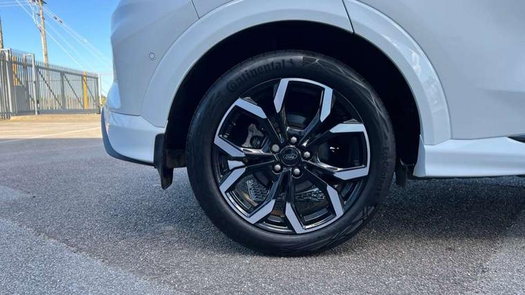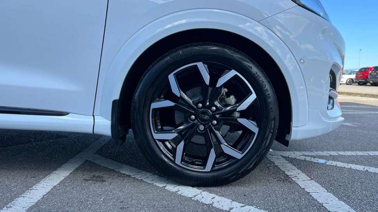 Driver impairment monitor, Emergency call service, Ford easy fuel, Full digital 12.3" instrument cluster, Lane keeping aid with lane departure warning, Power assist steering, Power start button, Rear parking sensor, Selectable drive modes(Normal, Eco, Sport, Slippery and Trail), Speed sign recognition, Sport suspension, Automatic headlights with auto high beam, Automatic rain sensing wipers, Front fog lamps, LED daytime running lights, LED rear lamps, Power foldable heated door mirrors with puddle lamps, Privacy glass to side rear windows and tailgate glass, Quickclear heated windscreen, Rear side wing doors, Rear wiper, ST-Line body styling kit with unique grille, Third brake light, 3 seat bench in 2nd row, Centre console with armrest and stowage, Ford megabox extended bootspace, Front and rear head restraints, Front floor mats, Manual 4 way driver seat adjust with lumbar adjustment, Manual 4 way passenger seat with lumbar seat adjustment, Sensico partial premium upholstery, Single front passenger seat, ST-Line flat bottomed sensico leather steering wheel with leather handbrake and aluminium gear knob, Wireless charging pad with electronic air temperature control (EATC), B&O Premium Audio system + Ford SYNC 3 navigation pack - Puma, 3 rear seatbelts, Child safety lock, Electronic stability control (ESC) and hill start assist, Pedestrian/cyclist detection & post-collision braking, Pre collision assist system, Tyre pressure monitoring system (TPMS), Thatcham alarm, Carbon look interior deco spears,