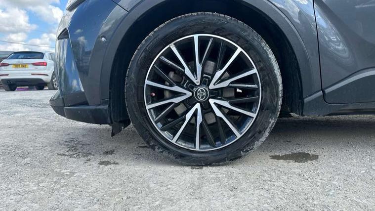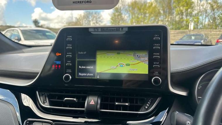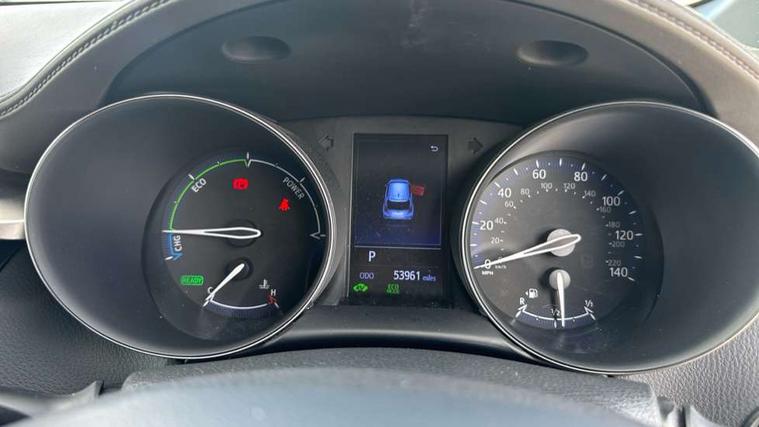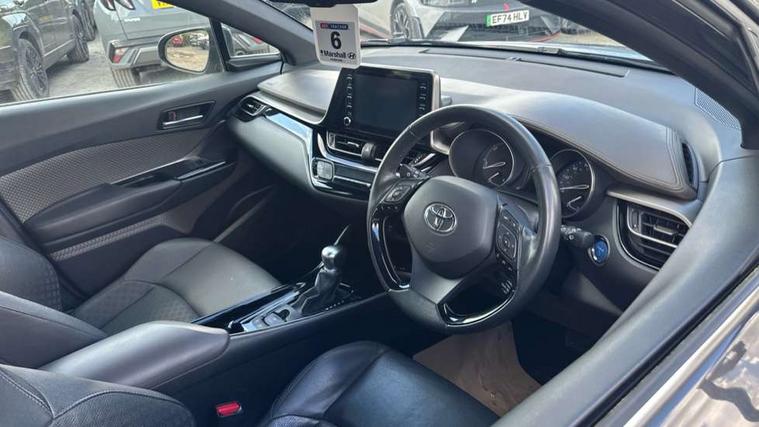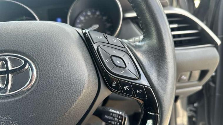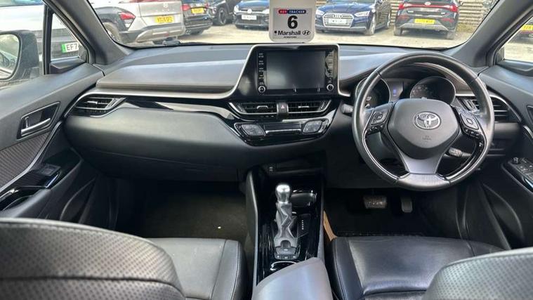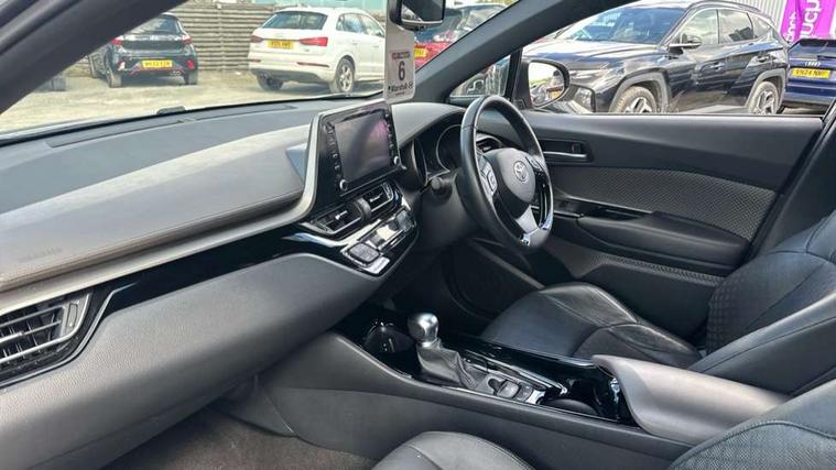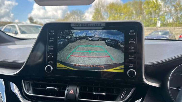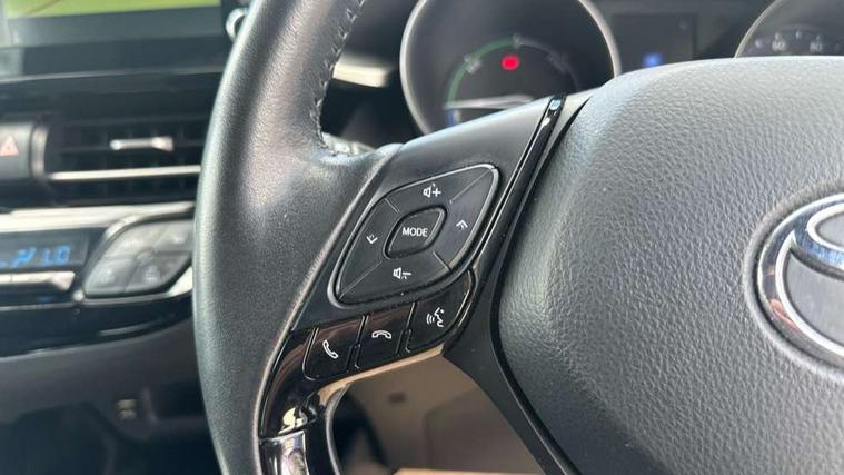 4.2" coloured TFT screen for multi-information display, Adaptive cruise control, Bluetooth connectivity, Electric power steering, Hybrid system indicator, Lane departure alert with steering control, Remote boot door release in cabin, Remote boot door release in key, Reversing camera, Road sign assist - RSA, Simple Intelligent parking assist, Touch 2 Go navigation system, Trip computer, Voice recognition, Vehicle Stability Control (VSC), 6 speakers, Aux connectors + 12V front outlet, DAB Radio (Digital Audio Broadcasting), Toyota touch 2 multimedia system with 8" display, USB connector integrated with radio and CD player, Wi-fi connectivity, Adaptive front light system, Adaptive LED Headlights, Anti-jam protection on power windows, Auto high beam, Auto up and down function on all power windows, Automatic headlight levelling, Automatic headlights, Automatic headlights cut-off, Black and body coloured rear bumper, Black front bumper, Black upper front grille, Body colour door handles, Body colour door mirrors, Boot door release with push button, Electric heated door mirrors, Follow me home headlights, Front and rear power windows, Front spoiler, Honeycomb lower front grille, LED daytime running lights, LED fog lights, LED front light guide, LED High mounted stop light, LED rear brake lights, LED rear combination lights, Noise reduction layer on front windows and windscreen, Power adjustable door mirrors, Privacy glass, Rear spoiler, Rear tailgate, Rear window defogger, Rear window wiper, Shark fin antenna, UV-filter on driver and passenger windows, UV-filter on rear windows, 12v power outlet - front, 3 rear headrests, 3 spoke leather steering wheel, 60/40 split folding rear seat, Adjustable rear headrests, Adjustable speed limiter switch on steering wheel, Assist grips front and centre pillar, Audio and telephone switches on steering wheel, Black front door assist grips, Blue ambient lighting on front cup holders, Blue ambient lighting on front doors, Boot light, Chrome interior door handles, Driver and front passenger personal light, Driver and front passenger Whiplash Injury Lessening seats, Driver and passenger seatback pockets, Dual zone automatic air conditioning, Front cupholders, Front head restraints, Front sports seats, Glovebox with internal light, Hard tonneau cover, Heated driver and front passenger seats, Heated steering wheel, Hooks for luggage holding net, Humidifying Nanoe air purifier, Illuminated entry system, Isofix attachments on rear seats, Leather gearshift, Light on driver sun visor, Light on passenger sun visor, Manual telescopic steering wheel, Manual tilt steering wheel, Microphone on front personal light, Mirror on driver sun visor, Mirror on passenger sun visor, Multimedia switches on steering wheel, Pollen filter, Power adjustable lumbar support on driver seat, Power tilting cushion on driver seat, Shopping bag hooks, Slow opening on lower glovebox, Voice recognition switch on steering wheel, Leather pack - C-HR, Tech with parking sensor pack - C-HR, 16 Disk front wheel brake, 3x3 point rear seatbelts, ABS+EBD+Brake assist, Electronic parking brake, ESP + traction control, Front and rear seatbelt reminder, Front passenger airbag on/off switch, Hill start assist control (HAC), Pre collision system with pedestrian detection, Pre-tensioners and force limiters, Rear door child safety locks, SRS Airbags - Driver + Front passenger, front side, front and rear curtain and driver's knee airbags, Toyota safety sense, Tyre pressure monitoring system, Glass-breaking alarm sensors, Immobiliser, Intrusion alarm, Intrusion sensor, Motion sensor alarm, Power door locks, Power passenger window lock, Remote central locking, Remote door lock, Black lower dashboard, Black lower driver dashboard, Dark brown upper dashboard, Piano black console, Silver deco line on upper dashboard, Tyre repair kit,