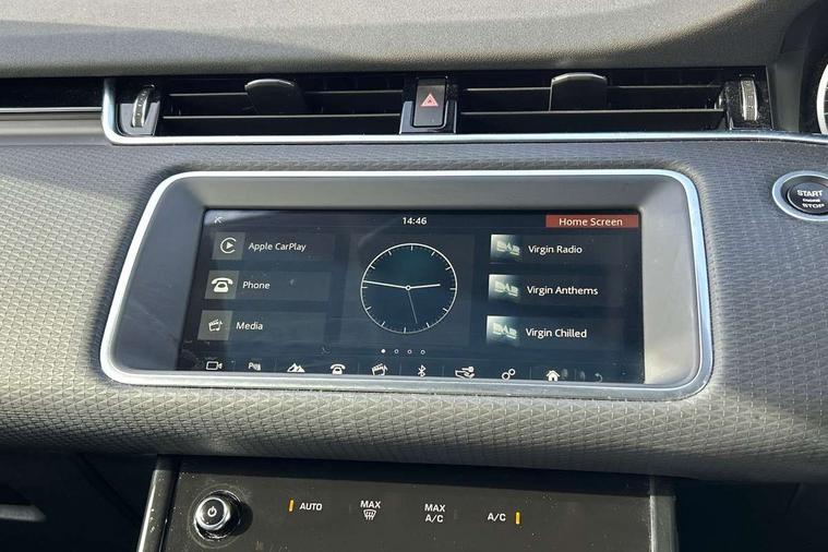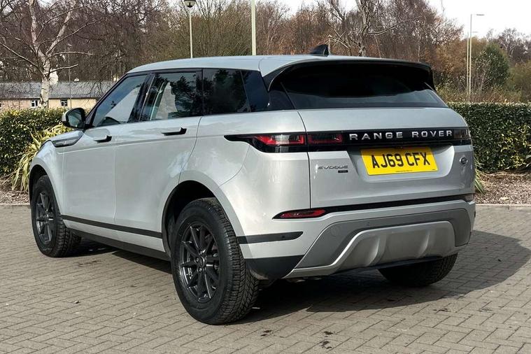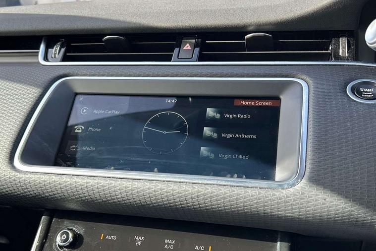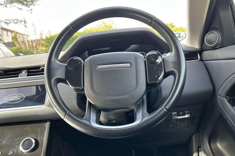 Android Auto, Apple car play, Bluetooth connectivity, Brake pad wear indicator warning light, Driver condition monitor, Electronic power assisted steering (EPAS), InControl remote, Land Rover InControl apps, Lane keep assist, Push button starter, Voice control system, All terrain progress control, Efficient Driveline, Passive suspension, Terrain Response 2 Auto, Digital Audio Broadcast radio-DAB, Steering wheel mounted controls, Electric windows with one touch open/close and anti trap, Evoque badge, Flush deployable exterior door handles, Heated rear window with timer, Heated washer jets, Heated windscreen, Rain sensing windscreen wipers, Rear fog lights, Tailgate spoiler, 40:20:40 split folding rear seats, Isofix system on outer rear seats, Overhead lighting console, Overhead stowage for sunglasses, Passive front head restraints, Rear air vents, Rear centre headrest, Sunvisors with illuminated vanity mirrors, Twin front cupholders with cover, Twin sliding front centre armrest, 3 rear 3 point seatbelts, Anti-lock braking system (ABS), Customer configurable autolock, DSC - Dynamic Stability Control, Electronic brake force distribution, Electronic parking brake, Electronic traction control, Front and rear seatbelt reminder, Hill descent control, Hill launch assist, Low traction launch, Power operated child locks, Roll stability control, Six airbags - Driver and passenger airbags/driver knee airbag/front side airbag and curtain airbags, Torque vectoring brake, Tyre pressure monitoring system, Alarm, Immobiliser, Intrusion sensor, Locking wheel nuts,