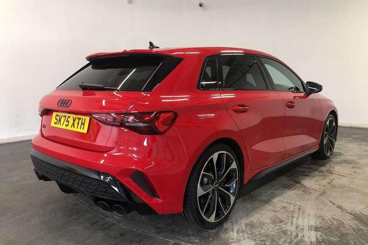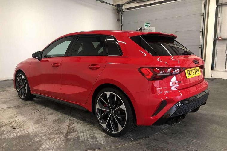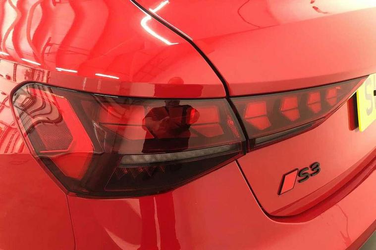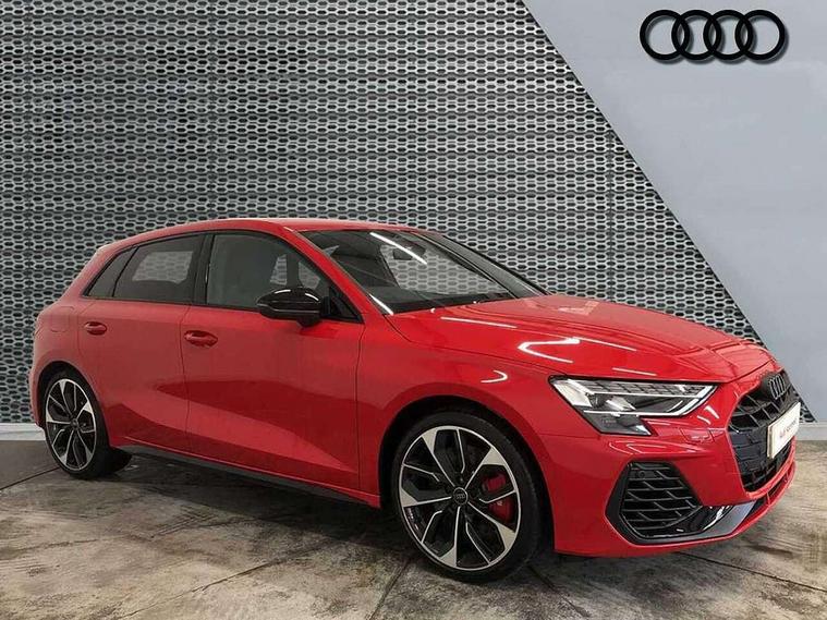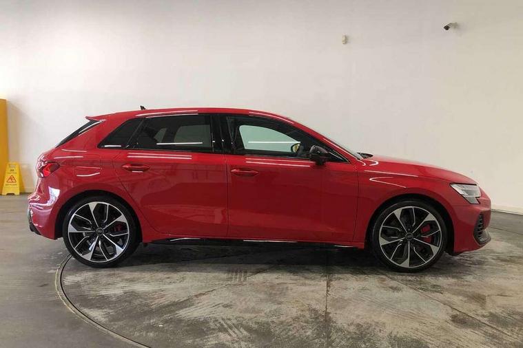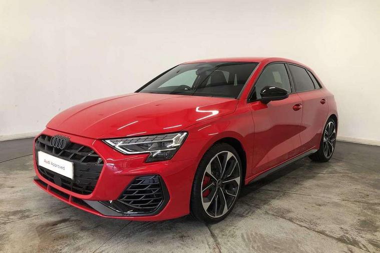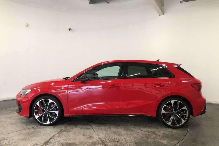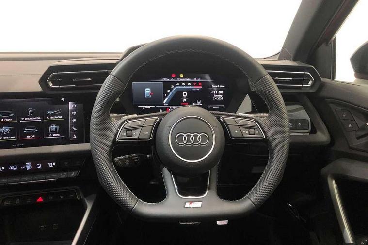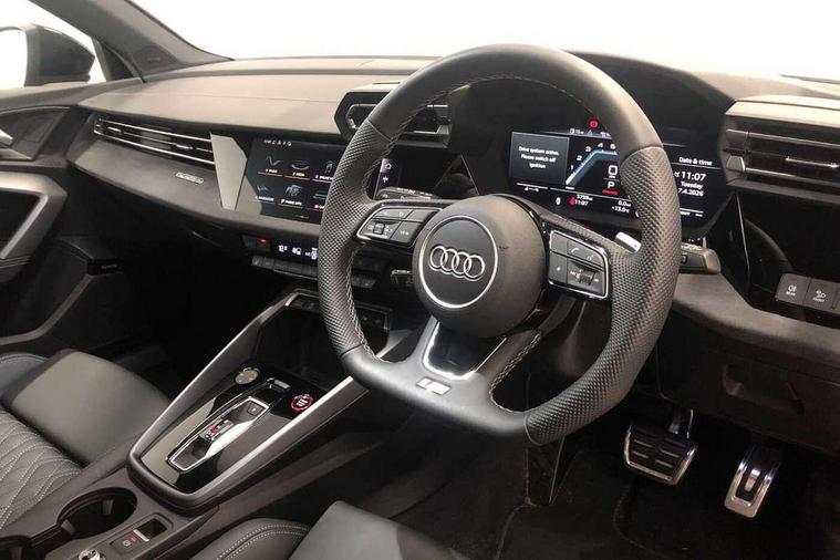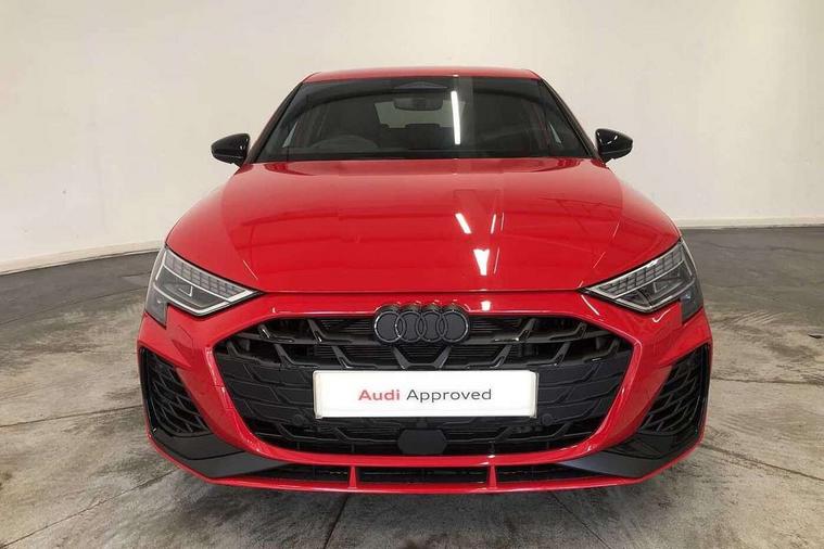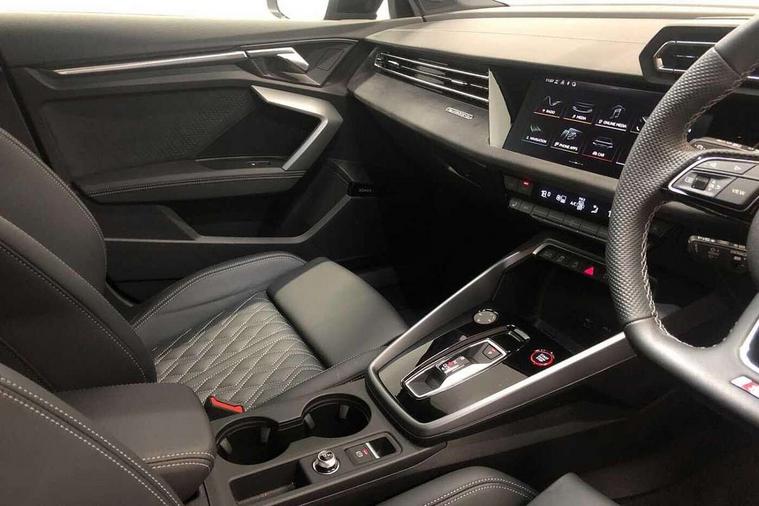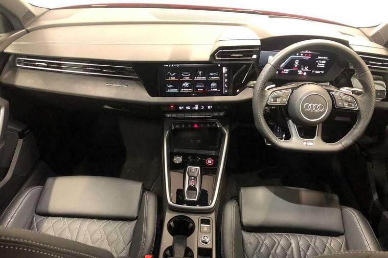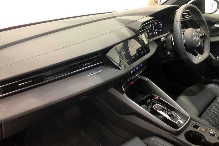Adaptive cruise control (ACC), Adjustable speed limiter, Audi drive select (Auto, Comfort, Dynamic, Efficiency and Individual), Audi virtual cockpit plus - 12.3" full HD resolution dynamic digital instrument cluster, Automatic start/stop system with recuperation, Bluetooth interface, Camera based traffic sign recognition, Collision avoidance assistant, Driver attention and fatigue detection, e-Call (emergency call), Emergency assist, Intersection assist, Lane departure warning system, MMI Navigation Plus with high resolution 10.1" colour touch screen display, Park Assist with parking system Plus, Progressive steering, Reversing camera, Service indicator, Smartphone interface with app store includes wireless Apple carplay, Android auto and Amazon alexa integration, Trip computer, Voice control system with natural language interaction, quattro permanent all-wheel drive with torque splitter, S sport suspension with spring damper adjustment and lowering by 15mm, Audi Phonebox light with wireless charging, DAB Digital radio, USB ports with charging function in the rear, Anthracite grey Audi rings (front and rear), Audi Beam uses LEDs to project the rhombus S logo onto the ground as you exit your S3, Auto dimming frameless rear view mirror, Black accents front and rear bumpers including air inlets, Black accents in front grille and frame, Black accents in window trims, Electrically adjustable/heated/folding/auto dimming door mirrors with integrated LED indications + kerb view function for passenger side, Exterior model badging, Front and rear side air inlets in grained matt black with dark liquid chrome frame, Front electric windows, Front radiator grill in high gloss dark chrome, Heat insulating glass windscreen, Illuminated door sills with aluminium inserts at the front with S logo, LED 3rd brake light, Light and rain sensors, Privacy glass - dark tinted rear window, rear door and side windows, Rear diffuser and grill in grained matt black with inlay in dark liquid chrome, Rear electric windows, Rear side wing doors, Rear wiper, S grille, S3 front bumper with S specific air intake grilles, S3 roof spoiler, Side sill trim in dark liquid chrome, 12V socket and storage compartment in front centre console, 3 seat bench in 2nd row, 3 spoke flat bottomed leather multifunction sport steering wheel with gear shift paddles, 3-zone deluxe automatic air conditioning, 4 way electrically adjustable lumbar support for driver and front passenger, 40/20/40 split folding rear seat bench, Black cloth headlining, Black front and rear floor mats, Fine Nappa leather upholstery with front sports seats S embossed logo, Front and rear centre armrest in artificial leather with contrasting stitching on armrests and instrument panel, Front and rear headrests, Heated front seats, Height and reach adjustable steering wheel, i-Size child seat mounting on the front passenger side and outer rear seats, i-Size and top tether on the outer rear seats, Manual boot compartment lid, Manually adjustable front seats, Rear centre armrest with cupholder, S badging on the steering wheel, Seat side bolsters, Single front passenger seat, Stainless steel pedals and front footrest in black, Aluminium interior elements pack - A3, Storage package - A3, Technology pack with Matrix LED headlights - A3, 3x3 point rear seat belts, Driver and front passenger airbag with passenger airbag deactivation, Electronic Stabilisation Control (ESC) including ABS, ASR and EDL, First aid kit with warning triangle and 2 safety vests, Front side airbags with head airbags and interaction airbag, Hill hold assist, Pre-sense front with pedestrian and cyclist detection, Seatbelt monitoring, Tyre pressure loss indicator, Anti theft alarm, Anti-theft wheel bolts, Electronically operated child locks, Immobiliser, Black dashboard, Tyre repair kit,
