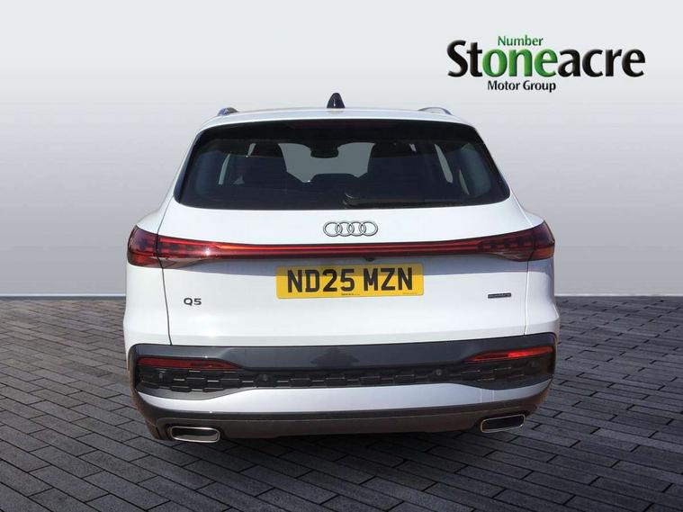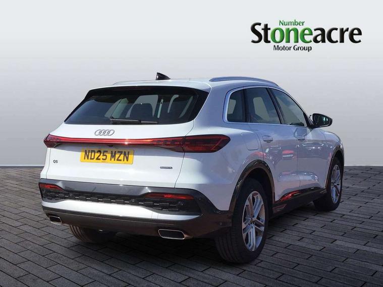 Adaptive cruise control, Advanced driver attention alert, Audi application store, Audi connect emergency call and service, Audi drive select, Audi smartphone interface, Audi virtual cockpit plus with 11.9" OLED colour display, Camera based traffic sign recognition, Fatigue monitor, Front cross traffic intersection assist, Lane departure warning system, MMI navigation plus with high resolution 14.5" OLED touchscreen colour display, Park assist plus, Parking system plus with 360 display, PAS, Reversing camera, Swerve assist and turn assist, Traffic sign based speed limiter, Comfort suspension, 2 USB-C ports in both the front and rear, Audi sound system impressive sound with 8 loudspeakers including centre speaker and subwoofer, 6-channel amplifier with a total output of 180 watts, DAB Digital radio, Smartphone compartment with wireless charging, Aluminium roof rails, Auto dimming rear view mirror, Body coloured door mirrors, Coming/leaving home lighting function, Contrast bumpers in Volcano grey metallic paint finish, Electrically adjustable heated and folding + automatically dimming exterior mirrors, Front and rear electric windows, Front door sill trims with aluminium inlays, illuminated, Headlight cleaning system, Heated rear window, High beam assist, High gloss window surrounds, LED headlights plus incl. digital DRL, dynamic coming and leaving home function with turning/all weather/motorway/manouevring and intersection lights, LED rear lights pro incl. dynamic rear indicators and illuminated light strip with animated coming and leaving home function, LED third brake light, Logo projection light in exterior mirrors, Rear and side windows with heat insulating glass, Rear side wing doors, Rear wash/wipe, Towbar preparation, Windscreen with acoustic glazing, 3 rear head restraints, 3 seat bench in 2nd row, 40:20:40 split folding rear seat bench with centre armrest and cup holders, Comfort centre armrest front, Deluxe 3 zone electronic climate control, Front and rear floor mats, Front seats with manual adjustment for position and 4-way electric lumbar support, Front sport seats with integrated head restraints, Heated front seats, i-Size child seat mounting on the front passenger side and outer rear seats, i-Size and top tether on the outer rear seats, Interior trim in aluminium look, Luggage compartment lid, electrically opening and closing, Manual steering column adjustment, Rock grey cloth headlining, Single front passenger seat, Softwrap in leatherette, Twin leather upholstery, Twin spoke leather steering wheel with multi-function buttons with touch control, shift paddles and trim in chrome look, Ambient lighting package plus - Q5, 3x3 point rear seatbelts, ABS, Acoustic vehicle alerting system, Driver and front passenger airbag with passenger airbag deactivation, Electric child safety locks, First aid kit with warning triangle and high visibility vests, Front emergency brake assist, Front side airbags with head airbag system and front interaction airbag, Hill hold assist, Rear seat occupant reminder, Tyre pressure loss indicator, Anti theft alarm, Anti-theft wheel bolts, Remote control key with SAFELOCK and keyless go, Accent surfaces and control buttons in gloss black, Black dashboard with contrast stitching, Matt brushed aluminium inlays, Steel grey seat stitching, Upper and lower interior elements in artificial leather, Tyre repair kit,