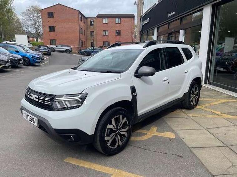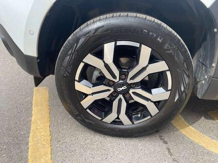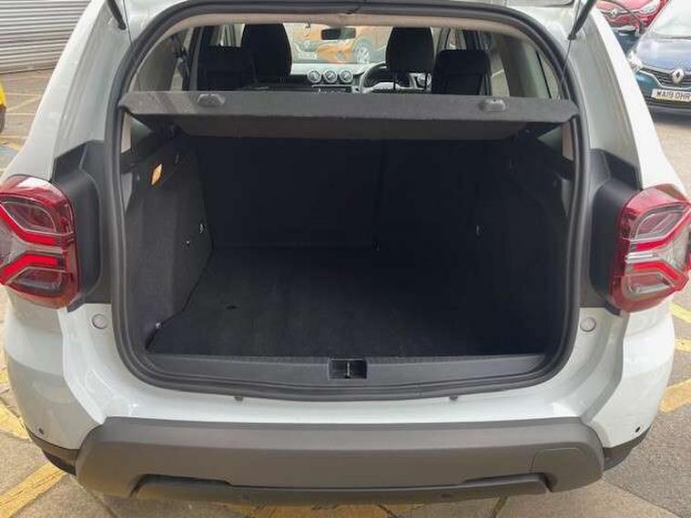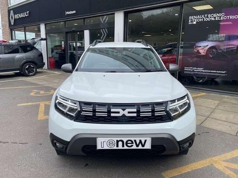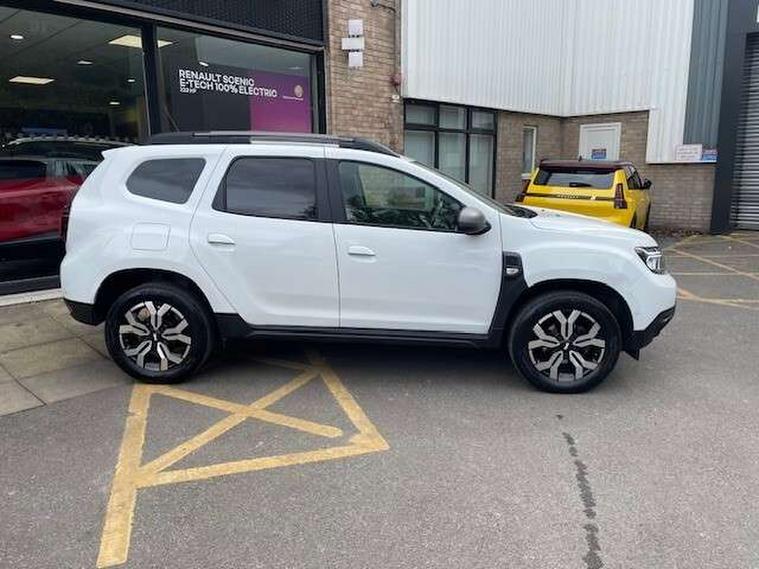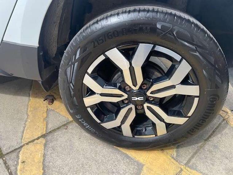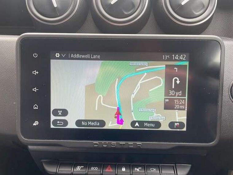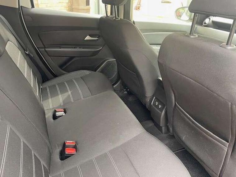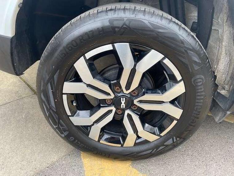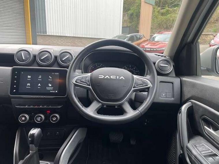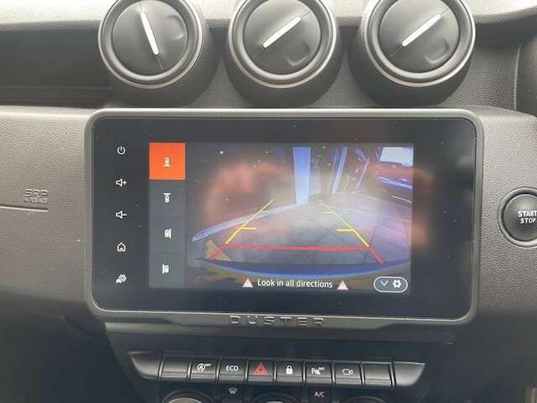 Blind spot warning, Cruise control and speed limiter, eCall emergency system, Eco mode, Electric power assisted steering, Multi view camera, On board computer, odometer, trip computer, average fuel consumption, average speed, service indicator, outside temperature gauge, Rear parking sensors, Rev counter, Reversing camera, Stop/start system, 8" Media Navigation with wireless smartphone replication, Dacia plug and radio/MP3/USB/bluetooth/DAB/steering wheel control, 3 speed windscreen wipers, Acoustic windshield, Automatic front wipers, Black side sills, Black/satin chrome tailgate trim with Duster inscription in black background and lettering, Body coloured door handles, Chrome front grille with hot stamping, Chrome logo surround on steering wheel, Dark glass on lateral rear windows, Daytime running lights, Drivers window one touch up/down, Dusk sensor, Electric adjustable/heated door mirrors, Electric folding door mirrors, Electric front windows, Electric rear windows, Front and rear body coloured bumpers, Front door sill protection strip, Front fog lights, Grey quartz longitudinal roof bars with Duster inscription, Heated rear window, High level third rear brake light, Modular roof bars, Rain sensor, Rear side wing doors, Rear spoiler, Rear wash/wipe, Satin chrome door mirrors, Underbody protection skid plates, Y shaped LED headlights with rear LED lights, 3 rear height adjustable headrests, 3 seat bench in 2nd row, 60/40 split folding rear seat, Automatic air conditioning, Backlighted steering wheel buttons, Boot light, Driver seat lumbar adjustment, Fabric decorative insert on door panels, Fabric upholstery, Front head restraints, Front passenger reading light, Gear shift indicator, Glovebox light, Heated seats, Height adjustable driver seat, Height adjustable front and rear headrests, Height and depth adjustable steering wheel, High centre console with driver armrest, Isofix points for child seats in both outer rear seats, Map pocket on front seat backs, Passenger sunvisor with vanity mirror, Rear passenger reading light, Satin chrome gear lever cap insert, Satin chrome interior door handles, Satin chrome lower steering wheel insert, Single front passenger seat, Soft feel leather steering wheel, 3x3 point rear seatbelts, ABS and Emergency brake assist, ASR traction control with Electronic stability control, Child locks on rear doors, Door open visual and audible warning, Driver airbag, Driver and passenger seatbelt not fastened - visual and audible warning, EBD - Electronic brakeforce distribution, Front passenger airbag, Front passenger airbag deactivation, Front seatbelt pretensioners, Front side airbags, Height adjustable front seatbelts, Hill start assist, Tyre pressure monitor, Keyless entry, Remote central locking, Thatcham approved engine immobiliser, Charcoal grey central console surround, Matt black central console fascia, Matt black decorative insert on rear door panels, Piano black decorative insert on front door panels, Satin chrome air vent surround, Satin chrome instrument dial surrounds, 17" Alloy wheels,