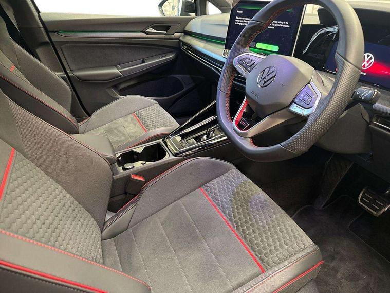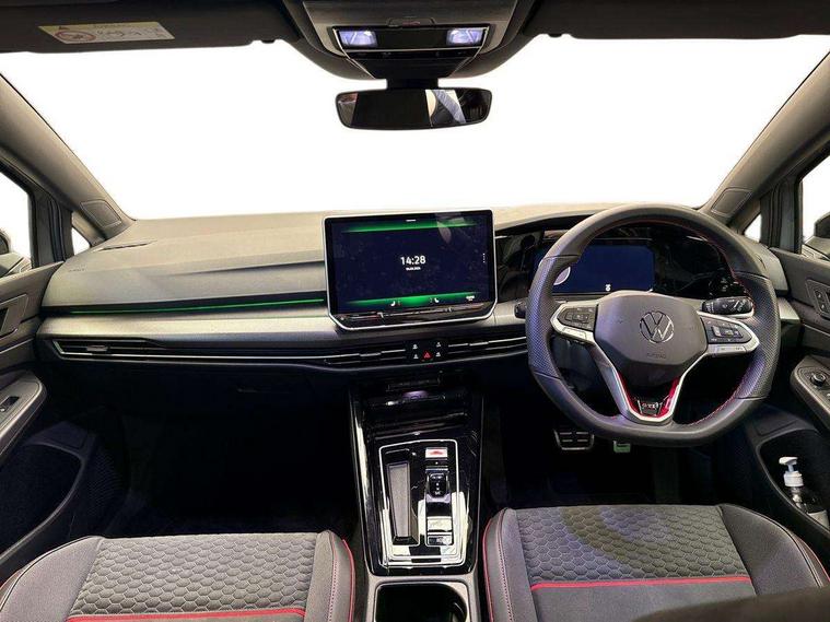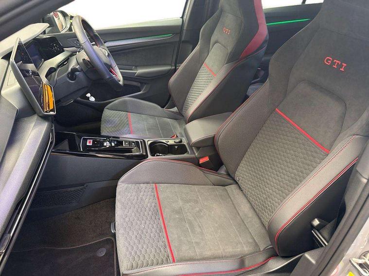 Activated carbon canister, Adaptive cruise control (ACC), Advanced driver attention and drowsiness monitor, Dynamic road sign display, E-Sim card for online connectivity, eCall emergency call system, Multi-color Digital cockpit pro, selection of different info profile possible, Multifunction front facing camera for distance control, Navigation system, Oncoming vehicle braking when turning including swerve support, Side assist blind spot lane change system, rear traffic alert and exit warning system, Speed limiter, Speedo, rev counter, electronic odometer, trip, service interval display, exterior temperature and fuel gauge, Traffic jam assist, Voice enhancer and voice control, Warning signal and warning light for front and rear seatbelts not fastened, We connect plus preparation, We connect preparation, Wireless app connect, Front differential lock, Petrol Particulate Filter, Start-stop system with battery regeneration (recuperation - energy recovery during braking), 2 USB C ports in front, 2 USB charging sockets on the centre console in the rear charging capacity upto 45W, Digital radio reception (DAB), Diversity antenna for FM reception, Gaming platform via car app, Infotainment system with 12.9" display, Mobile phone interface with inductive charging feature, 3rd brake light, Auto dimming rear view mirror, Automatic headlamp activation with Coming home and Leaving home feature, Body colour door handles, Bumpers in "Clubsport", air intake in honeycomb structure, Exterior mirrors convex on the left and aspherical on the right, Front and rear electric windows, Front fog lamps and cornering light, Heat insulating windshield made of laminated glass, Illuminated lighting animation with wake up/goodbye scenario, LED separate daytime running light, Nameplate 'GTI' set, Rain sensor, Rear fog light on one side and reversing lights on both sides, Rear side wing doors, Rear windscreen washer and wiper with interval delay, Remote electrically foldable door mirrors, puddle lights and reverse activated passenger's door mirror, Welcome light with surround lighting, 12V socket in front centre console, 12V socket in luggage compartment, 3 rear head restraints, 3 seat bench in 2nd row, 30 colour ambient lighting, illuminated center console storage compartment in front, Air care climatronic 3 Zone automatic climate control with rear air conditioning control panel, Aluminium gearshift handle, Brushed stainless steel pedals, Chrome plated radiator grille inserts, air vent surrounds and light switch surrounds, Entry lights, Front + rear black carpet mats, Front centre armrest, ISOFIX anchors for child seats on outer rear bench seats and on front passanger seat compatible for i-Size, Luggage compartment lighting, Rear cupholder and loadthough, Single front passenger seat, Soul black instrument panel, Soul black roof lining, Split folding backrest with centre armrest and unsplit rear seat bench, Sun visors with illuminated vanity mirrors, Driver assistance pack - Golf Estate/Hatchback Auto, Technology park and comfort pro package - Golf Hatchback, 3 point height adj front seatbelts + pretensioners, 3 rear three point seatbelts, ABS, Autonomous emergency braking front assist with pedestrian and cyclist monitoring, Child locks on rear doors, Driver and front passenger airbag with front passenger airbag deactivation, Electronic parking brake with auto hold, ESC (Electronic Stability Control), Extended pedestrian protection measures, Front red brake calipers with GTI logo, Hill start assist, Rear disc brakes, Two tone horn, Tyre pressure loss indicator, Volkswagen roadside assistance, Anti theft wheel bolts, Preparation for alcohol interlock, Decorative inserts carbon grey for dashboard and front door trim panels, Sporty vehicle dynamics, Tool kit for tyre mobility set, Tyre mobility kit Includes 12V compressor and tyre sealant,