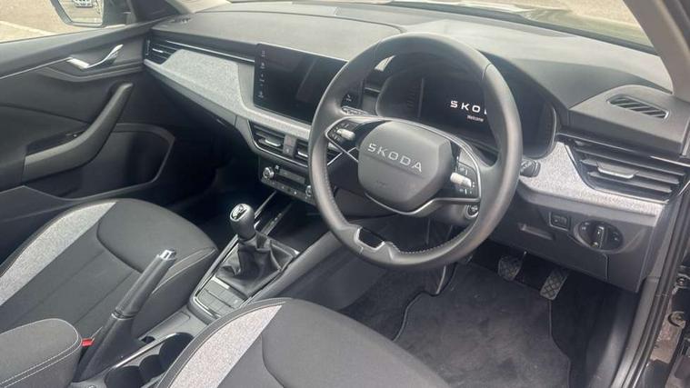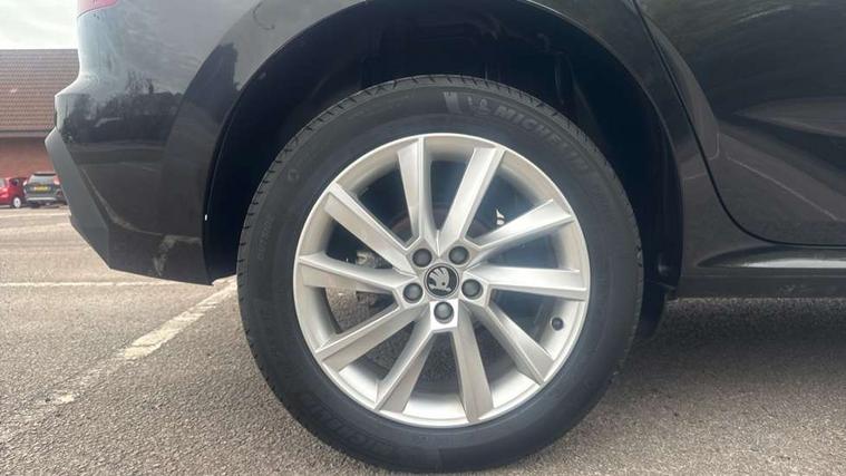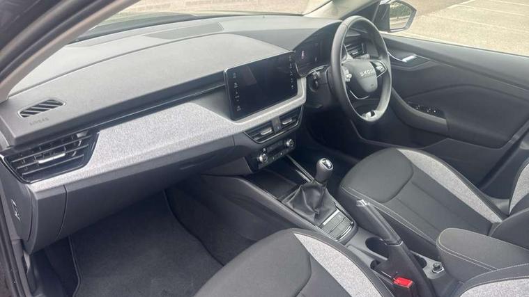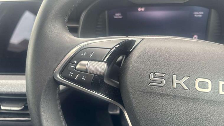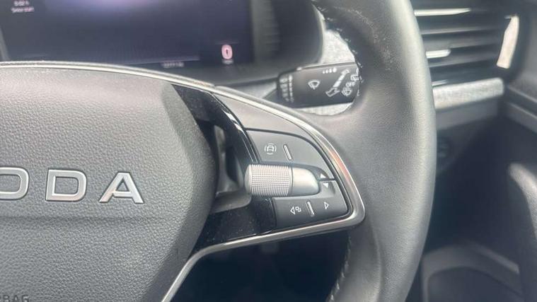 Advanced driver attention and drowsiness monitor, Bluetooth system, E-call, Front assist system, PAS, Rear parking sensors, Rear view camera, Service indicator, Speed limiter, Traffic sign recognition, Virtual cockpit with 10.25" display, Voice control system, Wireless smartlink, 4 USB C ports, 8 Speakers, 9.2" Skoda navigation display, DAB Digital radio, Auto dimming rear view mirror, Automatic headlight control with coming home and leaving home feature, Black roof rails, Body colour bumpers, Body colour door mirrors and handles, Chrome grille surround, Front and rear electric windows, Full LED headlights, Heated rear window, LED brake lights, LED daytime running lights, LED front turning lights, LED high beam, LED low beam, LED third brake light, Rear LED fog light, Rear side wing doors, Rear wiper, Ticket holder inside windscreen, 12V socket in luggage compartment, 3 seat bench in 2nd row, Black hotstamping, Cargo elements, Chrome inner door handles, Driver and passenger sun visors with vanity mirror, Dual zone climate control, Front and rear roof lights, Front centre armrest, Front head restraints, Glove compartment with illumination, Height adjustable driver seat, Height adjustable front passenger seat, Ice scraper, Inner circulation control with pollen filter, ISOFIX on front passenger seat, Isofix preparation for back seats, Krepp recycled decor inserts, Leather gearknob and handbrake lever, Loft cloth upholstery, Manual lumbar support for front seats, Net package and top tether hooks in boot space, Net under rear shelf, Overhead glasses storage compartment, Pocket on the back of both front seats include mobile phone pockets, Rake/reach adjustable steering wheel, Reading lights, Satin black door inserts, Single front passenger seat, Textile floor mats, Third rear headrest, Top tether for front passenger seat, Umbrella in driver's door, 3x3 point rear seatbelts, Airbags - driver and front passenger, Disc brakes, ESP, Extended and predictive pedestrian/cyclist protection, Front passenger airbag deactivation switch, Front side airbags with curtain airbags, Hill hold control, Manual leather parking brake, Manual rear child locks, One tone horn, Seatbelt reminder for driver an co-driver, Traction control, Tyre pressure monitor, Anti-theft alarm system with interior monitoring, backup horn, towing protection and remote central locking with SAFE system, Anti-theft wheel bolts, Electronic engine immobilizer,