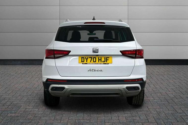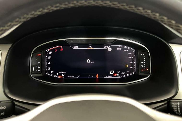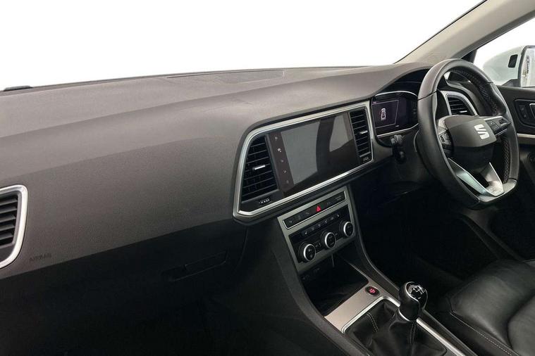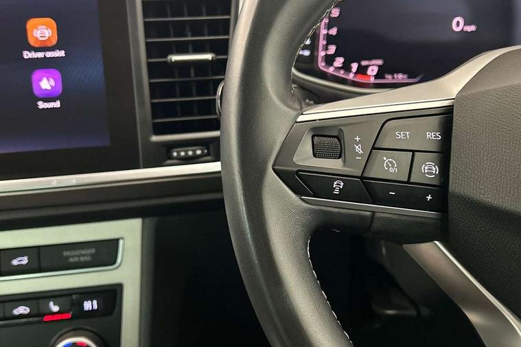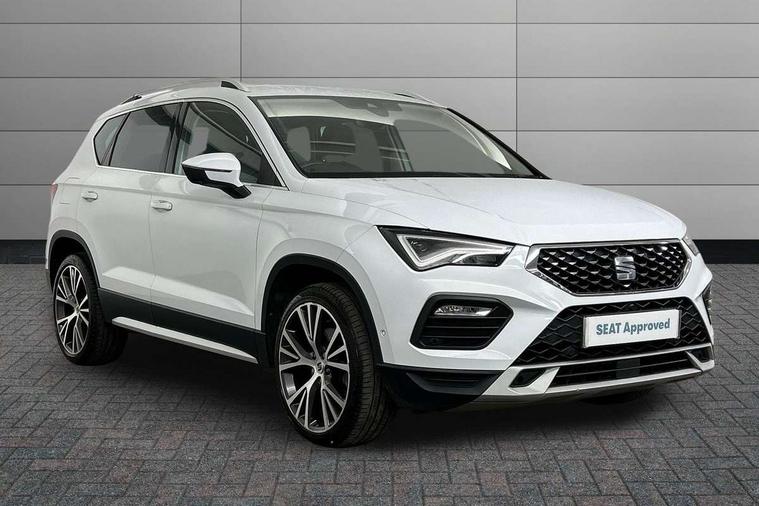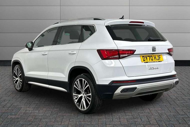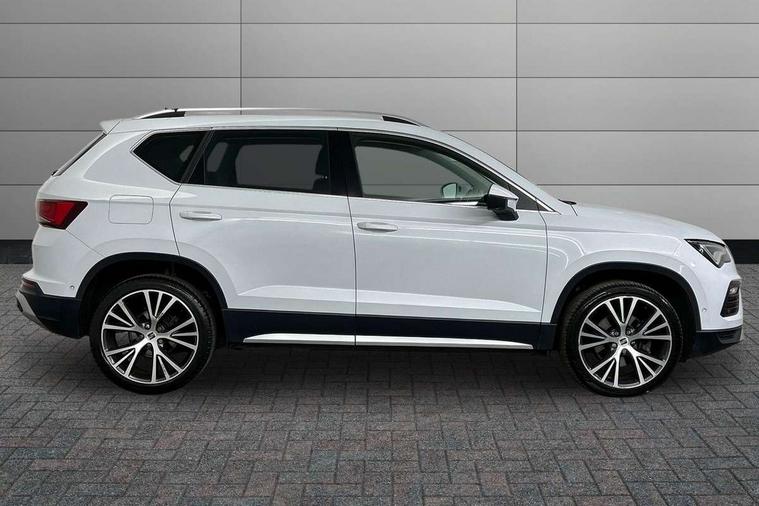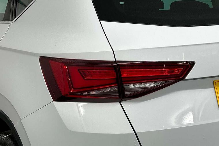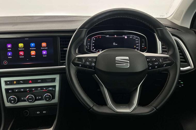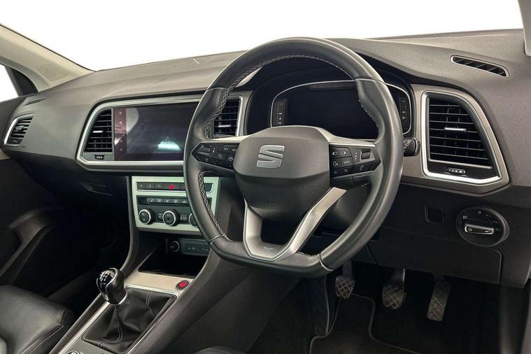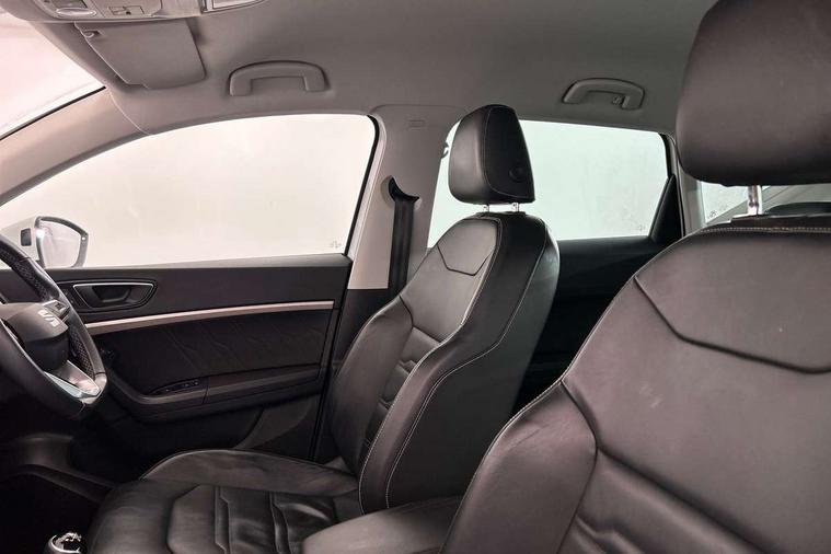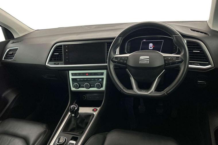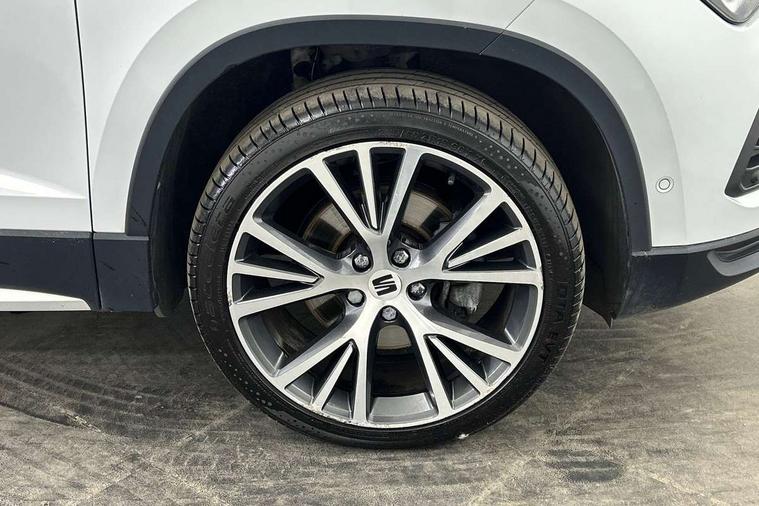 Digital cockpit, Electric tailgate with virtual pedal, Outside temperature gauge, Progressive power assisted steering, Rear view camera, SEAT drive profile with driving experience button - Normal, Sport, Eco and Individual mode, steering and throttle response, Self parking functionality (includes front and rear parking sensors), Side and exit assist, Top view camera, Trip computer, Wireless full link smartphone integration, Wireless phone charger, Steering wheel mounted audio/phone controls, Black simulated exhaust pipes, Body colour bumpers, Body coloured wheel arch surrounds, Chrome front grille frame, Chrome roof rails, Chrome side window trim, Dark tinted rear windows, Daytime running lights, Door mirrors with welcome light silhouette, Dynamic headlight range control with self adjusting whilst driving, Electric adjustable/heated/folding door mirrors, Front and rear electric windows, Front grille hot stamping, Full LED headlamps with lens and LED front fog lamps with cornering function, Illuminated aluminium front door sill, LED rear tail lights with dynamic indicators, Rear fog lights, Rear wash/wipe, Reflex silver side mouldings, 12V socket in front, 60/40 split folding rear seat, Dual zone climate control, Front and rear head restraints, Front centre armrest, Front seat back storage pockets, Heated front seats, Height adjustable driver and passenger seat with lumbar adjustment, ISOFIX points in outer rear seats with top tether anchorage points, Leather steering wheel and gear knob, Leather upholstery with front sports seats, Multicoloured ambient lighting with LED interior illumination, Rear armrest and easy back seat release mechanism from boot, Storage compartment in roof console for sunglass, Storage compartment under driver's seat, Convenience pack - Ateca, Interior lighting pack - Ateca, Navigation system pack with DAB - Ateca, Safe and driving pack - Ateca, 3x3 point rear seatbelts, ABS, Traction control system (TCS), Electronic stability control (ESC) and Electronic differential lock system (XDS), Airbags - Driver and front passenger airbag with deactivation, front side, two curtain and driver's knee airbags, Electric parking brake with auto hold function, Front and rear seatbelt reminder, Hill hold control, Tiredness recognition system, Traction control, Tyre pressure monitoring system, Alarm, Keyless entry, Locking wheel bolts, Chrome interior detailing, 19" Exclusive machined alloy wheels 36/4 in nuclear grey,