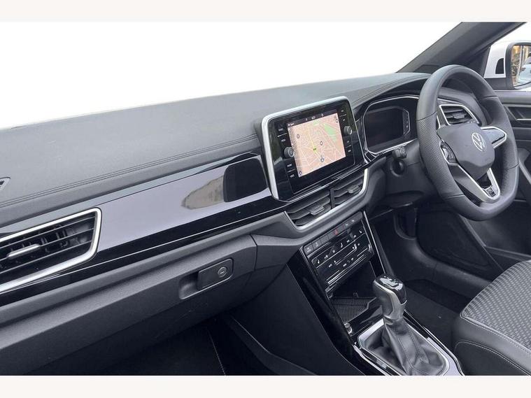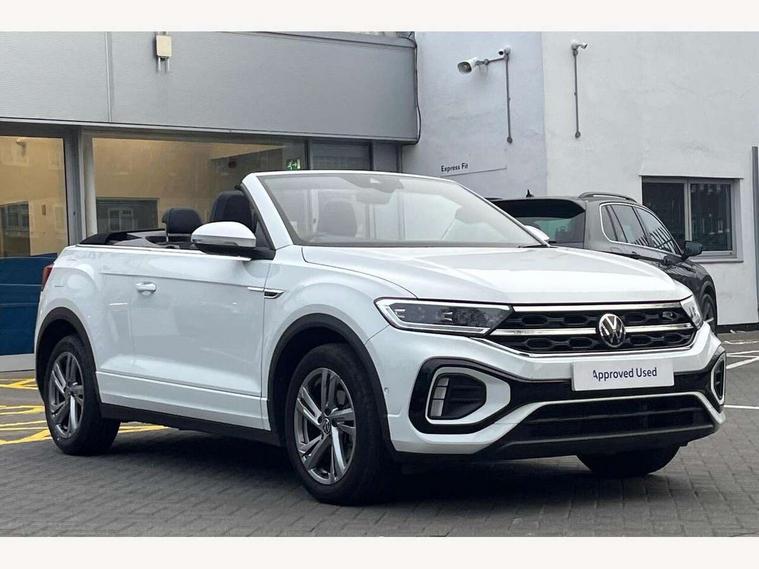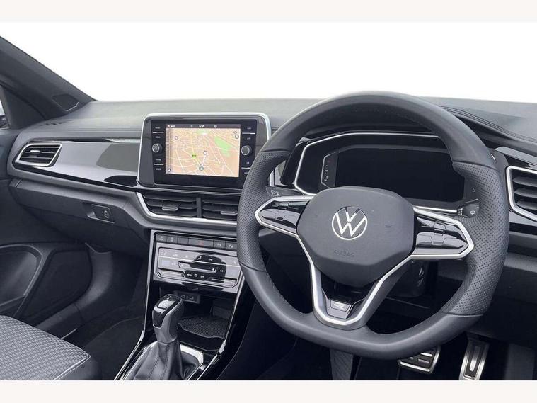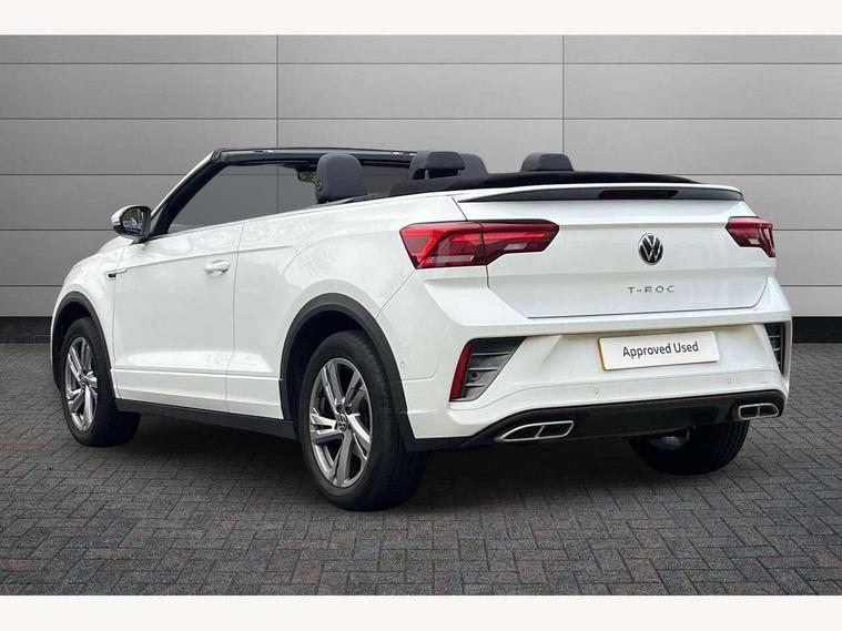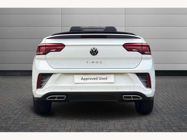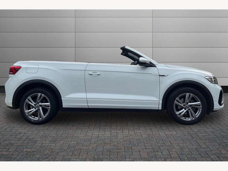 Adaptive cruise control and speed limiter, Bluetooth mobile phone interface, Brake pad wear indicator, Car information display, Digital Cockpit Pro with 10.25" Display, Driver alert system with fatigue detection, Driver tips and journey analysis, Emergency call service, Modified key software - reduce switch off time for key status change to Long no motion, Multifunction computer with visual gear change recommendation for fuel consumption, Multifunction front facing camera, Park assist including front and rear parking sensors, Speedo and rev counter, electronic odometer, trip, service interval display and exterior temperature gauge, Start/stop system with brake energy recovery, Tailgate/trunk lid release from outside, Warning sound and light for front seatbelts unfastened, Diversity antenna for FM reception, Music playback - MP3, WMA and AAC files, SMS functionality - read, compose and send SMS messages using touch-screen display, Title and cover art display, USB-C Interface and USB charging socket, We Connect and We Connect Plus functionality, Ambient lighting with logo projection, Auto dimming interior rear view mirror, Automatic hazard lights activation under emergency braking, Automatic headlight control with LED separate daytime running lights with coming/leaving home function, Black roof, Body colour door handles, Body colour rear spoiler, Chrome effect left and right trapezoid exhaust tailpipe fascia surround, Chrome trim on upper and lower radiator grille, Dark red rear combination lamps in LED technology, Dusk sensor, Exterior mirrors aspherical on driver side, convex on front passenger side, Heat insulating glass windscreen, High level 3rd brake light, LED performance matrix headlights - dynamic range control, dynamic cornering light and turn signal + light mode for rain/fog/snow, LED rear number plate lights, Power operated canvas convertible top, Power windows with comfort operation and circuit breaker, R-Line design body coloured bumpers, Rain sensor, Rear boot, Rear exhaust tailpipe, Rear fog light on one side and reversing lights on both sides, Remote electrically foldable door mirrors, puddle lights and reverse activated passenger door mirror, Volkswagen roundel, Windscreen wiper with intermittent wipe light, Without exterior ambient lighting, 12V socket in centre console storage area, 2 LED front reading lights, 2 seat bench in 2nd row, 50:50 Split folding rear seat backrests with fixed rear seat bench, Air care climatronic air conditoning system with active combination filter and 2-zone temperature control, Black door lower parts with chrome trim, Chrome plated surround to light, mirror and window switch, Door and side trim panel with leatherette insert, Easy entry backrest release, Front and rear carpet mats with black stitching, Front centre armrest, Front cupholders x 2, Front door pockets, Front seat back storage pockets, Front sports comfort seats with manual height adjustment, Heated leather wrapped multi function sports steering wheel with tiptronic, Height/reach adjust steering wheel, Inserts of front seats and outer rear seats in ArtVelours titan black, Instrument lighting, white adjustable panel illumination, Interior light delay, Interior light in footwell, Interior lighting with switch off delay and contact switches on all doors, Interior white ambient lighting and surround lighting, Isofix child seat preparation, Lockable glove compartment with light, Luggage compartment lighting, Power adjustable lumbar support in front, Rear head restraints, Single front passenger seat, Stainless steel pedals, Sun visors with illuminated vanity mirrors, Unique R Line door sill protectors, Driver assistance package - T-Roc cabriolet DSG, 2 x 3-point seatbelts/outer rear seats with ECE label, Driver and front passenger airbag with front passenger airbag deactivation, Driver and front passenger safety-optimised head restraints, Drivers seatbelt reminder, Electronic parking brake, Electronic Stability Control (ESC) including ABS, ASR and EDL, Front and rear disc brakes, Front assist with autonomous emergency braking, Pedestrian monitoring, Predictive pedestrian protection, Rigid safety cell with front and rear crumple zones, Side airbag/thorax airbag system, for front passengers, Single tone horn, Three point height adjust front seatbelts + pretensioners, Tyre pressure loss indicator, Volkswagen roadside assistance, Anti-theft alarm system with interior protection and central locking system with SAFELOCK, radio remote control and 2 remote control folding keys, Electronic engine immobiliser, Trims for alloy wheels,
