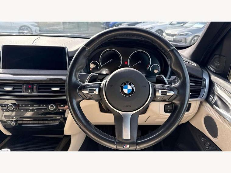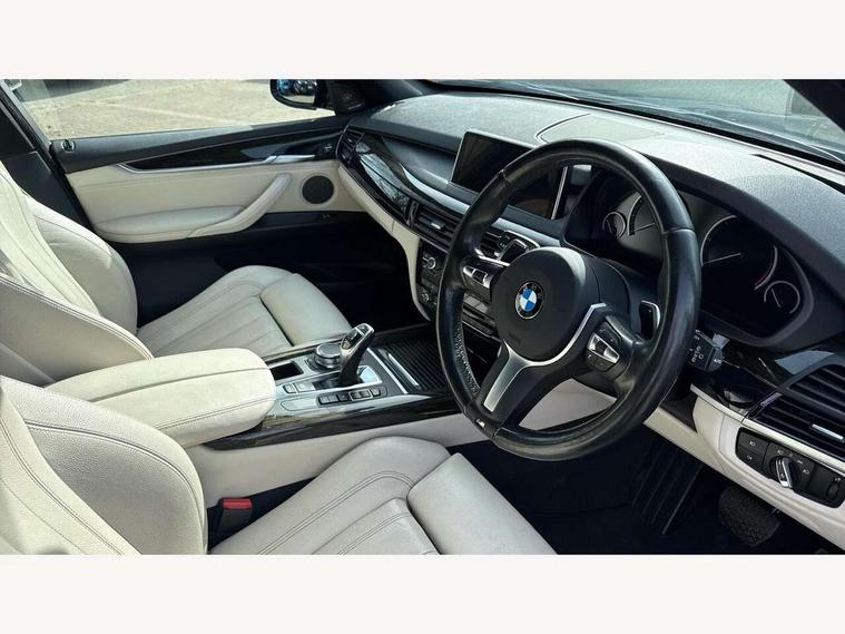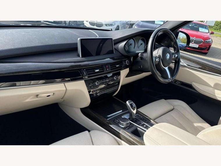 20GB Hard drive, 6.5" colour display screen, BMW online + Apps interface, BMW remote services, BMW Teleservices, Brake force display, Check control system, Lights on warning, On board computer, Outside temperature gauge, Park distance control, Professional multimedia navigation system, Real time traffic information, Remote tailgate release, Service interval indicator, Servotronic PAS, Stop/start button, Voice control system, Adaptive M suspension, Diesel particulate filter, Sport automatic transmission, Auxiliary point for auxiliary devices, BMW professional twin tuner radio with single CD player and MP3 CD playback facility, DAB Digital radio, Auto dimming rear view mirror, Auto upper tailgate release, Body colour bumpers, Body colour door handles, Body colour door mirrors, Chrome exhaust tailpipes, Clear indicator lenses, Door mirror integrated indicators, Double kidney grille with chrome surround and black slats, Downlights in exterior door handles, Electric folding/heated door mirrors + electrochromic on drivers side, Electric front/rear windows with anti-trap, Electric headlight adjustment, Follow me home headlights, Green tinted glass, Headlight washer jets, Heat insulated glass, Heated washer nozzles, Individual door sill finishers, Intermittent rear wash/wipe, M aerodynamic body kit, Rain sensor with auto light activation system, Two piece tailgate, 12V accessory power point in centre console, 12V socket in luggage compartment, 2 individual folding 3rd row seats, 2 x 12V socket in rear centre console, 40:20:40 split folding rear seats, Ambient interior lighting, Anthracite Velour floor mats, Boot lashing points, Electric front seats + driver memory, Front and rear cupholders, Front armrest with storage bin, Front/rear courtesy lights with soft on/off dimming, Front/rear reading lights, Gearshift paddles on steering wheel, Heated front seats, Height adj rear head restraints, Illuminated glovebox with lock, Isofix child seat preparation, LED footwell lights, Luggage compartment cover, M leather steering wheel, Reach + rake adjustable steering column, Securing rings in luggage compartment, Storage bins on all doors, Sunvisors with illuminated vanity mirrors, Tilt/height adjustable front head restraints, Toolkit located in luggage compartment, Extended storage pack - X5, 3 rear 3 point seatbelts, ABS, ADB - Automatic Differential Brake, Automatic Stability Control (ASC), BMW emergency call, Child locks on rear doors, Cornering brake control (CBC), Crash Sensor - activates hazard/interior lighting + unlocks doors, Driver/Front Passenger airbags, DSC - Dynamic Stability Control, Dynamic brake control, Dynamic Traction Control - DTC, Electronic brake force distribution, Electronic parking brake, Front and rear head airbags, Front passenger airbag deactivation, Front passenger seat occupancy sensor, Front side airbags, Height adjustable front seatbelts, Hill start assist, Pyrotechnically pre-tensioned front seatbelts, Tyre pressure monitor, Warning triangle and first aid kit, Locking wheel nuts, Remote central locking, Thatcham cat 1 remote alarm/immobiliser, Run flat tyres,