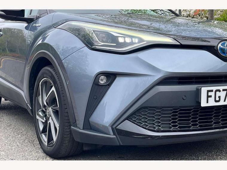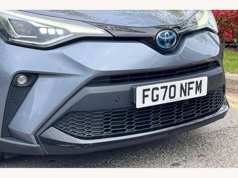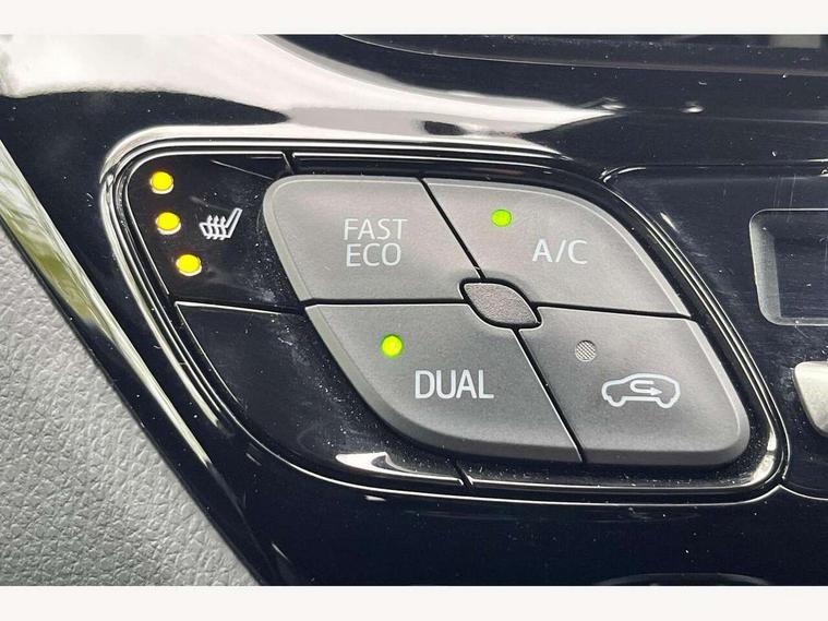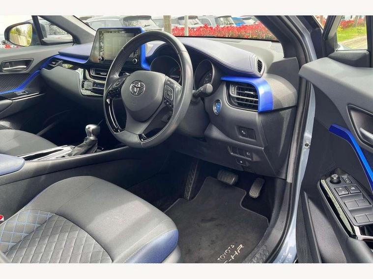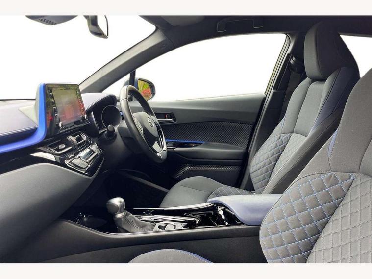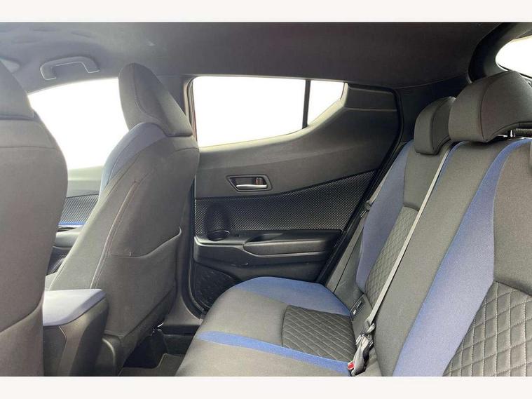4.2" coloured TFT screen for multi-information display, Adaptive cruise control, Bluetooth connectivity, Electric power steering, Hybrid system indicator, Lane departure alert with steering control, Remote boot door release in cabin, Remote boot door release in key, Reversing camera, Road sign assist - RSA, Simple Intelligent parking assist, Touch 2 Go navigation system, Trip computer, Voice recognition, Vehicle Stability Control (VSC), 6 speakers, Aux connectors + 12V front outlet, DAB Radio (Digital Audio Broadcasting), Toyota touch 2 multimedia system with 8" display, USB connector integrated with radio and CD player, Wi-fi connectivity, Adaptive front light system, Adaptive LED Headlights, Anti-jam protection on power windows, Auto high beam, Auto up and down function on all power windows, Automatic headlight levelling, Automatic headlights, Automatic headlights cut-off, Black and body coloured rear bumper, Black front bumper, Black upper front grille, Body colour door handles, Body colour door mirrors, Boot door release with push button, Electric heated door mirrors, Follow me home headlights, Front and rear power windows, Front spoiler, Hard tonneau cover, Honeycomb lower front grille, LED daytime running lights, LED fog lights, LED front light guide, LED High mounted stop light, LED rear brake lights, LED rear combination lights, Noise reduction layer on front windows and windscreen, Power adjustable door mirrors, Privacy glass, Rear spoiler, Rear tailgate, Rear window defogger, Rear window wiper, Shark fin antenna, UV-filter on driver and passenger windows, UV-filter on rear windows, 12v power outlet - front, 3 rear headrests, 3 seat bench in 2nd row, 3 spoke leather steering wheel, 60/40 split folding rear seat, Adjustable rear headrests, Adjustable speed limiter switch on steering wheel, Assist grips front and centre pillar, Audio and telephone switches on steering wheel, Black front door assist grips, Blue ambient lighting on front cup holders, Blue ambient lighting on front doors, Boot light, Chrome interior door handles, Cloth upholstery, Driver and front passenger personal light, Driver and front passenger Whiplash Injury Lessening seats, Driver and passenger seatback pockets, Dual zone automatic air conditioning, Front cupholders, Front head restraints, Front sports seats, Glovebox with internal light, Heated driver and front passenger seats, Hooks for luggage holding net, Humidifying Nanoe air purifier, Illuminated entry system, Isofix attachments on rear seats, Leather gearshift, Light on driver sun visor, Light on passenger sun visor, Manual telescopic steering wheel, Manual tilt steering wheel, Manually adjustable lumbar support on driver seat, Manually height adjustable driver seat, Manually height adjustable front passenger seat, Manually reclining driver seat, Manually reclining front passenger seat, Manually sliding driver seat, Manually sliding front passenger seat, Microphone on front personal light, Mirror on driver sun visor, Mirror on passenger sun visor, Multimedia switches on steering wheel, Pollen filter, Shopping bag hooks, Slow opening on lower glovebox, Voice recognition switch on steering wheel, Tech with parking sensor pack - C-HR, 16 Disk front wheel brake, 3x3 point rear seatbelts, ABS+EBD+Brake assist, Electronic parking brake, ESP + traction control, Front and rear seatbelt reminder, Front passenger airbag on/off switch, Hill start assist control (HAC), Pre collision system with pedestrian detection, Pre-tensioners and force limiters, Rear door child safety locks, SRS Airbags - Driver + Front passenger, front side, front and rear curtain and driver's knee airbags, Toyota safety sense, Tyre pressure monitoring system, Glass-breaking alarm sensors, Immobiliser, Intrusion alarm, Intrusion sensor, Motion sensor alarm, Power door locks, Power passenger window lock, Remote central locking, Remote door lock, Black lower dashboard, Black lower driver dashboard, Blue deco line on upper dashboard, Blue upper dashboard, Piano black console, Tyre repair kit,