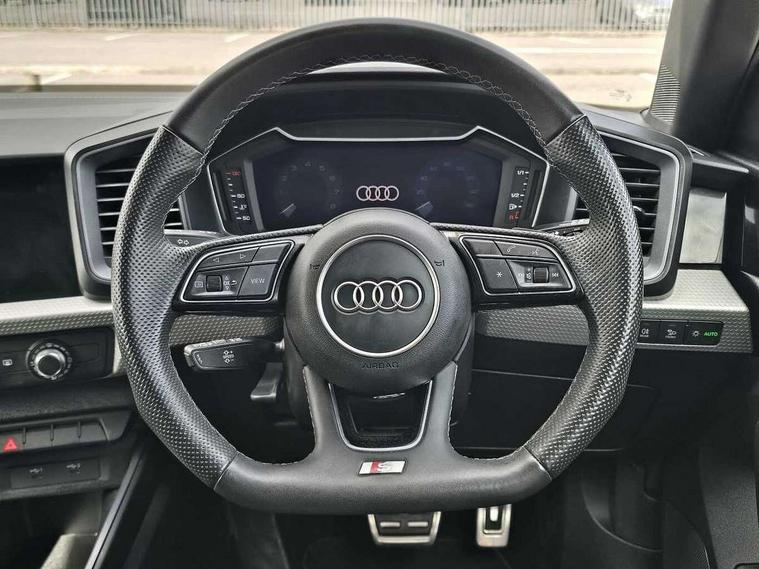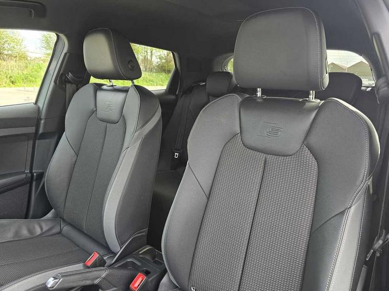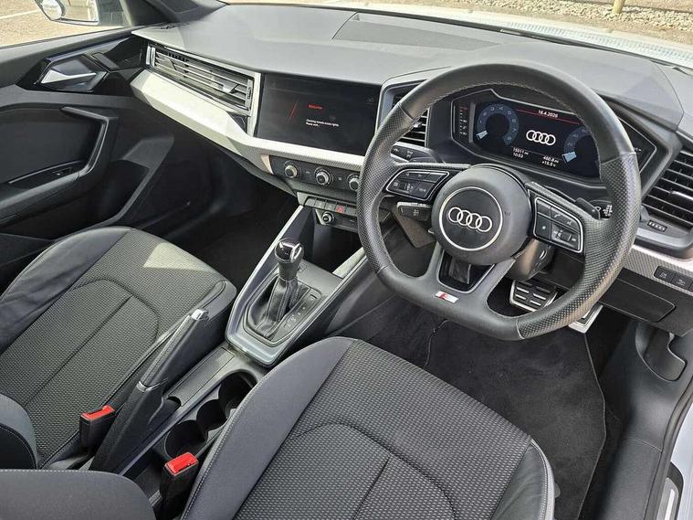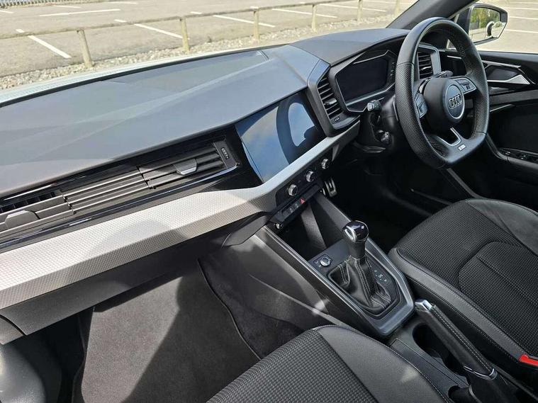 10.25" Digital instrument cluster display classis style instrument dials + speed, odometer, time, outside temperature, telephone menu + fuel level warning, Advanced driver attention and drowsiness monitor, Audi connect emergency call and service, Audi remote connect and control, Audi smartphone interface, Bluetooth interface, Camera based traffic sign recognition, Cruise control, Driver's information system, Electromechanical power steering, Lane departure warning system, Rear parking sensor, Service interval indicator, Speed limiter, Start stop system with recuperation, Voice control system, Washer fluid level indicator, Sports suspension, 2 x USB type C connection points, 6 loudspeakers, DAB Digital radio, MMI radio plus with 10.1" colour MMI display screen and MMI touch, Auto dimming rear view mirror, Black side skirts, Body coloured bumpers, Door sill trims with aluminium inlays and logo, Electric front and rear windows, Electrically adjustable, heated, folding door mirrors with integrated LED side indicator, Front side air inlets in grained matt black and C frame in anthracite black, Front wing badges, Headlight cleaning system, Heat insulating glass windscreen and side windows, Heated rear windscreen, High level LED brake light, LED daytime running lights, LED headlights with range control LED rear lights + dynamic rear indicators, Privacy glass, Radiator grille and rear diffuser in matt anthracite black, Radiator protective grille frame in matt aluminium silver, Rain and light sensors, Rear fog lights, Rear side wing doors, Rear wiper, Side front spoiler lips in grained matt black, 12V socket in centre console with two cup holders, 3 rear seats with headrests, 3 seat bench in 2nd row, 3 spoke flat bottomed multi-function plus leather steering wheel with S badging, grips in preforated leather, contrast stitching and paddle shift, 40:60 Split folding rear seat or fully collapsed, Black cloth headlining, Front and rear velour black floor mats with contrast stitching in fine silver, Front head restraints, Front passenger seat, Height and reach adjustable steering wheel, Interior lighting includes roof module, front and rear reading lights and right luggage compartment lighting, ISOFIX child seat mounting for front passenger and outer rear seats including top tether attachment point of outer rear seats, Leather gear knob with aluminium trim, Leather handbrake grip, Manual air conditioning, Manual height adjustable for driver and front passenger seat, Manually adjustable lumbar support in front seats, Stainless steel pedals, Ambient lighting package - A1, Black styling pack - A1 Sportback Black Edition, Luggage compartment pack - A1, 3x3 point rear seatbelts, Audi pre-sense front with pedestrain and cyclist recognition, Brake assist function, Driver and front passenger airbag with front side and head airbags, Electronic Stability Control including ABS, EBD, ASR and EDL, Front passenger airbag deactivation switch, Hill hold assist, Manual rear child locks, Seatbelt height adjustment for front seats, Seatbelt monitoring, Tyre pressure loss indicator, Warning triangle and first aid kit, Anti theft alarm, Anti theft wheel bolts, Immobiliser, Remote control key with safelock, Aluminium trim for control switches, air vents and digital instrument cluster, Black dashboard, Silver grey inlays polygon structure in diamond paint finish, Structured grey accent surfaces insert of air vents, interior door handle recesses and centre console in quartz paint finish,