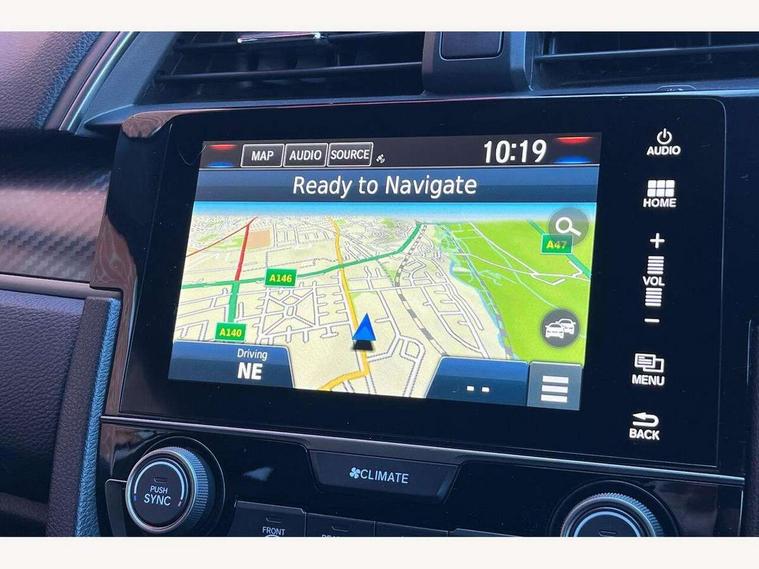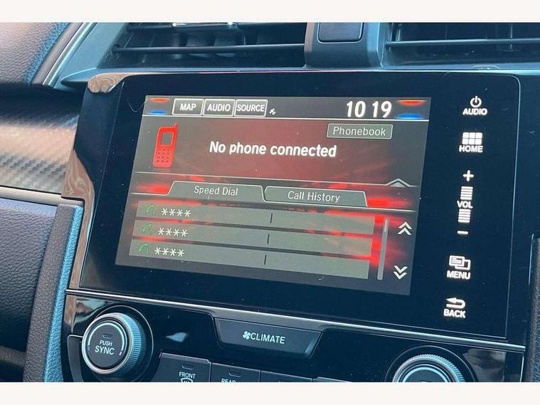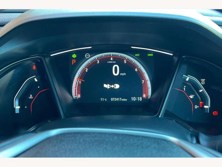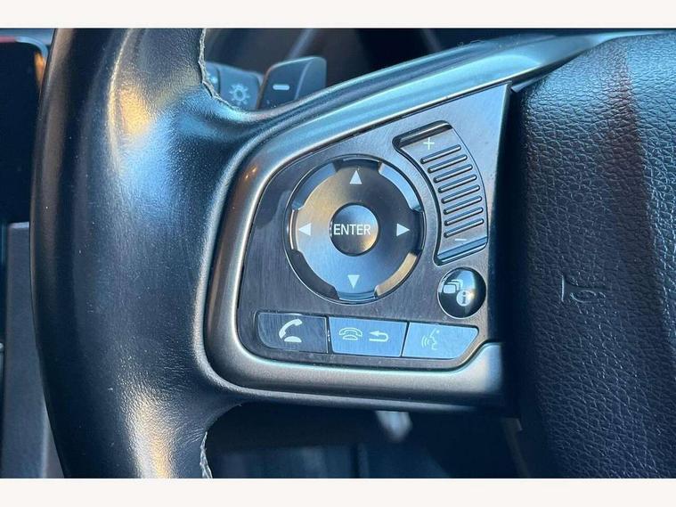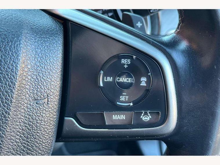 7" touch screen, Adaptive cruise control, Apple car play/Android Auto, Bluetooth hands free telephone connection, Colour driver's information system display, Easy fuel capless refuelling system, Electric power steering, Emergency stop signalling system, Forward collision warning, Front and rear parking sensors, Lane departure warning system, Lane keep assist, Rear parking camera, Red instrument illumination, Speed limiter, Traffic sign recognition, Vehicle stability assist, 'Shark fin' mobile antenna, 2x USB and HDMI, 8 speakers, Auxiliary socket for external MP3 player, Connect with Garmin sat nav, touch screen, internet radio/MP3/CD, Aha app, internet, Digital Audio Broadcast (DAB) Tuner, Steering wheel mounted audio controls, Automatic coming/leaving home lighting function, Automatic headlights with dusk sensor, Automatic rain sensing wipers, Automatic retractable door mirrors, Black grille, Black window surrounds, Body colour door handles, Body colour door mirrors, Body coloured bumpers, Dual exhaust pipes, Electric adjustable heated door mirrors, Electric front/rear windows/one touch operation, Headlight washers, High beam assist, LED daytime running lights, LED fog lights, LED Headlights, Power foldback door mirrors, Privacy glass, Rear wiper, Remote control door mirrors, Remote window closing, Alloy pedals, Ambient lighting, Boot light, Cargo hooks, Centre console storage and sliding armrest, Cloth upholstery, Driver's electric lumbar adjustment, Driver's seat height adjustment, Dual climate control air conditioning system, Front accessory power socket, Front map lights, Front/rear courtesy lights, Glovebox light, Isofix system on outer rear seats, Leather gear knob, Leather steering wheel, Paddle shift controls, Passenger seat back pocket, Rear armrest with cupholder, Sunvisors with illuminated vanity mirrors, Three height adjustable rear head restraints, Tilt/telescopic adjustable steering wheel, Tonneau cover, 5 three point seatbelts, ABS+EBD+Brake assist, Anti-whiplash front headrests, Collision mitigation braking system, Deflation detection system, Dual front SRS airbags, Electronic parking brake with auto hold, Front and rear curtain airbags, Front seatbelt pretensioners, Front side airbags, Hill start assist, Passenger airbag deactivate switch, Tyre pressure warning, ECU immobiliser, Honda super locks, Remote central locking with 2 remote folding keys, Ultrasonic alarm, Tyre repair kit,