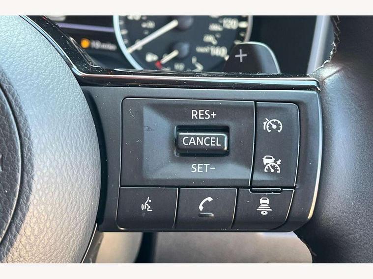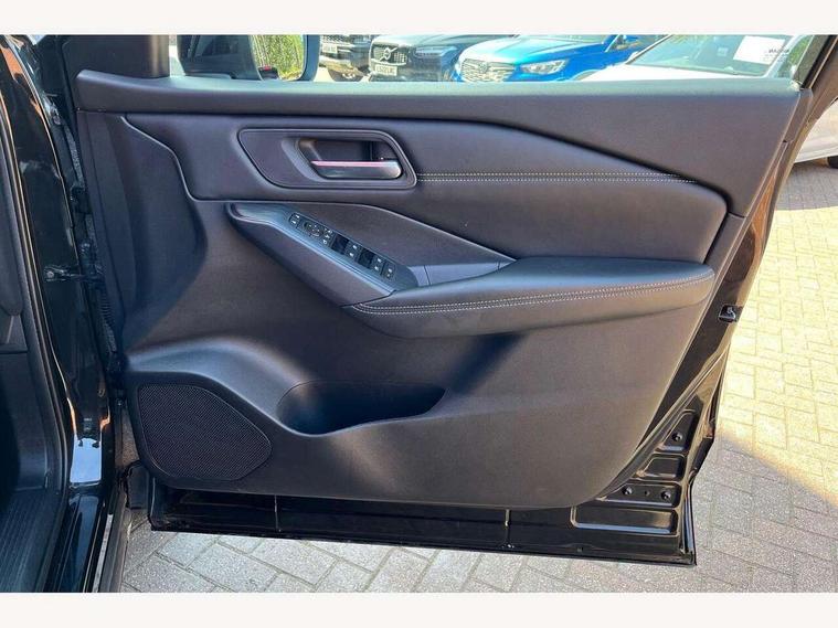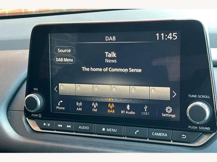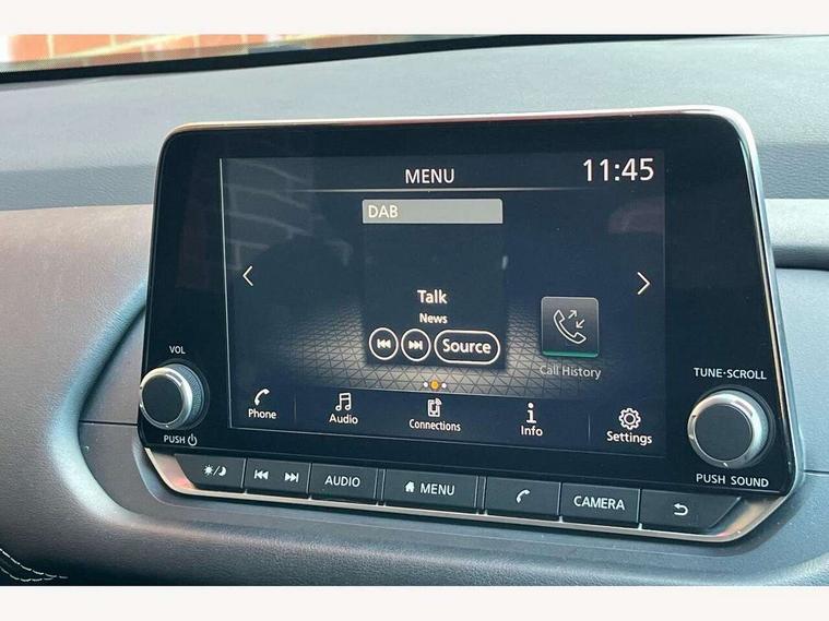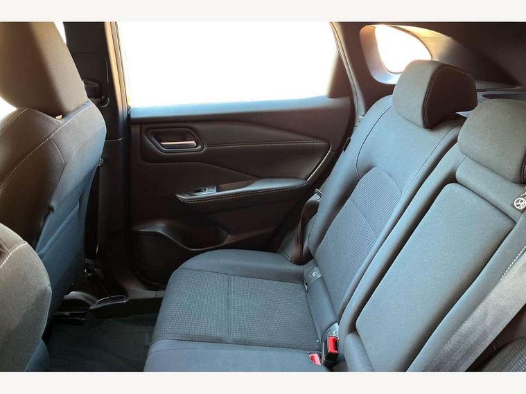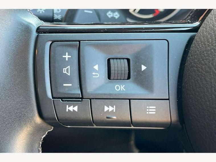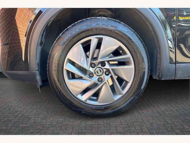 7" High definition full colour TFT screen combimeter, Android auto/Apple CarPlay (Wired), Blind spot warning, Drive modes (sport, normal, eco), Electric speed sensitive power steering, Emergency and breakdown call, Idle stop/start system, Intelligent Cruise control (ICC), Intelligent driver alert system, Intelligent forward collision warning, Intelligent lane intervention, Lane departure prevention, Lane departure warning system, Maximum speed limiter, Nissan connect 8" touchscreen infotainment system, Push button starter, Rear cross traffic alert, Rear parking sensors, Rear view camera, Traffic sign recognition with legal speed adjustment, Trip computer, 6 speakers, AM/FM audio system with DAB, Bluetooth audio streaming, Front USB connections (Type-A and Type-C), Auto dimming rear view mirror, Auto rear wiper when reversing, Automatic hazard signal with emergency stop signal, Body colour mirror caps, Body coloured door handles, Bodyside mouldings, Chrome side window finisher, Door handle with button, Dusk sensor, Electric auto folding door mirrors, Electrically adjustable and heated door mirrors with LED turn indicator, Follow me home headlights, High beam assist, Intelligent auto headlights, LED daytime running lights, LED Headlights, LED rear lights, One touch front and rear electric windows with remote opening and closing, Partially body coloured bumpers, Rear reversing light (bulb lighting), Rear roof spoiler, Rear side wing doors, Shark fin antenna, Splash free rain sensing wipers, Three blink turn signal, 12v power socket in dashboard and luggage, 2 way electrical driver lumbar adjustment, 2x Rear coat hooks, 3 bench rear seats in 2nd row, 3 rear headrests, 4 folding assist grip, 6-way manually adjustable driver's seat, 60/40 split folding rear seat bench, Centre console storage tray, Chrome interior door handles, Cloth monoform upholstery, Driver and front passenger sunvisors with illuminated vanity mirrors, Driver seat back pocket, Dual zone automatic climate control with pollen filter, Front and rear door storage, Front centre console and armrest, Front cupholders x 2, Front door with bottle holders, Glovebox with light, Hard trunk cover, Height adjustable front headrests, Height adjustable passenger seat, Leather steering wheel, Luggage space lighting, Manually adjustable passenger (slide recline + lifter), Multifunction steering wheel, Passenger seat back pocket, Rear armrest with 2 cupholders, Rear door bottle holders, Single front passenger seat, Steering wheel gearshift paddles, Steering wheel switches, Sunglasses holder, Tilt/telescopic adjustable steering wheel, Two rear isofix child seat anchorage points with top tether, 3x3 point rear seatbelt pretensioners + load limiters, ABS with EBD and brake assist, Active brake limited slip, Auto hold function, Child locks on rear doors, Curtain and front side, far side airbags, Driver and passenger airbags, Driver, passenger and 2nd row rear seat belt reminder, Electronic parking brake, Front seatbelt pretensioners + load limiters, Height adjustable front seatbelts, Hill start assist, Intelligent blind spot intervention, Intelligent front emergency braking with pedestrian, cyclist recognition and junction assist, Intelligent rear automatic braking, Tyre pressure monitoring system, Vehicle dynamic control, Capless fuel filler, Engine immobiliser, Nissan i-key, Remote central door locking with deadlocking, Thatcham Cat.1 alarm, Interior instrumental panel A finisher, 17" Alloy wheels, Tyre puncture repair kit,