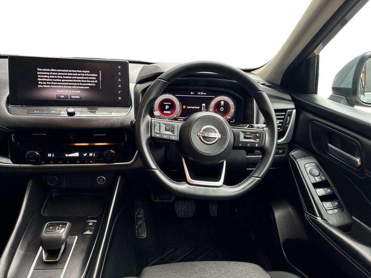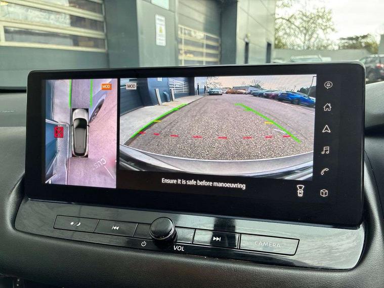 Android auto/Apple CarPlay (Wired), Blind spot warning, Drive modes (sport, normal, eco), Electric speed sensitive power steering, Emergency and breakdown call, Full Digital 12.3" TFT Digital Combimeter, Google maps services - search, weather, 3D maps and Google street view, Idle stop/start system, Intelligent around view monitor, Intelligent Cruise control (ICC), Intelligent driver alert system, Intelligent forward collision warning, Intelligent lane intervention, Lane departure prevention, Lane departure warning system, Maximum speed limiter, Moving object detection, Nissan connect 12.3 inch touchscreen infotainment system, Nissan connect navigation, Push button starter, Rear cross traffic alert, Rear parking sensors, Rear view camera, Remote control services - door locks, lights, horn and car locator, Telematics - notifications and connectivity services, TomTom live traffic services, Traffic sign recognition with legal speed adjustment, Trip computer, Virtual personal assistant and firmware over the air capability, Wireless apple carplay, 6 speakers, AM/FM audio system with DAB, Bluetooth audio streaming, Front USB connections (Type-A and Type-C), Rear USB charging only ports (Type-A and Type-C), Auto dimming rear view mirror, Auto rear wiper when reversing, Automatic hazard signal with emergency stop signal, Body colour mirror caps, Body coloured door handles, Bodyside mouldings, Chrome side window finisher, Door handle with button, Electric auto folding door mirrors, Electrically adjustable and heated door mirrors with LED turn indicator, Follow me home headlights, High beam assist, Intelligent auto headlights, LED daytime running lights, LED Headlights, LED rear lights, One touch front and rear electric windows with remote opening and closing, Partially body coloured bumpers, Privacy glass, Rear bumper with graphite insert, Rear reversing light (bulb lighting), Rear roof spoiler, Rear side wing doors, Rear styling plate, Shark fin antenna, Splash free rain sensing wipers, Super UV and infrared cut glass, Three blink turn signal, 12v power socket in dashboard and luggage, 2x Rear coat hooks, 3 bench rear seats in 2nd row, 3 rear headrests, 4 folding assist grip, 6 Luggage hooks - 4 on floor, 2 on side, 6-way manually adjustable driver's seat, 60/40 split folding rear seat bench, Ambient lighting around centre console, Centre console storage tray, Chrome interior door handles, Cloth monoform upholstery, Driver and front passenger sunvisors with illuminated vanity mirrors, Driver seat back pocket, Dual zone automatic climate control with pollen filter, Electrically adjustable lumbar support for driver, Front and rear door storage, Front centre console and armrest, Front cupholders x 2, Front door with bottle holders, Glovebox with light, Hard trunk cover, Height adjustable driver's seat, Height adjustable front headrests, Height adjustable passenger seat, Leather steering wheel, Luggage board system, Luggage space lighting, Manually adjustable passenger (slide recline + lifter), Multifunction steering wheel, Passenger seat back pocket, Rear armrest with 2 cupholders, Rear door bottle holders, Single front passenger seat, Soft PVC kneepad, Steering wheel gearshift paddles, Steering wheel switches, Sunglasses holder, Tilt/telescopic adjustable steering wheel, Two rear isofix child seat anchorage points with top tether, Welcome light and console tray ambient lighting, 3x3 point rear seatbelt pretensioners + load limiters, ABS with EBD and brake assist, Active brake limited slip, Auto hold function, Child locks on rear doors, Curtain and front side, far side airbags, Driver and passenger airbags, Driver, passenger and 2nd row rear seat belt reminder, Electronic parking brake, Front seatbelt pretensioners + load limiters, Height adjustable front seatbelts, Hill start assist, Intelligent blind spot intervention, Intelligent front emergency braking with pedestrian, cyclist recognition and junction assist, Intelligent rear automatic braking, Tyre pressure monitoring system, Vehicle dynamic control, Capless fuel filler, Engine immobiliser, Intelligent Key, Remote central door locking with deadlocking, Thatcham Cat.1 alarm, Interior instrumental panel B finisher, 18" Diamond cut alloy wheels, Tyre puncture repair kit,