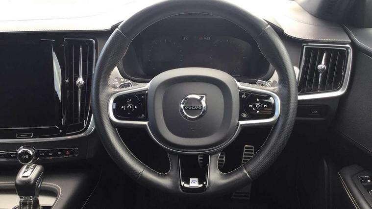 12.3" Active TFT crystal driver's instrument display, 9" centre console touch screen, Adaptive cruise control with pilot assist, Adjustable steering wheel force, Bluetooth Handsfree Phone Connection, Drive mode selector, Lane keep assist with driver alert control, Oncoming Lane Mitigation, Road Edge Detection, Sensus navigation with European mapping and traffic information, Service interval indicator, Speed limiter, Speed sensitive steering, Touch screen display, Trip computer, Voice activated control for key functions, Volvo on call, 8 speed automatic transmission with start/stop + manual change functions, DAB Radio (Digital Audio Broadcasting), Steering wheel mounted audio controls, Adaptive brake lights, Auto dimming exterior mirrors, Auto dimming interior mirror, Automatic headlamp levelling, Body coloured bumpers, Dual integrated exhaust pipes with high gloss black surround, Electric adjustable/heated/folding door mirrors, Front and rear electric windows, High gloss black lower front bumper, High gloss black mesh front grille with silk metal surround, High level LED brake light, Home safe and approach lighting, Illuminated side steps, LED front fog lights with static cornering light function, LED Headlights + Active high beam incorporating daytime running lights, Matt silver finish door mirrors, Rain sensor windscreen wipers, Roof antenna, Roof spoiler, Silver matt window frame surround, Silver roof rails, Visible VIN plate, 12V socket in front tunnel console, 60/40 split folding rear seat, A-pillar parking ticket holder, Ambient door and instrument panel lighting, B Pillar ventilation, Black headlining, Bright metal luggage threshold, Centre armrest storage illumination, Centre console cupholder, Centre console storage, Drivers side dashboard storage, Extended front seat cushions, Front and rear aluminium tread plates, Front and rear door pockets, Front footwell and side step illumination, Front headrests, Front tunnel storage net, Front/rear reading lights, Gearshift paddles, Grocery bag holder-luggage area, Heated front seats, Height/reach adjustable steering column, Illuminated front and rear tread plates, Illuminated front cupholder, Illuminated glovebox with lock, Illuminated luggage compartment, Illuminated tailgate, Illuminated vanity mirrors + ticket holder, Isofix system on outer rear seats, Load cover, Multi directional lumbar support, Multicolour theatre lights, Perforated leather gearknob, Perforated Leather Key Integrated Remote, Perforated leather steering wheel, Pollen filter, Power Folding Rear Seat Backrests and Headrests, Rear armrest with storage + cupholders, Rear footwell and side step illumination, Ski hatch, Sport pedals, Sports floor mats, Underfloor cargo storage, 3x3 point rear seatbelts, Active bonnet, City safety with steering support with Pedestrian + cyclist + large animal detection + front collision warning with full auto brake, Drivers knee airbag, Dual stage driver/passenger airbags, Electronic parking brake with auto hold, Fasten seatbelt reminder, Front and rear curtain airbags, Front seats SIPS airbags, Hill start assist, IC (Inflatable Curtains) - Full Length, Passenger airbag cut-off device, Road sign information display, Run off Road Mitigation, Run off Road Protection, Seatbelt pre-tensioners, SIPS (Side Impact Protection System), Stability and Traction Control with Spin control, Engine Drag Control and Corner Traction Control, Tyre pressure monitoring system, Vehicle deceleration control with Anti-lock Brake System, Electronic Brake Distribution and Emergency Brake Assist, Warning triangle and first aid kit, WHIPS whiplash protection system - front, Anti-theft alarm including immobiliser/volume sensor + level sensor, Key integrated remote control central locking + fuel flap with deadlocking system and auto open/close power windows, Locking wheel nuts, Private locking for tailgate, Tailored Instrument Panel and Door Tops with Contrast Stitching, Tempa spare wheel and jack,