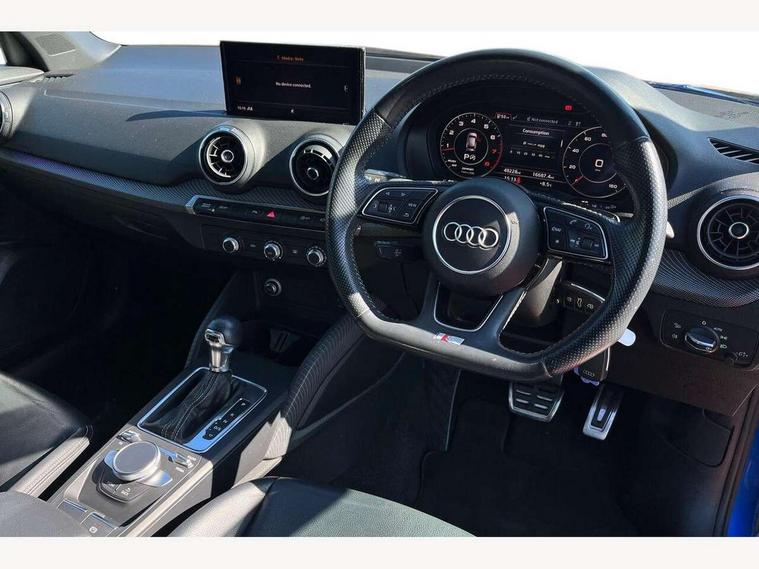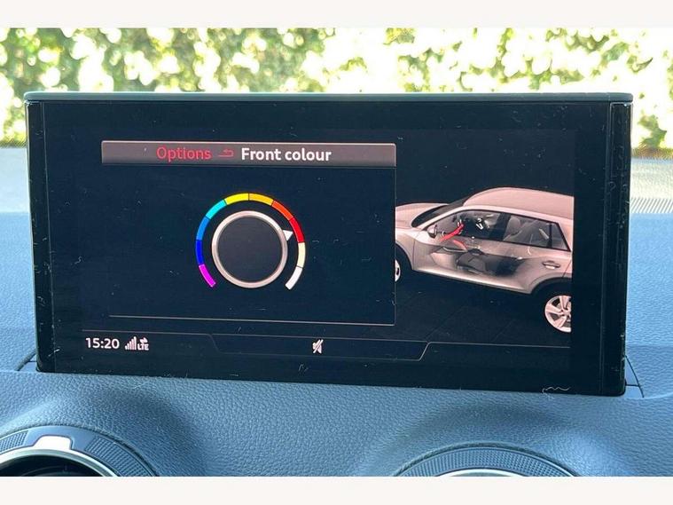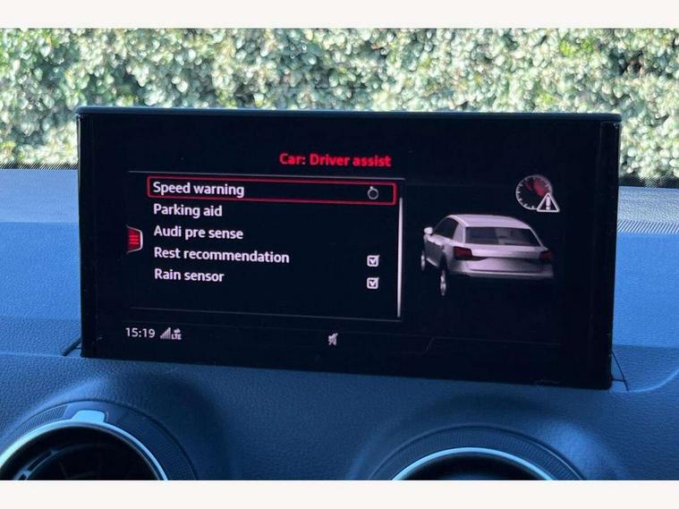 Audi drive select, Audi smartphone interface, Bluetooth hands free telephone connection, MMI - Multi Media Interface control system, MMI SD card Navigation, PAS, Service interval indicator, Voice control system, Audi music interface, Aux input, CD player, DAB digital radio module, MMI radio plus with 7" colour MMI screen and MMI controller, USB port, Body colour door mirrors, Chrome exhaust tailpipe, Door mirror integrated indicators, Electrically adjustable and heated door mirrors, Front and rear electric windows, Headlight washers, LED headlights with LED rear lights + dynamic rear indicators, Rear wiper, S Line body styling, Sunband for windscreen, Black cloth headlining, Centre console with storage/cupholders, Floor mats with contrast stitching, Front and rear door pockets, Front and rear headrests, Front centre armrest, Front sports seats, Glovebox, Height adjustable front seats, Height/reach adjust steering wheel, Illuminated door sills, ISOFIX on front passenger and rear outer seats, Stainless steel pedals, Storage compartment in rear centre console, Full body colour bumper pack - Q2, 3x3 point rear seatbelts, ABS+Electronic Brake force Distribution, Curtain airbags, Driver and passenger airbags, Driver and passenger side airbags, EDL + ASR, Electrically operated child locks on rear doors, Electromechanical parking brake, ESP, Multi-Collision braking, Pre-sense front with pedestrian recognition, Seatbelt warning light, Tyre pressure monitoring system, Warning triangle and first aid kit, Locking wheel bolts, Remote central locking, Thatcham category 1 alarm + immobiliser, Aluminium interior trim, Matt brushed aluminium fascia and door trim inlays,