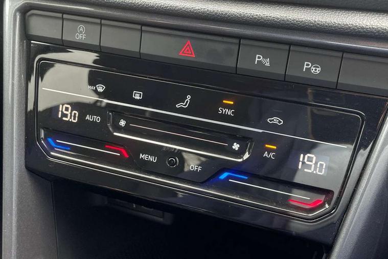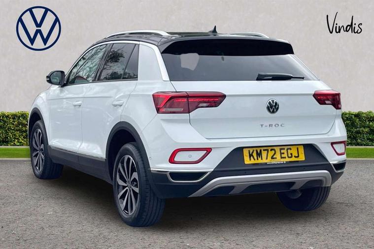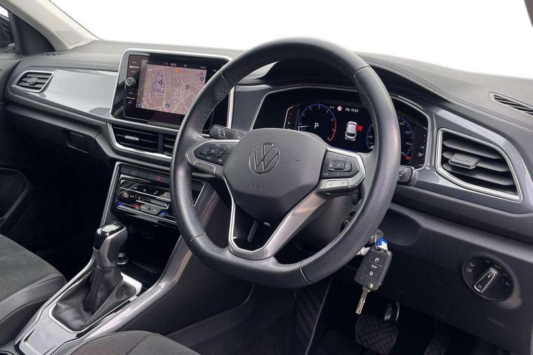 10.25" Digital cockpit pro, Bluetooth mobile phone interface, Driver alert system with fatigue detection, Driver tips and journey analysis, Emergency call service, Lane keeping system Lane Assist, Modified key software - reduce switch off time for key status change to Long no motion, Online services, Park assist including front and rear parking sensors, Service interval indicator, Tailgate/trunk lid release from outside, Think blue trainer driver tips and journey analysis, Warning sound and light for front seatbelts unfastened, Wireless app connect, Battery regeneration during braking, Start/stop function with battery regeneration, Diversity antenna for FM reception, Front and rear 6 speakers, Music playback - MP3, WMA and AAC files, Premium USB cable in choice of either Apple or Android smartphone compatibility, SD card slot, Simultaneous pairing of 2 compatible mobile devices, Title and cover art display, We Connect and We Connect Plus functionality, 3rd brake light, Auto dimming interior rear view mirror, Automatic hazard lights activation under emergency braking, Automatic headlight control with LED separate daytime running lights with coming/leaving home function, Body colour sports bumpers with silver metallic underbody fascia, Dynamic headlight range control with self adjusting whilst driving, Extended roof spoiler, Exterior mirrors aspherical on driver side, convex on front passenger side, External USB type C socket and charging sockets, Front windscreen wiper with intermittent wipe and 4 position delay, Heated rear window, LED Plus headlamps, LED rear combination lamps, LED rear number plate lights, LED tail lamp rear comination lamps, Light mode for poor weather, rain, fog or snow, Power windows with comfort operation and circuit breaker, Rain sensor, Rear exhaust tailpipe, Rear fog light on one side and reversing lights on both sides, Rear side wing doors, Rear wash/wipe with intermittent wipe setting, Remote electrically foldable door mirrors, puddle lights and reverse activated passenger's door mirror, 12V power socket in centre console, 3 rear head restraints, 3 seat bench in 2nd row, 4 load lashing points in luggage compartment, Air care climatronic air conditoning system with active combination filter and 2-zone temperature control, Chrome plated radiator grille inserts, air vent surrounds and light switch surrounds, Door and side trim panel with leatherette insert, Drawer under drivers seat, Front + rear carpet mats, Front centre armrest, Front comfort sports seats, Front cupholders x 2, Front footwell illumination, Instrument lighting, white adjustable panel illumination, Interior ambient lighting and surround lighting, Interior light delay, Isofix child seat preparation, Leather gearshift handle, LED interior light with switch off delay/dimmer and 2 front/rear LED reading lights, Load-through provision with cup holder when folded down ('Unsplit rear seat bench, split folding backrest, with centre armrest), Luggage compartment lighting, Non-folding front passenger seat backrest, Single front passenger seat, Storage compartment in left and right luggage area, Storage compartment in rear doors, Storage compartments in driver and front passenger doors, Sunvisors with illuminated vanity mirrors, Variable boot floor, height adjustable and removable, Driver assistance pack without proactive passenger protection - T-Roc, 3 point height adj front seatbelts + pretensioners, 3 point seatbelts in outer rear with ECE label, ABS, Child locks on rear doors, Driver and front passenger airbag with front passenger airbag deactivation, Driver and front passenger safety-optimised head restraints, Drivers seatbelt reminder, Electronic parking brake, Electronic Stability Control (ESC) inc EDL (Electronic Differential Lock) and ASR (Traction Control), Front and rear passengers curtain airbag system including front side airbags, Front assist with city emergency braking and pedestrian monitoring, Front seat side impact airbags, Predictive pedestrian protection, Rear disc brakes, Single tone horn, Tyre pressure loss indicator, Volkswagen roadside assistance, Alarm with interior protection, Anti-theft alarm system with interior monitoring, backup horn, and towing protection, Remote central locking with SAFELOCK, radio remote control with 2 remote control folding keys, Trims for alloy wheels,