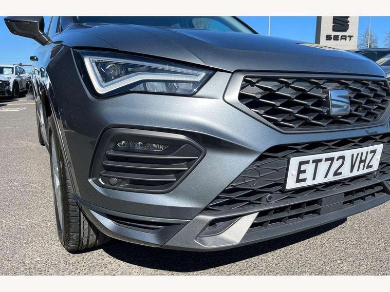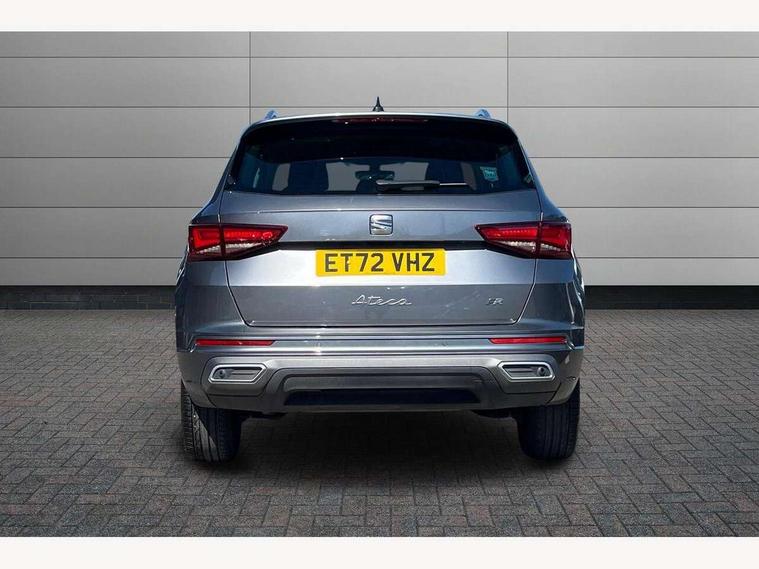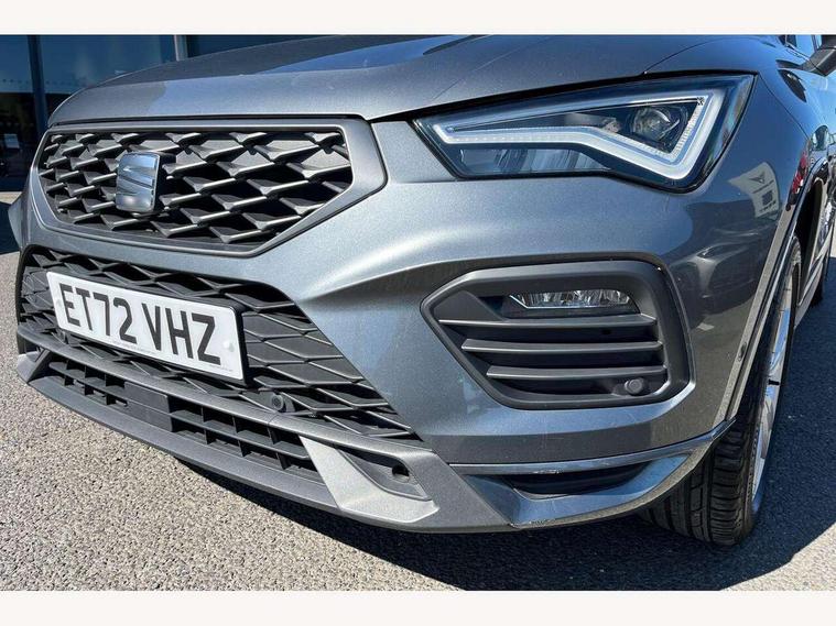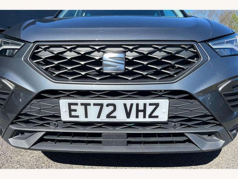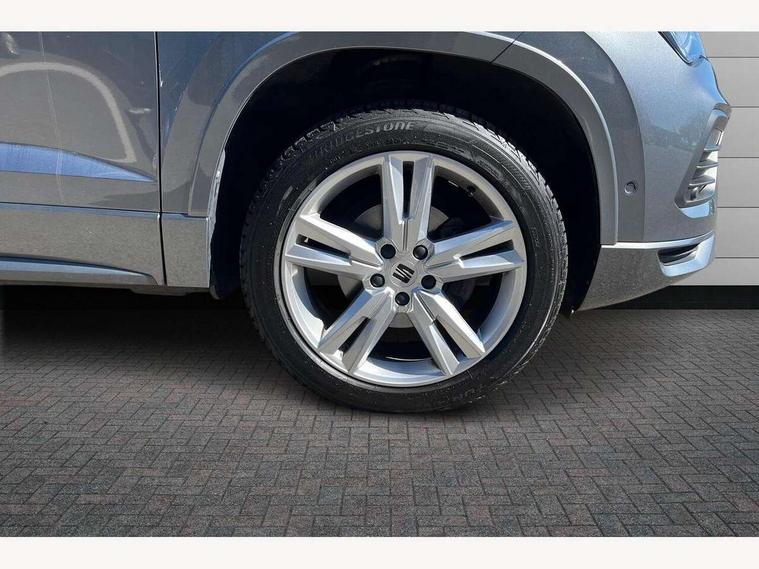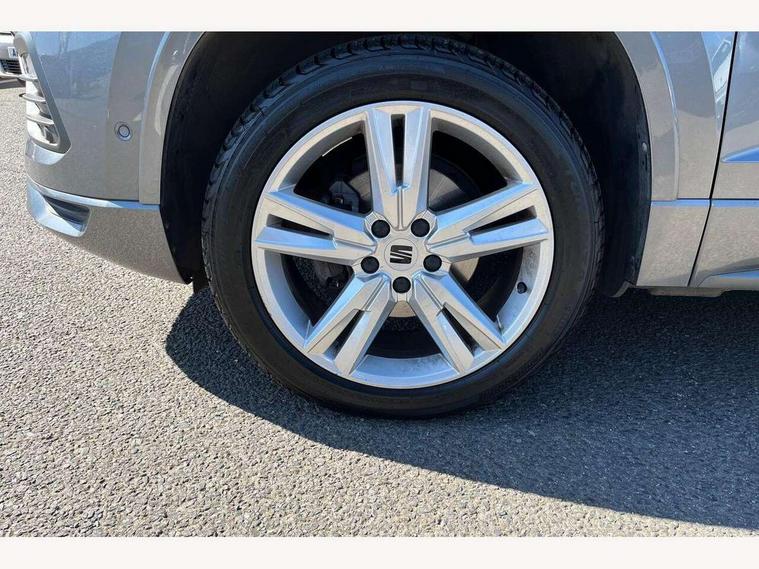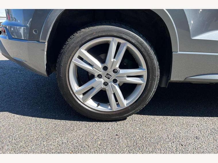 8" Digital cockpit, Colour multi-function on board computer display, Cruise control system with speed limiter, E-call, Outside temperature gauge, Progressive power assisted steering, SEAT drive profile with driving experience button - Normal, Sport, Eco and Individual mode, gearshift, steering and throttle response, Self parking functionality (includes front and rear parking sensors), Start/stop system, Tailgate, Trip computer, Wireless full link smartphone integration, Wireless phone charger, Steering wheel mounted audio/phone controls, Body colour bumpers, Body coloured wheel arch surrounds, Chrome front grille frame, Chrome roof rails, Chrome side window trim, Dark tinted rear windows, Daytime running lights, Door mirrors with welcome light silhouette, Dynamic headlight range control with self adjusting whilst driving, Electric adjustable/heated/folding door mirrors, Front and rear electric windows, Full LED headlamps with lens and LED front fog lamps with cornering function, Illuminated aluminium front door sill, LED rear tail lights with dynamic indicators, Rear fog lights, Rear side wing doors, Rear wash/wipe, Simulated exhaust pipes in chrome frame, Variable front intermittent wipers, 12V socket in front, 3 seat bench in 2nd row, 60/40 split folding rear seat, Aluminium pedals, Drawer under right front seat, Dual zone climate control, Front and rear head restraints, Front centre armrest, Front seat back storage pockets, Height adjustable driver and passenger seat with lumbar adjustment, ISOFIX points in outer rear seats with top tether anchorage points, Leather steering wheel and gear knob, Microsuede upholstery with front comfort seats, Rear armrest and easy back seat release mechanism from boot, Single front passenger seat, Steering wheel mounted gearshift paddles, Convenience pack - Ateca, Interior lighting pack - Ateca, Navigation system pack with DAB - Ateca, 3x3 point rear seatbelts, ABS, Traction control system (TCS), Electronic stability control (ESC) and Electronic differential lock system (XDS), Airbags - Driver and front passenger airbag with deactivation, front side, two curtain and driver's knee airbags, Electric parking brake with auto hold function, Front and rear seatbelt reminder, Front assist with autonomous emergency braking, Hill hold control, Manual rear child locks, Single tone horn, Tiredness recognition system, Traction control, Tyre pressure monitoring system, Alarm, Keyless entry, Locking wheel bolts, Remote central locking, Chrome interior detailing, 18" Brillaint silver alloy wheels,