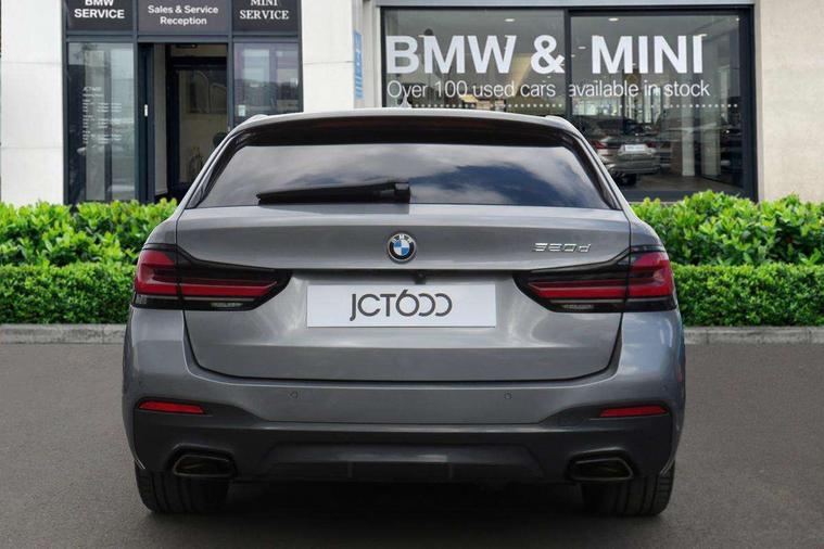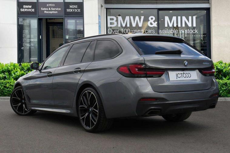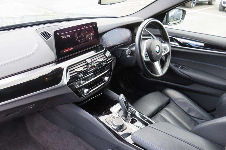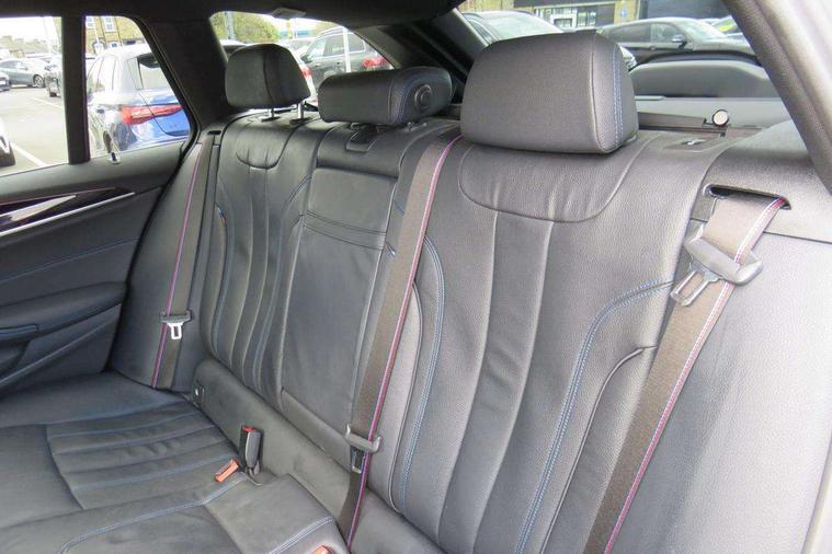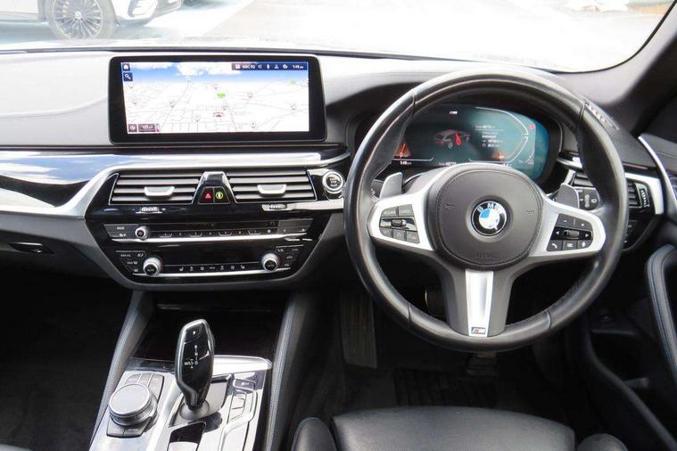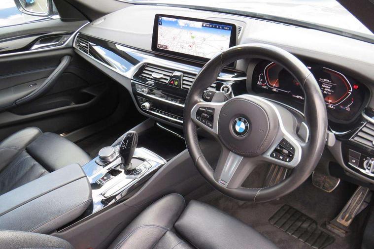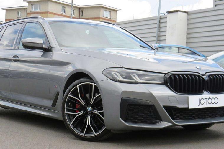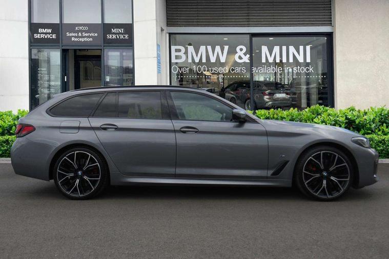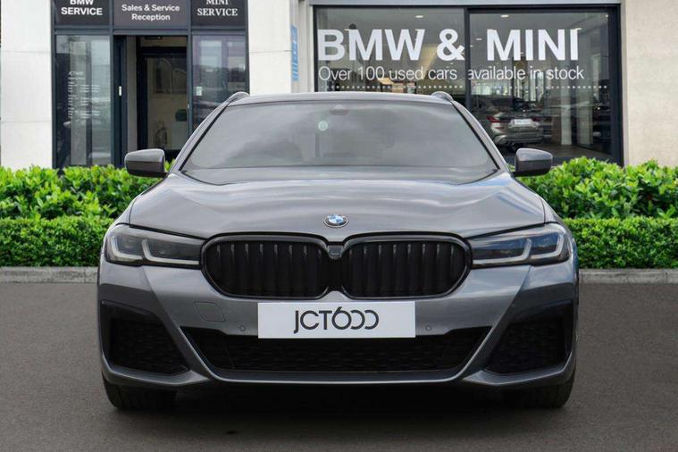 32GB hard disc drive (HDD) memory, Active Guard, Bluetooth connection, BMW ConnectedDrive online services, BMW Live Cockpit Professional sat nav system with 12.3" instrument display and high resolution control display, BMW Teleservices, Brake pad wear indicator, Cruise control with brake assist, Driving experience switch, eCall emergency call system, Electric boot lid - electrically opening/closing rear tailgate, Electric Power Steering (EPS) with Servotronic, iDrive controller with shortcut buttons, Intelligent emergency call, Multifunctional instrument panel, Oil sensor for level and grade, On board computer inc. average speed, fuel consumption, liquid crystal Info display, journey computer, outside temperature display, personal profile, On-board diagnosis - OBD, Powered by Operating System 7.0, Service interval indicator, Speed limiting function, Stop/start button, 48V Mild hybrid technology, Diesel particulate filter, Drive performance control with ECO PRO comfort + sport mode, Engine cover with twin turbo designation, M sport suspension, Steptronic sport transmission with gearshift paddle switches on steering wheel, DAB Digital radio, Favourite buttons, Acoustic glazing, All round anti-corrosion system, Automatic windscreen wipers and automatic headlight, Automatically dimming rear view mirror, BMW Individual high gloss shadow line includes exterior mirror frame, window frame surround, B pillar finish, air breather in high gloss black, Body colour door handles, Body coloured bumpers, Door handle illumination, Dynamic brake lights with LED technology, Electric front and rear windows with fingertip open/close + anti-trap facility and comfort closing function, Electrically adjustable and heated exterior mirrors includes integrated direction indicators and automatic parking function, Folding exterior side mirror with auto- dimming, Follow me home headlight function, Heated windscreen washer jets, High gloss black active air stream kidney grille, High gloss shadow line roof rails, Independent opening for tailgate window, LED daytime running lights, LED Headlights, LED third brake light, M designation on front side panels, left and right in chrome, M Sport exterior styling, Preparation for high beam assistant, Rear side wing doors, Rear wiper, Trapezoidal visible exhaust tailpipes, 12V power socket in front and rear, 3 seat bench in 2nd row, 40/20/40 split folding rear seats with additional mechanism in luggage compartment, Anthracite headlining, Armrest - front and rear integrated door trim, centre console includes storage compartment, rear centre includes 2 cupholders, Child seat ISOFIX attachment with rear outer seats includes top tether, Cup holders (2 front and 2 rear), Front and rear footwell lights, Front reading lights, Height and length adjustable steering column and activation via lateral lever on the steering column, Lockable glove compartment with light, M door sill finishers, M specific pedals, M specific velour floor mats, Multifunction controls for leather steering wheel, Rear headrests, Retractable luggage compartment dividing net, Single front passenger seat, Three spoke sport M leather steering wheel, Ambient lighting pack - 5 Series, Connected package professional - 5 Series, M Aerodynamic pack - 5 Series, Parking assistant pack - 5 Series, Airbags - driver/front passenger, rear and side, first and second row seats head airbags, front passenger seat airbag deactivation, Anti-lock braking system (ABS), Automatic Stability Control (ASC), Brake assist function, Brake energy regeneration, Cornering brake control (CBC), Crash sensor activating central locking release, hazard warning lights, fuel cut off and interior lighting, Deformation zones - front and rear with door reinforcements and bumpers up to 2.5 mph, DSC - Dynamic Stability Control, Dynamic brake control, Dynamic Traction Control - DTC, Electromechanical parking brake with automatic drive away release and auto hold function, Electronic brake force distribution, Engine drag torque control, Front and rear brake discs with interior ventilation, Front head restraints with anti-whiplash, Hill start assist, Mechanical child proof lock on rear doors, Passive protection for pedestrians, Rear door child safety locks, Side impact protection, Three point seat belts for all four seats, Two tone horn, Tyre pressure indicator, Warning triangle and first aid kit, Alarm system (Thatcham 1) with remote control and electronic engine immobiliser, Locking wheel bolts,