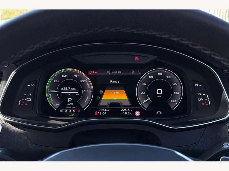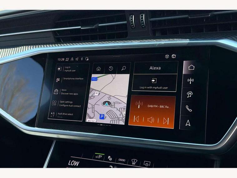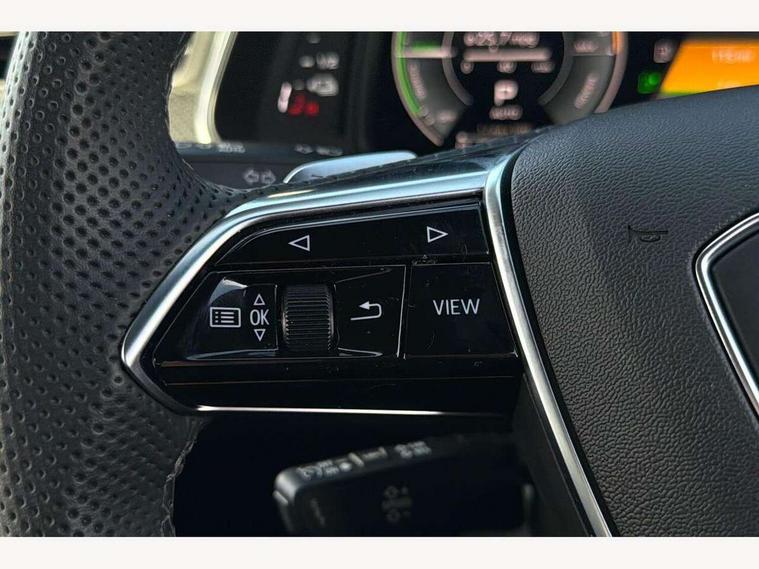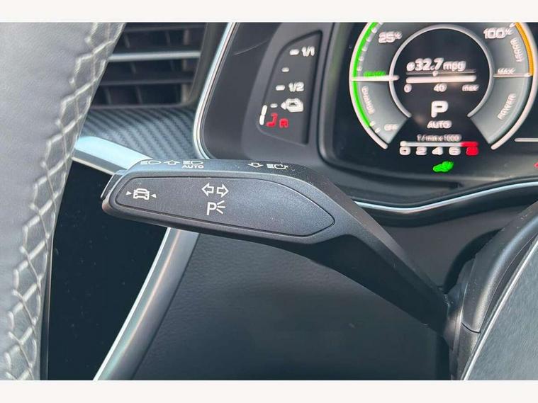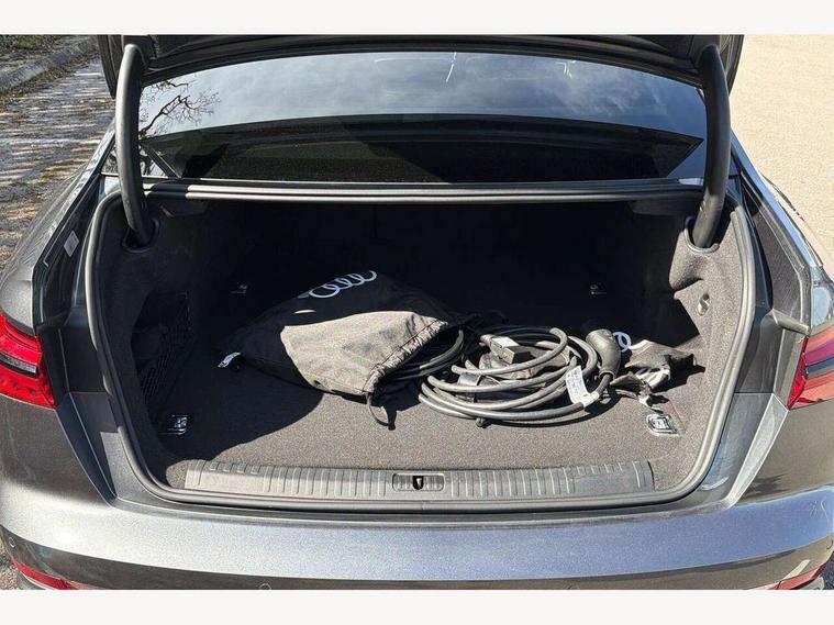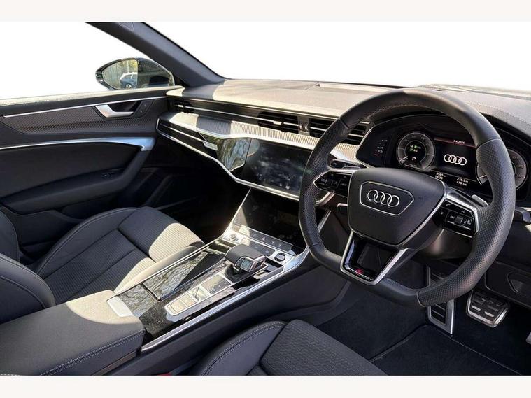 Audi connect safety and service (e-call), Audi connect with Amazon Alexa Integration, Audi drive select, Audi parking system plus - acoustic and visual park assist system for front and rear, Audi virtual cockpit, Automatic start/stop system with coasting functionality, Bluetooth interface, Camera based traffic sign recognition, Electric boot lid release, Lane departure warning system, MMI navigation plus with 10.1" and 8.6" touch screens, Progressive steering, Rear view camera, Service interval indicator, Smartphone interface includes wireless Apple carplay/Android Auto, Voice control system, 3 pin 10 amp domestic charging cable, 52 litre fuel tank, 7.4 kW onboard charger, Compact charging system, Hybrid propulsion system, Industrial connector CEE 32A, 230V, long and straight for the e-tron charging system, Mode 3 charging cable for public charging (AC), Sports suspension, Type 2 socket for AC charging, Audi front music interface, Audi sound system, Auxiliary input socket, DAB Digital radio, USB connection, Audi beam, Electric front/rear windows, Electrically adjustable heated and folding + automatically dimming exterior mirrors with memory function, Frameless auto dimming interior rear view mirror, Front intermittent wipers, Heat insulating darkened glass in side and rear windows, Heat insulating glass in windshield, LED rear lights with dynamic indicators, LED signature front daytime running light, LED third brake light, Matrix LED headlights, Matt black rear diffuser with diffuser strip and tailpipes in chrome, Matt black side air intake grille with inlay in matt aluminium, Omission of output/technology badging, Privacy glass, Radiator grille in anthracite black matt, single frame in chrome and horizontal struts in matt aluminium silver, Rain and light sensors, Rear boot, Rear side wing doors, 4 zone deluxe automatic climate control, 40/20/40 split folding 3 rear seat bench in 3 parts with rear centre armrest, Audi phone box light, Black cloth headlining, Electrically adjustable front seats including seat height, fore/aft position, backrest angle and 4-way lumbar with memory for driver's seat, Front and rear floor mats, Front centre armrest, Front head restraints, Heated front seats, Height/reach adjust steering wheel, Illuminated door sill trims with S logo, Illuminated sun visors with vanity mirrors, Leather gear knob, Rear headrests, Single front passenger seat, Stainless steel pedals and foot rest, Tool kit and car jack, Black styling package plus - A6 Black edition, LED Interior Ambient Lighting Pack - A6, Non smoking pack - A6, S line exterior style pack - A6, 3 point seatbelts on all seats, Airbags - Front side, front and rear including head, Audi pre-sense front, EBD - Electronic brakeforce distribution, Electromechanical parking brake, Electronic Stability Control (ESC) including ABS, ASR and EDL, Extended pedestrian protection measures, ISOFIX child seat mounting for front passenger seat and ISOFIX child seat mounting with Top Tether for outer rear seats, Manual child proof rear door locks, Seatbelt monitoring, Tyre pressure warning light, Warning triangle and first aid kit, Anti theft alarm with tow away protection, Anti-theft wheel bolts and wheel loosening detection, Immobiliser, Keyless Go, Remote central locking, Carbon twill inlays, Tyre repair kit,