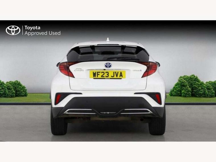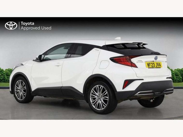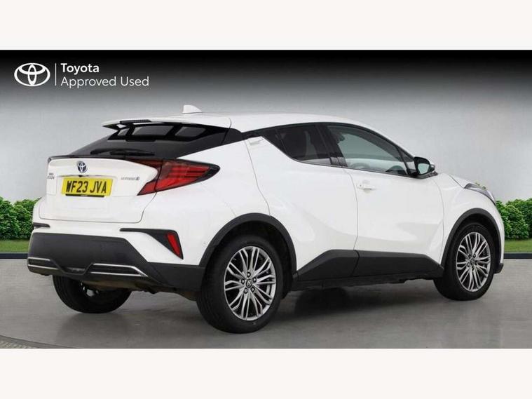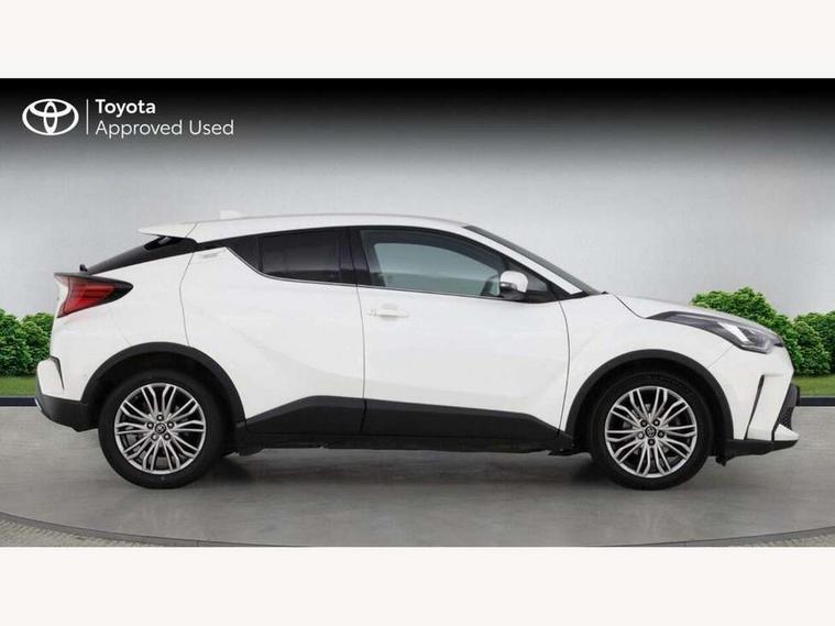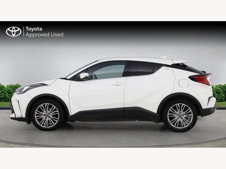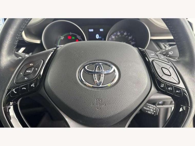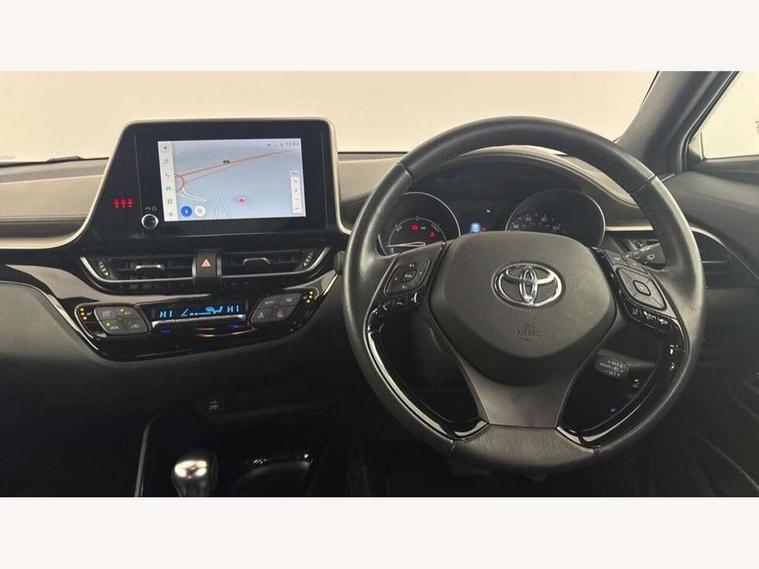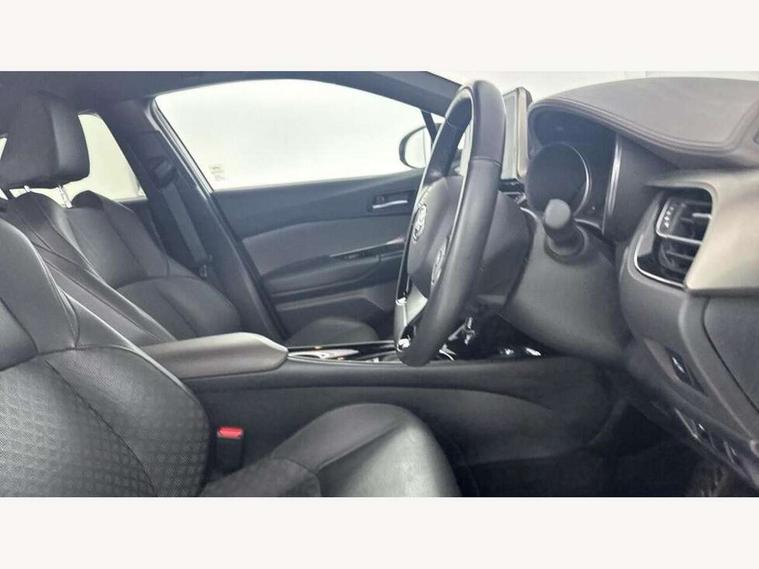 4.2" coloured TFT screen for multi-information display, Adaptive cruise control, Apple car play and Android auto, Bluetooth connectivity, E-call, Electric power steering, Hybrid system indicator, Lane departure alert with steering control, Lane trace assist, Push button tailgate release, Remote boot door release in cabin, Remote boot door release in key, Reversing camera, Road sign assist - RSA, Simple Intelligent parking assist, Smart voice assist, Touch 2 Go navigation system, Trip computer, Voice recognition, Wireless smartphone integration, Vehicle Stability Control (VSC), 6 speakers, AM/FM radio, DAB Radio (Digital Audio Broadcasting), Toyota touch 2 multimedia system with 8" display, USB connector, Wi-fi connectivity, Adaptive front light system, Adaptive LED Headlights, Anti-jam protection on power windows, Auto high beam, Auto up and down function on all power windows, Automatic headlight levelling, Automatic headlights, Automatic headlights cut-off, Black and body coloured rear bumper, Black lower front grille, Black upper front grille, Body colour door handles, Body colour door mirrors, Body colour front spoiler lip, Body coloured front bumper, Boot door release with push button, Electric heated door mirrors, Follow me home headlights, Front and rear power windows, Headlight cut off reminder, Honeycomb lower front grille, LED daytime running lights, LED fog lights, LED front light guide, LED High mounted stop light, LED rear brake lights, LED rear combination lights, Noise reduction layer on front windows and windscreen, Power adjustable door mirrors, Privacy glass, Rain sensor, Rear sequential indicators, Rear side wing doors, Rear spoiler, Rear tailgate, Rear window defogger, Rear window wiper, Shark fin antenna, UV-filter on driver and passenger windows, UV-filter on rear windows, Variable front intermittent wipers, 12v power outlet - front, 3 rear headrests, 3 seat bench in 2nd row, 3 spoke leather steering wheel, 60/40 split folding 2nd row rear seats, Adjustable rear headrests, Adjustable speed limiter switch on steering wheel, Assist grips front and centre pillar, Audio and telephone switches on steering wheel, Black front door assist grips, Blue ambient lighting on front cup holders, Blue ambient lighting on front doors, Boot light, Chrome interior door handles, Driver and front passenger personal light, Driver and front passenger Whiplash Injury Lessening seats, Driver and passenger seatback pockets, Dual zone automatic air conditioning, Floor mats, Front cupholders, Front head restraints, Front sports seats, Glovebox with internal light, Hard tonneau cover, Heated driver and front passenger seats, Heated steering wheel, Hooks for luggage holding net, Humidifying Nanoe air purifier, Illuminated entry system, Isofix attachments on outer rear seats, Leather gearshift, Leather wrapped steering wheel, Light on driver sun visor, Light on passenger sun visor, Manual telescopic steering wheel, Manual tilt steering wheel, Microphone on front personal light, Mirror on driver sun visor, Mirror on passenger sun visor, Multimedia switches on steering wheel, Pollen filter, Power adjustable lumbar support on driver seat, Power tilting cushion on driver seat, Shopping bag hooks, Single front passenger seat, Slow opening on lower glovebox, Voice recognition switch on steering wheel, Leather pack - C-HR, Tech with parking sensor pack - C-HR, 16 Disk front wheel brake, 3x3 point rear seatbelts, ABS+EBD+Brake assist, Electronic parking brake, Front and rear seatbelt reminder, Front passenger airbag on/off switch, Hill start assist control (HAC), Pre collision system with pedestrian detection, Pre-tensioners and force limiters, Rear door child safety locks, SRS Airbags - Driver + Front passenger, front side, front and rear curtain and driver's knee airbags, Toyota safety sense, Tyre pressure monitoring system, Tyre pressure warning system, Acoustic vehicle alert system (AVAS), Glass-breaking alarm sensors, Immobiliser, Intrusion alarm, Intrusion sensor, Motion sensor alarm, Power door locks, Power passenger window lock, Remote central locking, Black lower dashboard, Dark brown upper dashboard, Piano black console, Silver deco line on upper dashboard, Tyre repair kit,