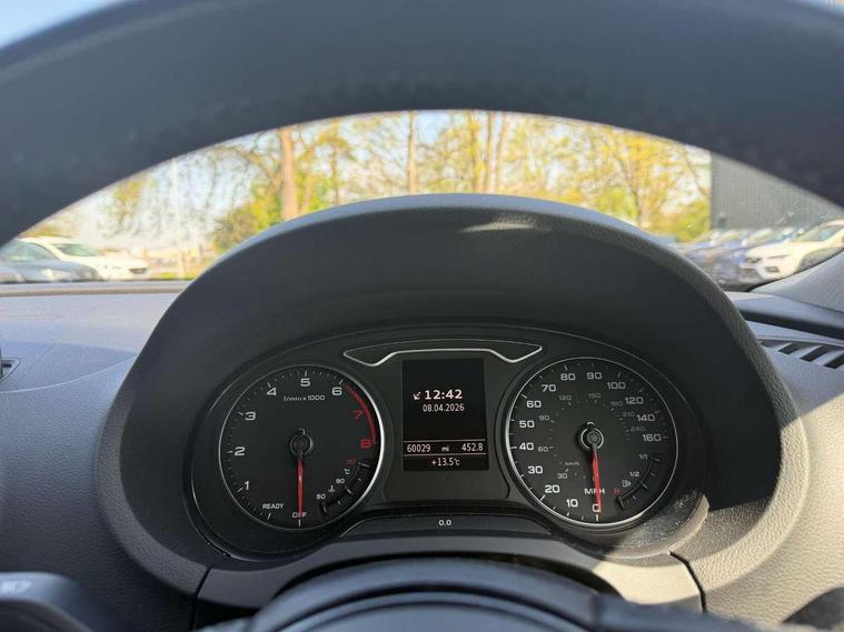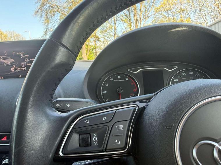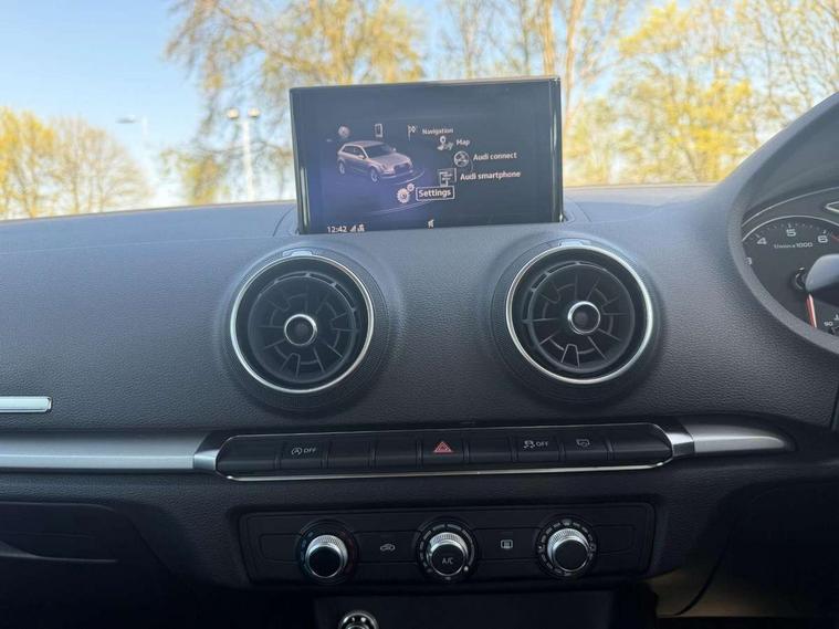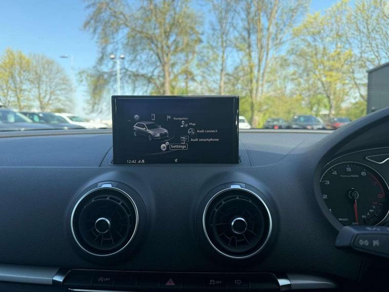 Audi connect, Audi smartphone interface, Automatic start/stop system, Colour driver's information system display, Electro - mechanical power assisted steering, Mobile telephone preparation - bluetooth interface, SD card based satellite navigation system, Service interval indicator, Speed limit display, Voice control system, Voice recognition for navigation system, Dynamic suspension, 2 USB interfaces and Aux-In jack, Audi music interface, CD player, DAB Digital radio, MMI radio plus with 7" colour MMI screen and MMI controller, Auto dimming rear view mirror with light and rain sensors, Body colour bumpers, Body colour door mirrors, Body colour roof spoiler with aerodynamic inserts in high gloss black, Electric front windows, Electric rear windows, Electrically adjustable and heated door mirrors with integrated LED side indicators, Heated windscreen washer jets, Matt black radiator grille, Rear wiper, Xenon headlights with LED Daytime running light, 3 adjustable rear headrests, 3 spoke leather multifunction sports steering wheel, 4 lashing points to secure luggage, Adjustable front centre armrest, Front and rear interior lights with delay, Front/rear floor mats, Glovebox light, Height and reach adjustable steering wheel, Isofix child seat preparation for front passenger/outer rear seats inc passenger airbag deactivation, Rock grey headlining, Storage compartments in doors side trims, centre console and under front drivers seat, Tool kit, Non smoking pack - A3, 3 point seatbelts on all seats, ABS/EBD, Active bonnet, Active front headrests, Airbags - front driver/passenger, front & rear side, curtain, drivers knee, ASR, EDL, Electromechanical parking brake, ESC - Electronic Stability Control + traction control, Front passenger airbag deactivation, Hill hold assist, Manual rear child locks, Multi-Collision braking, Seatbelt warning, Tyre pressure warning, Warning triangle and first aid kit, Anti theft alarm, Anti-theft wheel bolts, Remote control central locking, Thatcham category 1 alarm + immobiliser, Aluminium air vent surrounds, Micrometallic silver inlay, Tyre repair kit,