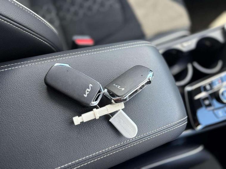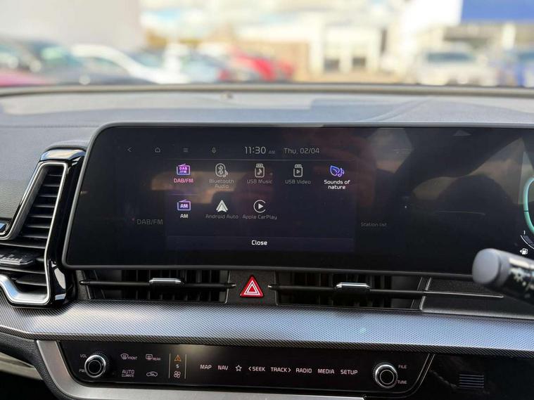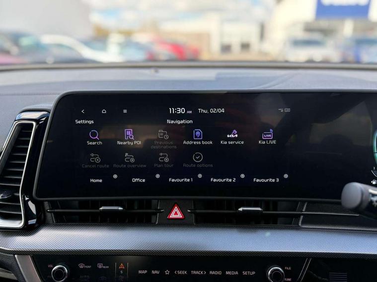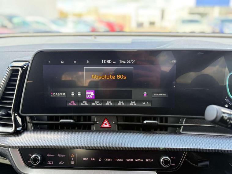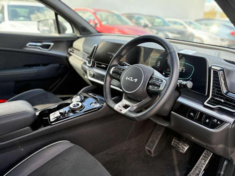 12.3" Touchscreen navigation system, 4.2" driver display screen, Apple car play/Android Auto, Drive mode selector, Driver attention warning, E-call, Emergency stop signalling system, Forward collision avoidance assist (FCA) - city/pedestrian/cyclist/junction covering, Front and rear parking sensors, Highway Driving Assist (HDA), Intelligent speed limit assist, Kia Connect (UVO), Lane Following Assist (LFA), Lane keep assist, Low washer fluid warning, Motor driven power steering, Rear view monitor, Reversing camera system integrated into centre fascia screen, Smart cruise control with stop and go functionality, Speed limiter, Tailgate, Trip computer, Windscreen washer level indicator, 1x USB-C port in front, 2 rear USB-C ports, 6 speaker audio system, Bluetooth audio streaming, DAB Radio with MP3, Steering wheel mounted audio controls, USB C type charging ports on centre console, USB port for connection of a media device, All round electric windows with drivers and front passenger auto up/down function, Auto dimming rear view mirror, Automatic headlight control system, Automatic window defogger, Black and body coloured bumpers, Body colour exterior door handles, Body colour radiator upper garnish and door garnish, Electrically adjustable/heated/folding door mirrors with LED indicators, Front and rear chrome skid plates, Gloss black door mirrors, Gloss black radiator grille, Gloss black side sill and wheel arch body mouldings, Glossy black roof rack, GT-Line exterior styling, Heated rear window, High beam assist, Interior electrochromic mirror, LED daytime running lights, LED front fog lamps, LED headlamps (low and high beam - MFR type), LED High mounted stop light, LED rear combination lamp, Rain sensing wipers with aero blades, Rear fog lamp, Rear privacy glass, Rear side wing doors, Rear spoiler, Rear wiper, Satin finished beltline, Silver window surround, Tinted rear glass, Trailer stability assist, 12V power socket in front centre fascia and luggage compartment, 2nd row personal lamps, 3 seat bench in 2nd row, 3 x passenger assist grips, 40/20/40 split folding rear seat, All-round height adjustable headrests, Alloy pedals, Automatic air conditioning, Black headlining, Centre console storage box, Cupholders in rear armrest, Door courtesy lamps, Drink holder at centre armrest, Driver and front passenger side sunvisors with illuminated vanity mirrors, Driver's seat manual height adjust, Drivers seat power lumbar support, Front and rear door storage, Front cabin, rear & luggage compartment lights, Front passenger's seat manual height adjustment, Front seat and rear pockets, Gear shift indicator, Glovebox illumination, GT-Line Interior Styling, Heated front seats, Heated steering wheel, ISOFIX Child seat top tethers and anchor fixings outer rear seats, Leather steering wheel, Luggage area load cover, Luggage area parcel shelf, Luggage board, Luggage compartment under floor storage, Luggage net with hooks, Manual adjust steering wheel, Metal paint interior door handles, Overhead console lamp, Paddle shift controls, Rear air conditioning, Rear cabin light, Rear coat hooks, Single front passenger seat, Suede leather upholstery, Ventilation ducts to rear compartment, Active front headrests, All round 3-point seatbelts, Anti-lock braking system (ABS), Dual front side airbags, Dual horn, Dynamic brake control, Electronic parking brake with auto hold function, Electronic stability control with downhill brake control, Front passenger airbag cut-off switch, Front seatbelt pretensioners + load limiters, Height adjustable front seatbelts, Hill start assist control (HAC), Impact sensing auto door unlocking, Multi collision brake assist, Rear airbags, Rear door child safety locks, Rear seat alert system, Seatbelt reminder warning, Traction control, Twin curtain airbags, Twin front airbags, Tyre pressure monitoring system, Vehicle stability management, Customisable automatic door locking, Customisable automatic door unlocking, Door deadlocks, Engine Start/Stop Button with Smart Entry System, Locking wheel nuts, Smart key with motion sensor, Speed sensitive auto door locking, Thatcham category 2 security alarm and immobiliser, Visible vehicle identification number, Aluminium pattern finish centre fascia and door garnish, 19" GT-Line alloy wheels, Tyre mobility kit,