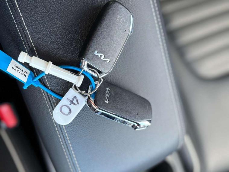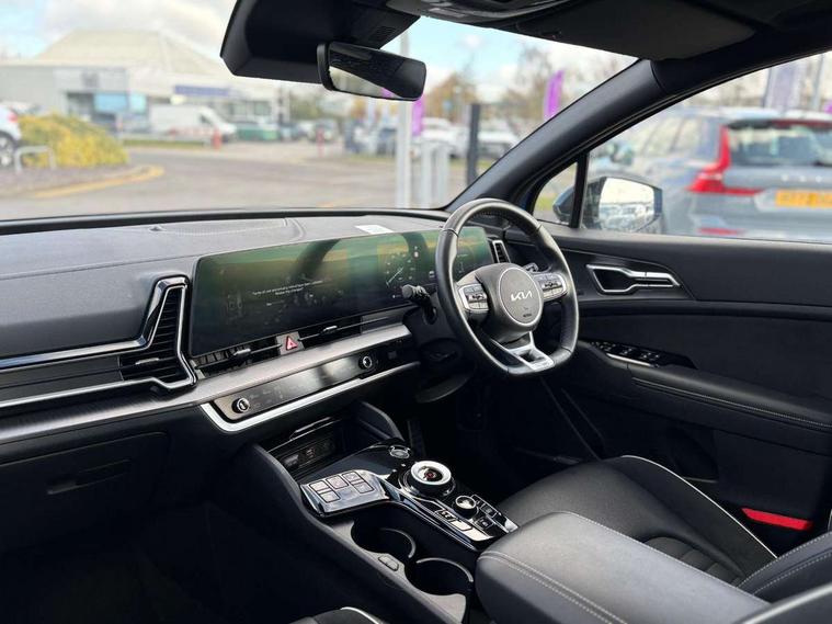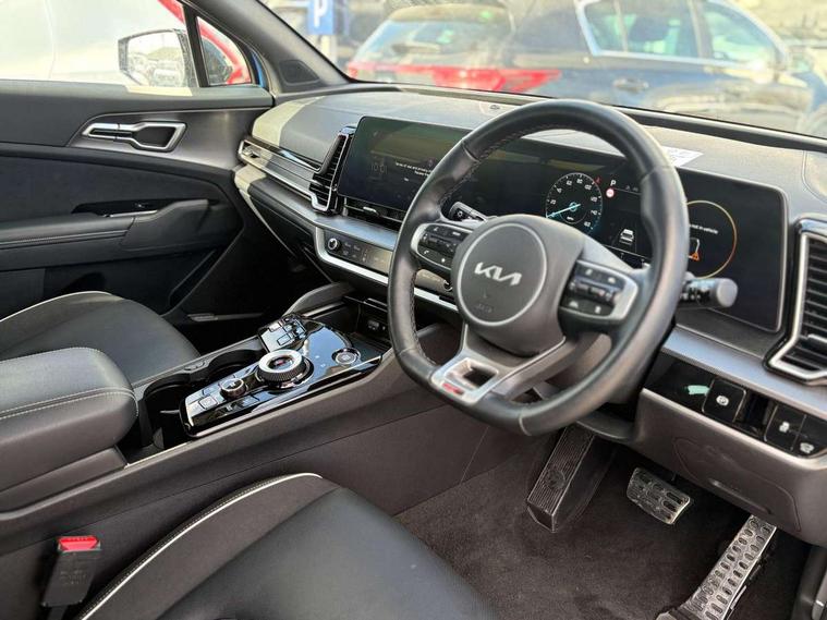 12.3" Driver display screen, 12.3" Touchscreen navigation system, 360 degree around view monitor, Apple car play/Android Auto, Blind spot collision avoidance assist, Blind spot view monitor, Drive mode selector, Driver attention warning, E-call, Emergency stop signalling system, Forward collision avoidance assist (FCA) - city/pedestrian/cyclist/junction covering, Front and rear parking sensors, Highway Driving Assist (HDA), Intelligent speed limit assist, Kia Connect (UVO), Lane Following Assist (LFA), Lane keep assist, Low washer fluid warning, Motor driven power steering, Parking collision avoidance assist (PCA), Rear cross traffic collision avoidance assist (RCCA), Reversing camera system integrated into centre fascia screen, Safe exit warning (SEW), Smart cruise control with stop and go functionality, Smart power tailgate, Speed limiter, Trip computer, Windscreen washer level indicator, Wireless Smartphone charger, 1x USB-C port in front, 2 rear USB-C ports, Bluetooth audio streaming, DAB Radio with MP3, Harman Kardon premium sound system with 8 speakers, Steering wheel mounted audio controls, USB C type charging ports on centre console, USB port for connection of a media device, All round electric windows with drivers and front passenger auto up/down function, Auto dimming rear view mirror, Automatic headlight control system, Automatic window defogger, Black and body coloured bumpers, Body colour exterior door handles, Body colour radiator upper garnish and door garnish, Dual LED headlights with adaptive driving beam, Electrically adjustable/heated/folding door mirrors with LED indicators, Front and rear chrome skid plates, Gloss black door mirrors, Gloss black radiator grille, Gloss black side sill and wheel arch body mouldings, Glossy black roof rack, GT-Line exterior styling, Heated rear window, High beam assist, Interior electrochromic mirror, LED daytime running lights, LED front fog lamps, LED High mounted stop light, LED rear combination lamp, Panoramic sunroof with tilting and sliding function with electric blind, Rain sensing wipers with aero blades, Rear fog lamp, Rear privacy glass, Rear side wing doors, Rear spoiler, Rear wiper, Satin finished beltline, Silver window surround, Tinted rear glass, Trailer stability assist, 12V power socket in front centre fascia and luggage compartment, 3 seat bench in 2nd row, 3 x passenger assist grips, 40/20/40 split folding rear seat, All-round height adjustable headrests, Alloy pedals, Automatic air conditioning, Black headlining, Centre console storage box, Cupholders in rear armrest, Customisable ambient lighting, Door courtesy lamps, Drink holder at centre armrest, Driver and front passenger side sunvisors with illuminated vanity mirrors, Drivers seat power lumbar support, Electric adjustable driver seat with memory function, Electric adjustable front passenger seat, Front and rear door storage, Front seat and rear pockets, Gear shift indicator, Glovebox illumination, GT-Line Interior Styling, Heated front and outer rear seats, Heated steering wheel, ISOFIX Child seat top tethers and anchor fixings outer rear seats, Leather steering wheel, LED front cabin light, LED interior personal lamp, LED lighting in overhead console, LED rear reading lights, Luggage area LED light, Luggage area load cover, Luggage area parcel shelf, Luggage board, Luggage compartment under floor storage, Luggage net with hooks, Manual adjust steering wheel, Metal paint interior door handles, Paddle shift controls, Rear air conditioning, Rear cabin light, Rear coat hooks, Single front passenger seat, Suede leather upholstery, Ventilated front seats, Ventilation ducts to rear compartment, Active front headrests, All round 3-point seatbelts, Anti-lock braking system (ABS), Dual front side airbags, Dual horn, Dynamic brake control, Electronic parking brake with auto hold function, Electronic stability control with downhill brake control, Front passenger airbag cut-off switch, Front seatbelt pretensioners + load limiters, Height adjustable front seatbelts, Hill start assist control (HAC), Impact sensing auto door unlocking, Multi collision brake assist, Rear airbags, Rear door child safety locks, Rear seat alert system, Seatbelt reminder warning, Traction control, Twin curtain airbags, Twin front airbags, Tyre pressure monitoring system, Vehicle stability management, Customisable automatic door locking, Customisable automatic door unlocking, Door deadlocks, Engine Start/Stop Button with Smart Entry System, Locking wheel nuts, Smart key with motion sensor, Speed sensitive auto door locking, Thatcham category 2 security alarm and immobiliser, Visible vehicle identification number, Aluminium pattern finish centre fascia and door garnish, 19" GT-Line alloy wheels, Tyre mobility kit,