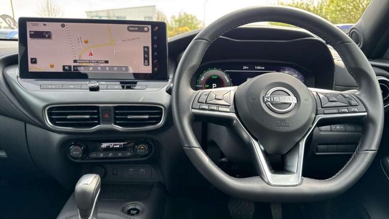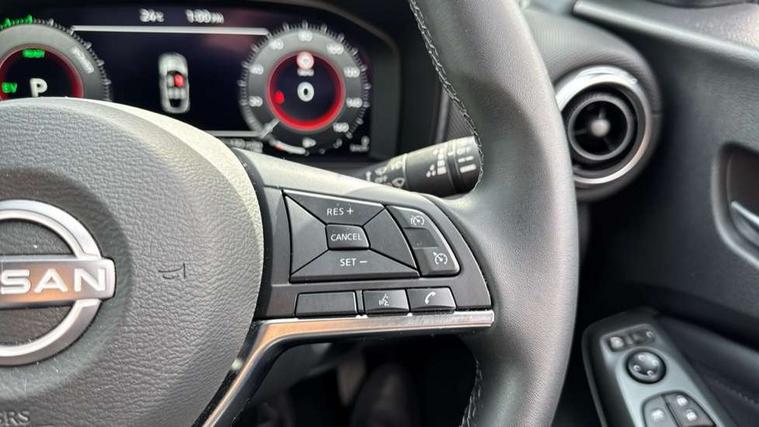 12.3" full colour TFT screen combimeter, Drive modes select (Eco, normal and sport), e-Pedal step, Emergency and breakdown call, EV mode switch, Front parking sensor, Intelligent driver alert system, Intelligent lane intervention, Lane departure warning system, Nissan connect 12.3" touch screen entertainment system, Nissan connect nav with TomTom traffic, Nissan connect services, Outside temperature sensor, Power Steering, Rear parking sensor, Stop/start button, Traffic sign recognition, Trip computer, Voice recognition, WiFi connectivity, Wireless Apple CarPlay and Google Android auto, Wireless Smartphone charger, 2 X Rear console USB port, 6 speakers, Bluetooth system, USB, Aux-in and 12V socket, DAB Digital radio, Auto dimming frameless rear view mirror, Automatic hazard signal with emergency stop signal, Body colour door handles, Electrically adjustable door mirrors with integrated indicators, Follow me home headlights, Front and rear electric window with one touch driver window, Heated and auto folding door mirrors, High beam assist, LED 3rd brake light, LED daytime running lights, LED headlamps, LED rear fog lamp, LED rear lamps, One touch passenger window, Rain sensor windscreen wipers, Rear privacy glass, Rear side wing doors, Rear wiper, Roof spoiler, Shark fin roof antenna in solid Black, Three blink turn signal, 3 height adjustable rear headrests, 3 seat bench in 2nd row, 60/40 split folding rear seat, Automatic climate control, Card holder on driver sunvisor, Cloth/Synthetic leather with melange fabric inserts, Driver side rear coat hanger, Driver/passenger sunvisors and vanity mirrors, Front and rear cabin lights, Front armrest, Front door pockets with bottle holders, Front head restraints, Front/rear passenger grab handles, Height adjustable driver's seat, Internal chrome door handles, Leather gearshift knob, Luggage board, Luggage space lighting, Monoform sporty seats, Multifunction steering wheel, Rear door bottle holders, Single front passenger seat, Smooth synthetic leather steering wheel, Synthetic leather kneepad, Telescopic steering wheel adjustment, Two cupholders in front centre console, Two rear isofix child seat anchorage points with top tether, Welcome light and console tray ambient lighting, ABS with EBD and brake assist, Active ride control, Active Trace Control, Driver and passenger airbags, Driver and passenger side airbags, Electric handbrake with auto hold function, Electronic Stability Programme (ESP), Front and rear curtain airbags, Height adjustable seatbelts, Hill start assist, Intelligent emergency braking with pedestrian and cyclist recognition, Rear door child safety locks, Seatbelt reminder for driver/front passenger and rear seats, Three 3 point rear seatbelts, Traction control, Tyre pressure monitoring system, VDC Dynamic Vehicle Control, Alarm, Immobiliser, Intelligent key and start push button with walk away lock and approach unlock functions, Remote central locking, 17" Alloy wheels, Tyre puncture repair kit,