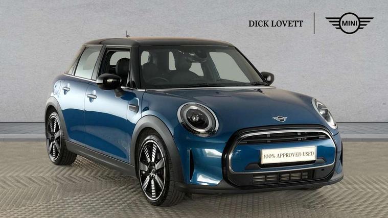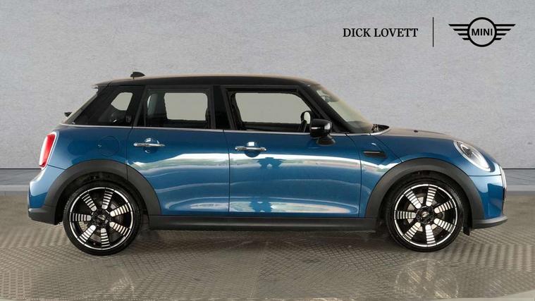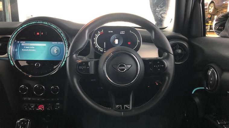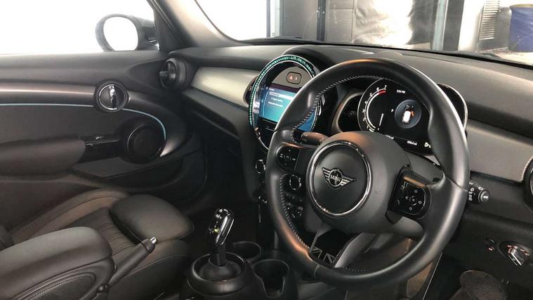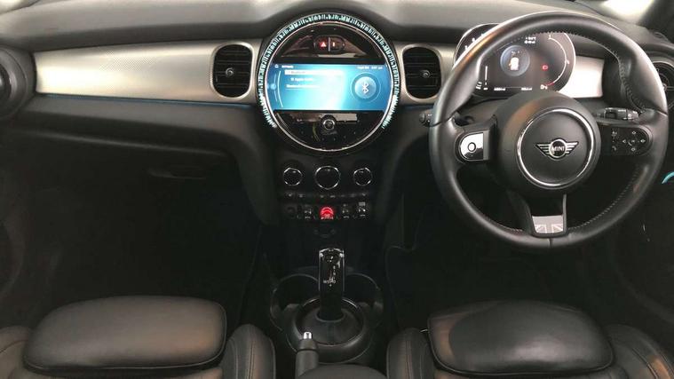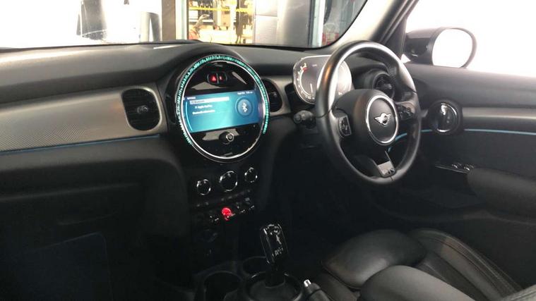 Apple CarPlay, Automatic start/stop function with brake energy recuperation, Compatible mobile phone bluetooth with audio streaming, Electro-mechanical speed dependant steering assistance, Flexible car sharing preparation, MINI Driving Modes - centre toggle switch to control driving setting (sport, mid and green), Mini E-call, MINI TeleServices, On board computer, Rear park distance control, Service interval indicator, Double Vanos system, Fully variable valve control, Gear change indicator display, High precision injection, Performance Control, Steptronic transmission with double clutch, 8.8" touchscreen with LED ring, FM tuner and DAB digital radio, 3rd brake light, Automatic headlight activation switch, Body colour fuel filler cap, Chrome line exterior - radiator grille bars, tailgate handle, lower front grille grating and rear central fog-light, Dynamic brake lights, Electric front+rear windows, Heated rear window, Heated windscreen washer jets, Metal door sill strips with MINI imprint, Model logo Cooper on right of tailgate, Rain sensor window wipers, Rear fog lights, Rear LED lights with union jack design, Rear side wing doors, Rear window wiper, Side scuttle panel with integrated indicator, Sun/heat protection glass, White indicator lenses, 12V Accessory socket in centre console, 3 seat bench in 2nd row, 4 lashing eyes in luggage compartment, 60/40 split folding rear seat, Anthracite headliner including grab handles and clothes hooks, Carbon black colour line - Knee roll and door armrest, Chrome interior highlights, Chrome line interior - air vents, gear lever base, door handles and speakers in doors, Cupholders, Front and rear head restraints, Front and rear isofix with front passenger airbag deactivation, Front and rear velour floor mats, Glove compartment, Height and length steering column adjustment, Interior lighting with 12 different colours across the dashboard, underneath door bezel with illuminated laser-engraved design on central display, Leatherette gearshift lever and handbrake gaiters, LED reading lights, vanity mirror lights, front foot well light and spotlight on front seats, Mechanical seat adjustment - forward/back & backrest for front seats and driver seat height adjust, MINI yours badge on exterior pillar, Multifunction steering wheel, Single front passenger seat, Storage compartments in doors, Sunvisors with vanity mirrors, Tool kit, Walknappa leather steering wheel with grey seam and MINI Yours badge on Piano Black lower steering wheel spoke, 3 point seatbelts on all five seats, 6 Airbags - front, side, head and seat belt tensioners, Anti-lock braking system (ABS), Child locks on rear doors, DSC - Dynamic Stability Control, Front and rear disc brakes, Hill start assist, Single tone fanfare horn, Tyre pressure monitoring system, Alarm system with tilt sensor, monitoring doors, bonnet interior and tailgate, Electronic vehicle immobiliser, Start/stop toggle with keyless go,