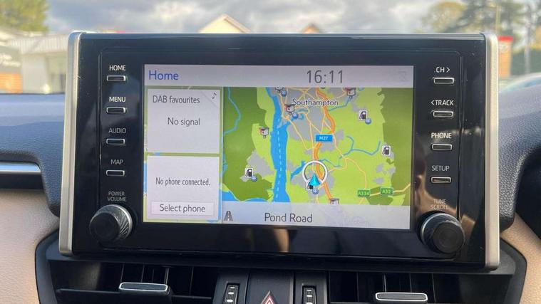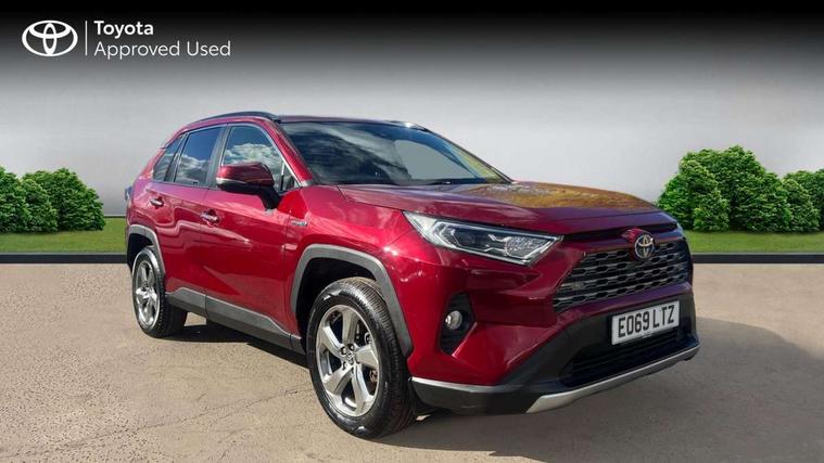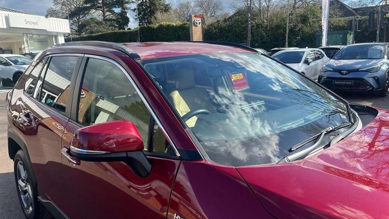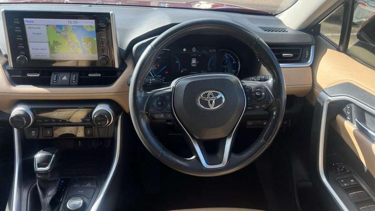 7" colour TFT display, Adaptive cruise control with lane trace assist, Adjustable speed limiter, Blind spot monitoring with rear cross traffic alert, Bluetooth system, Cyclist Detection, Drive mode selector, eCall emergency call system, ECO-driving indicator, Electric power steering, Hybrid system indicator, Lane departure warning system, Lights on warning, Low screen washer fluid warning, Night Time Pedestrian Detection, Pedestrial detection, Power boot opening and closing, Rear parking camera, Rear parking sensors, Remote boot door release in cabin, Tachometer, Touch 2 Go navigation system including 3D maps and voice control, Traffic sign recognition, Trip computer, Voice control system, Vehicle Stability Control (VSC), 6 speakers, 8" Multimedia display touch screen, Auxiliary socket for external MP3 player, DAB audio, Steering wheel mounted audio controls, Toyota touch media system, USB connection, Auto dimming interior mirror, Auto high beam, Automatic headlamp levelling, Automatic headlights, Automatically retractable door mirrors, Black roof rails, Body colour door handles, Body colour door mirrors, Body colour rear spoiler, Body coloured bumpers, Body coloured Shark-fin antenna, Door mirror puddle lights, Electric adjustable door mirrors, Emergency brake-light signal (EBS), Follow me home headlights, Front fog lights, Headlight cleaners, Heated door mirrors, LED daytime running lights, LED High mounted stop lamp, LED rear lights, Meshed upper front grille, Power front windows, Power rear windows, Privacy glass, Projector LED headlights, Rear screen wiper - intermittent, Rear windscreen defogger, Silver front under-run, Silver rear under-run, Trailer Sway Control, Turning signal integrated indicators in door mirrors, Windscreen wiper de-icer, 3 rear headrests, 60/40 split fold rear seat back, Boot light, Clean air filter, Driver and front passenger personal light, Driver and front passenger Whiplash Injury Lessening seats, Driver and passenger sunvisors with illuminated vanity mirrors, Driver seat memory function, Dual sided deck board in boot, Dual zone automatic air conditioning, Floor mats, Folding rear centre armrest, Front and rear bottle holders, Front centre armrest, Front footwell lights, Front headrests, Front seat and rear pockets, Front/rear roof mounted assist grips, Grey roof lining, Heated driver and front passenger seats, Heated steering wheel, Isofix child seat preparation, Leather gear shift with chrome surround, Leather upholstery, Light blue ambient lighting on front cupholders and open tray, Manual telescopic and tilt 3-spoke leather steering wheel with Chrome insert, Manually reclining and sliding front passenger seat, Pollen filter, Power height-adjustable sliding reclining and lumbar support for driver seat, Rear coat hooks, Rear door armrests, Rear passenger air vents, Reclining rear seats, Satin chrome interior door handles, Sunglasses holder, Parking pack - Rav4, 3x3 point rear seatbelts, ABS/EBD, Adjustable front driver and passenger seat belt extender, Brake assist function, Child proof door locks, Collision mitigation braking system, Driver/Front Passenger airbags, Driver/front passenger side airbags, Drivers knee airbag, Electronic parking brake, Electronic Stability Programme (ESP), Emergency brake light system (EBS), Front and rear curtain airbags, Front and rear seatbelt reminder, Hill start assist, Passenger airbag cut-off device, Seatbelt pretensioners with load limiters, Traction control, Tyre pressure warning, Alarm/immobiliser, Glass-breaking alarm sensors, Light - on and Key in reminder, Remote central locking, Smart entry + Smart start, Speed sensitive auto door locking, Tilt detection sensors, Piano black centre console with silver insert, Soft-touch black lower dashboard, Soft-touch black upper dashboard with silver insert, Full size spare wheel,